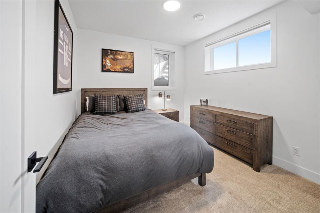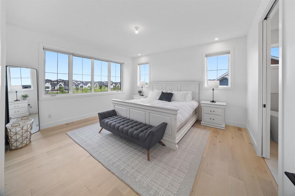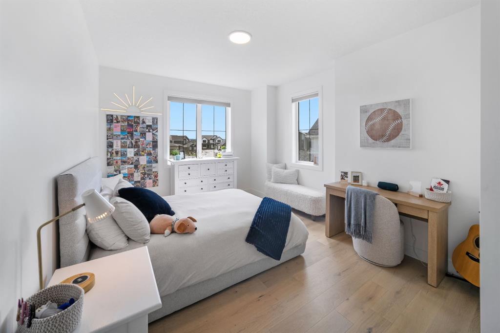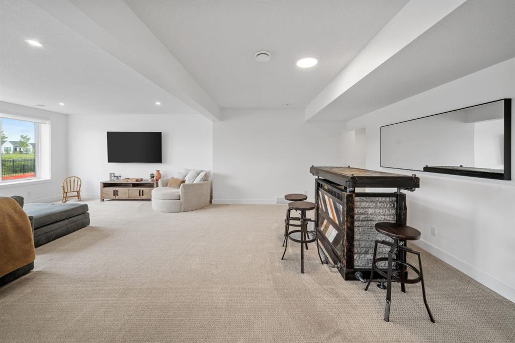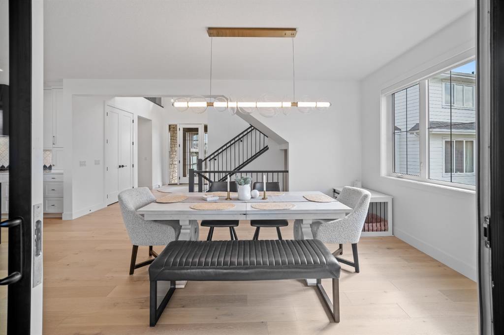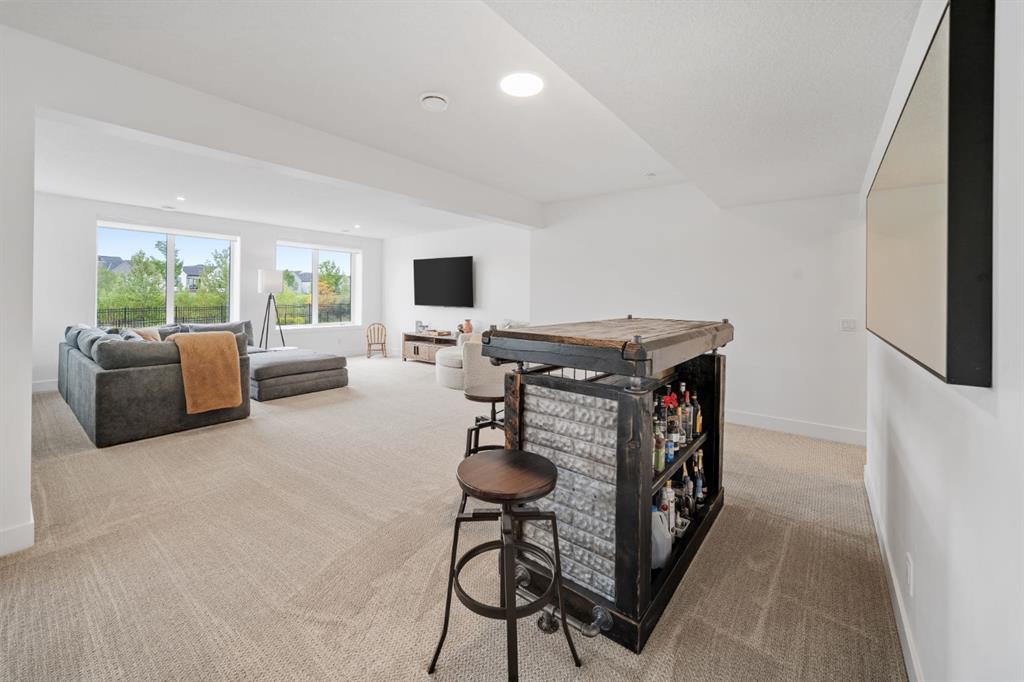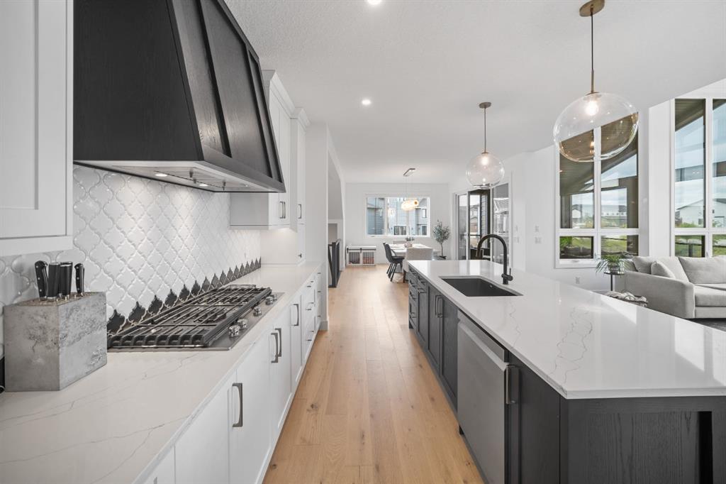 Welcome to your Baywest Built Luxury Estate Home with Private Dock Access in Harmony. Over 4,300 square feet of beautifully developed living space, this luxury estate home is where sophistication meets lifestyle, designed for those who appreciate elevated finishes, functional luxury, and custom built-ins throughout. Perfectly positioned in Harmony, this residence delivers golf course, lake, and mountain views, with a convenient rear path leading to one of the community’s most coveted amenities: a private dock and sandy beach shared exclusively by only 16 homes. Whether it’s morning paddle-boarding, a sunset glass of wine on the water, or a quick swim on a summer day, this rare feature transforms your backyard into your own lakeside escape. From the grand entrance with soaring ceilings and show-stopping light fixtures, to the blond oak hardwood throughout, the details of the home captivate. The heart of the home is the chef’s kitchen with premium appliances, gas cooktop, custom hood fan, and a large centre island that invites gathering and entertaining flowing into an airy dining space fit for casual lunches or grand celebrations. This spectacular layout flows into an impressive butler’s pantry with sink, bar fridge, custom drawers, ample counter space, and a tucked-away pantry for extra storage and seamless prep. The main living room showcases soaring vaulted ceilings and expansive windows that frame breathtaking views, anchored by a gas fireplace with bleached stonework. For milder days and evenings, the spectacular four-season sunroom offers 300 sq. ft. of indoor-outdoor living with fireplace, lighting, TV hook-up, and gas line. Upstairs, a bonus room is ideal for play, study, or Netflix. Choose your wing: the primary suite is a vogue-inspired retreat with spacious bedroom, walk-in closet, and spa-like ensuite with soaker tub and glass shower. The additional wing has two bedrooms with custom closets, a bathroom with double-sink vanity, and a laundry room with sink. The harmonious layout continues in the expansive walk-out basement, offering another bedroom, a full bathroom, and ample space for relaxation and recreation. Step directly outside to one of the largest lots in Harmony at .33 acres, large enough for a future sport court. The showstopper for automotive and recreation enthusiasts is the OVERSIZED triple heated garage. With epoxy floors, 12’ ceilings for a lift, and expansive storage, it’s designed to store multiple vehicles, watercraft, or mountain gear with ease. More features of this home include: dual A/C, two furnaces, Ecobee, and sump pump. Power blinds on all high windows are included with convenient switch control. Set steps away from Mickelson National Golf Club, LaunchPad, Harmony Lake, and close to world-class schools like The Edge Sports School, this home is more than a residence, it is your private dockside retreat, your luxury entertaining space, and your ultimate sunroom & garage space, all in one extraordinary Harmony address.