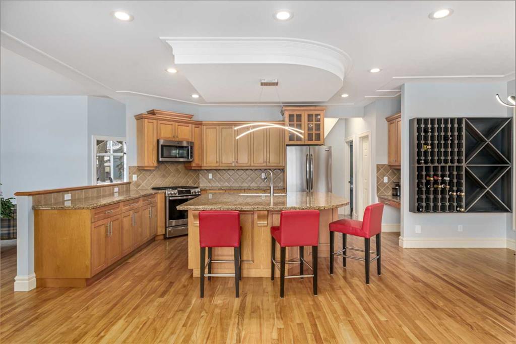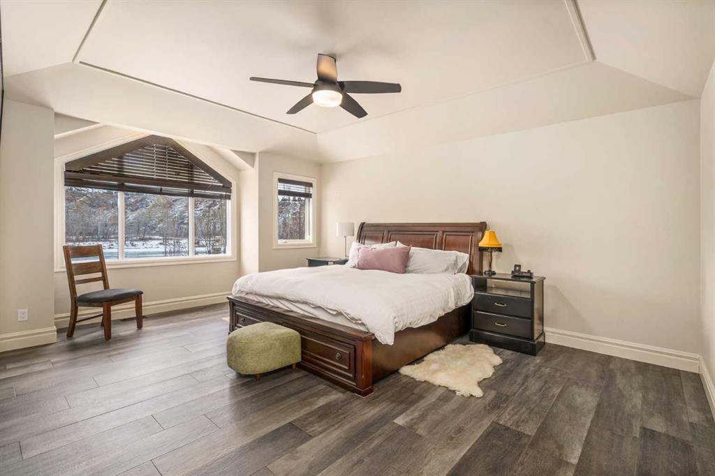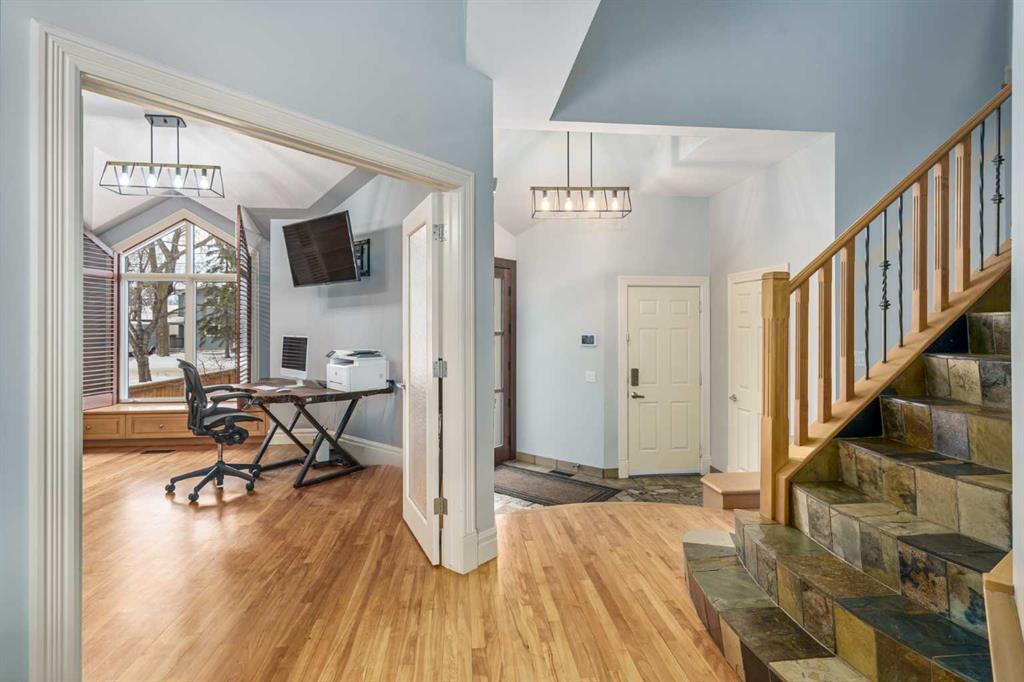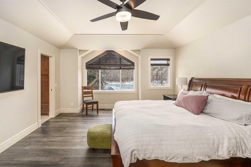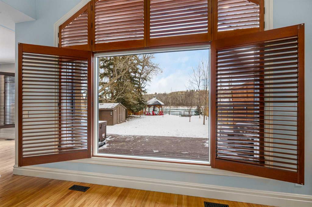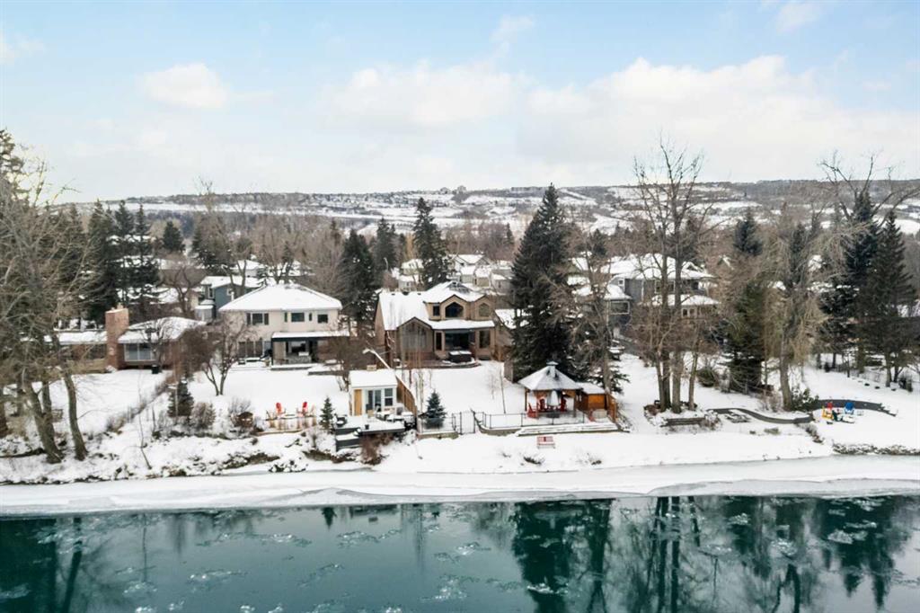 Life unfolds differently when the river is your backyard and this exceptional Bowness residence captures that rare connection with sweeping Bow River views from nearly every room. Thoughtfully designed to embrace it's setting, the home sits on an extraordinary 200’ deep lot backing directly onto the water, creating a sense of privacy, scale and natural beauty that is increasingly hard to find in the city. An open main floor layout anchored by solid natural hardwood floors and custom wood shutters allows light and views to flow effortlessly throughout the space, while central air conditioning and central vacuum enhance everyday comfod convenience. A dedicated den enclosed by French doors offers an ideal work-from-home environment, complete with built-ins and a gas fireplace that creates a warm, focused atmosphere. Vaulted ceilings elevate the living room, where oversized windows frame the river beyond and a fireplace with built-in media centre invites quiet evenings and relaxed gatherings. Culinary creativity comes naturally in the striking kitchen, where stone countertops, a gas range, stainless steel appliances and an expansive centre island encourage both casual connection and confident entertaining. The dining area is elevated by chic lighting and a built-in wine rack, setting the stage for memorable meals and celebrations. Outdoor living extends seamlessly onto the massive 2-tiered wood deck, equipped with a gas line for effortless barbecuing, privacy screens and a retractable awning that balances sun and shade throughout the day. A privately tucked powder room completes the main level with thoughtful discretion. Upstairs, a dual primary layout places bedrooms on opposite sides of the home for outstanding privacy, an ideal arrangement for shared living without compromise. The primary retreat enjoys commanding river views and is paired with a luxurious 5-piece ensuite featuring dual sinks, extensive built-ins, a bidet and a generous walk-in closet. Bedroom-level laundry adds daily efficiency, while the second upper bedroom benefits from its own private 4-piece ensuite, offering true independence for guests or family members. The finished basement expands the home’s versatility with a spacious recreation room designed for movie nights and games, a third bedroom with dual closets and a 3-piece bathroom accessible from both the bedroom and common area for flexible use. Outdoor spaces continue to impress with a beautifully landscaped and fully fenced yard (glass panels on the river side)offering remarkable depth, seasonal storage options, a pergola for shaded gatherings and much more! Solar panels are included, supporting energy efficiency and long-term operating savings. Located in one of northwest Calgary’s most established river communities, this setting provides walkable access to Thomas B. Riley, Bowcroft and Bowness High School, while Bowness Park, neighbourhood amenities and a quick commute to downtown ensure everyday life remains connected as well as serene.