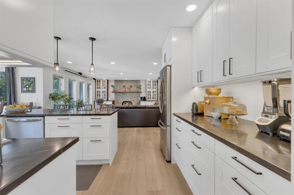 This beautifully renovated two-storey home is set on a breathtaking half-acre lot in one of Olds’ most sought-after neighbourhoods, backing directly onto one of the community’s premier parks. Exceptional curb appeal welcomes you with mature trees, lush landscaping, and a timeless combination of brick and updated vinyl siding that creates an unforgettable first impression. Inside, the home has been fully renovated throughout, effortlessly blending modern updates with classic character. A bright, airy foyer with vaulted ceilings opens into a spacious and inviting main floor. This level features a formal dining room, a well-designed eat-in kitchen with ample cabinetry and contemporary finishes, and a large living room anchored by a cozy fireplace, ideal for entertaining or relaxing with family. A convenient 2-piece bathroom and main floor laundry add everyday functionality. Upstairs, a charming reading nook and open library area offer a unique and welcoming space, with the potential to be converted into an additional bedroom. The generous primary suite includes elegant French doors, a walk-in closet, and a beautifully updated 5-piece ensuite. Two additional spacious bedrooms and a renovated 5-piece main bathroom complete the upper level. The fully finished basement features a brand-new, self-contained legal suite with its own private entrance, kitchen, bathroom, and living space, perfect for multi-generational living, guests, or rental income. The basement also includes a separate fourth bedroom and dedicated storage area, offering even more flexibility for your family’s needs. Notable upgrades include a reverse osmosis system and a whole-house carbon water filter, ensuring clean, high-quality water throughout the home. Outside, enjoy exceptional privacy and outdoor living with mature fruit trees, a dedicated garden area, RV parking, and a large deck ideal for entertaining or unwinding. The existing garage provides ample parking and storage, with the option to add an additional bay for vehicles, hobbies, or a workshop. This is a rare opportunity to own a move-in-ready home in a quiet, highly desirable neighborhood with direct park access, room to grow, and thoughtful features throughout. Whether you’re searching for a family-friendly forever home or a versatile property with income and multi-generational potential, this one truly has it all. Book your private tour today!