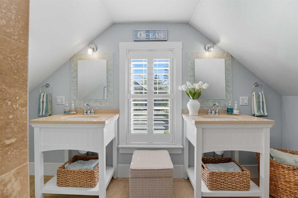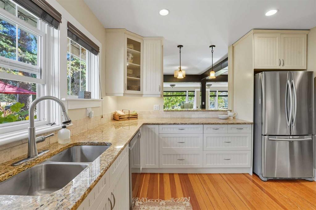 Welcome to one of High River’s most iconic homes-a timeless 1940 Craftsman-style beauty nestled on a rare double corner lot. Just a short stroll from the charming downtown, this heritage property has been thoughtfully & extensively renovated, with a substantial addition completed in 2021 that blends seamlessly with the original architecture. With over 4,100 square feet of developed living space, this home offers the perfect balance of historic character & modern comfort. Every detail of this renovation was done with care, preserving the charm of the original structure while elevating the home with contemporary upgrades. At the heart of the home, you’ll find a custom-designed kitchen surrounded by rich millwork, exposed brick, & sun-filled living spaces. The cozy living room, complete with a gas fireplace & period-inspired detailing, invites you to unwind & enjoy the character that only a home of this vintage can offer. One of the most remarkable features of the addition is the use of 120 year-old Douglas Fir hardwood flooring, sourced to blend perfectly with the original hardwood-a detail that speaks to the exceptional craftsmanship & care taken in every element of this renovation. The home features 3 bedrooms and 4.5 beautifully finished bathrooms. The primary bedroom is a true retreat, offering peaceful views & convenient access to the back of the property. The ensuite is luxurious & functional, with heated tile floors, a double vanity & a large tiled walk-in shower. Off the generous walk-in closet, you'll find a conveniently located laundry area. A standout feature is the expansive loft space, with soaring vaulted ceilings, offering endless potential—whether used as additional bedrooms, a home office, or private gym. The fully developed basement includes another inviting living area, a wet bar for entertaining, a second gas fireplace, & ample room to relax or host guests. Outside, the property truly shines. Mature trees, lush gardens, & curated landscaping create a sense of privacy & peace, like your own private park. A heated koi pond adds a tranquil touch & the wrap around covered porch provides the perfect place to sit & enjoy the surrounding beauty.The saltwater hot tub provides a luxurious way to unwind, while the whimsical “She Shed” in the garden offers a quiet retreat. The stunning legal carriage suite is located above the triple detached garage. Just under 700 sq ft, cathedral ceilings, a full bathroom, huge balcony, & oversized windows that flood the space with light, this one-bedroom legal suite feels like a peaceful sanctuary-ideal for guests, extended family, or tenants. Schools & the hospital are nearby, making this home as practical as it is picturesque. Whether you're seeking a quiet lifestyle, small-town charm, space to grow, or a truly unique & character-rich place, this home offers something extraordinarily special. Residences like this rarely come to market—it’s a piece of High River history lovingly restored & ready for its next chapter.