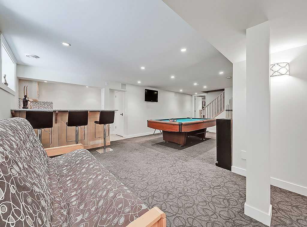 The basement is built for enjoyment. A spacious billiards lounge, dedicated media room with projector and surround sound, and a custom granite bar with integrated wine fridge and cold storage room make it a natural gathering space for family and friends.