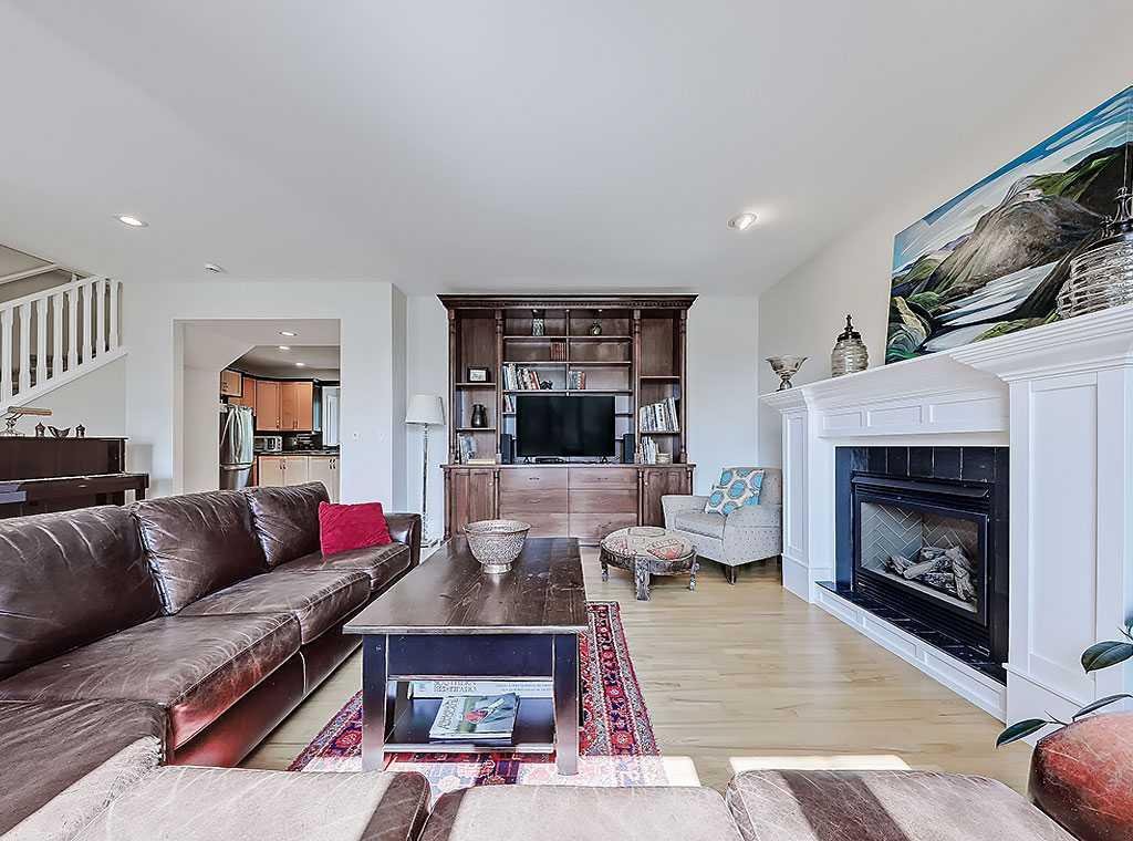 The main floor is bright and well-proportioned, with soaring ceilings and an open-concept layout that connects the family room (with gas fireplace) and kitchen — practical for daily life and easy for entertaining.