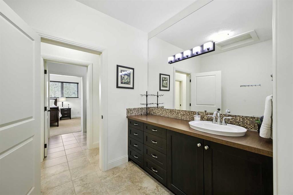 This stunning 4767 sqft 4 bed/3.5 bath luxury home, w/oversized triple garage, on 0.41 acres (one of the largest lots) on exclusive Posthill Dr, exudes classic craftsmanship with exceptional finishings. Upon entering, you'll appreciate the soaring 10' ceilings, beautiful hardwood flooring, and wall of windows bathing the area with light. The elegant living/dining spaces share a stunning stone faced double sided gas fireplace, each with a wood mantle that cleverly defines each space, & have sweeping views over the private backyard oasis, ideal for hosting large gatherings. The gourmet kitchen is an entertainer's dream, featuring an oversized island w/clever storage built into either end, quartz counters, gorgeous Jatoba custom cabinetry, 6 burner Viking gas range, Thermador wall oven, Miele dishwasher, & Frigidare Gallery refrigerator. The butlers pantry off the kitchen features additional quartz countertops & sink, matching cabinetry & built in storage for all your entertaining needs. The mudroom features a large walk in closet w/custom built ins to help organize those hectic arrivals home with the kids. A generous office & large powder room complete the main floor. The bright upper floor features central AC, 9' ceilings, and in the open area, a custom built in bookcase w/seating & homework area just outside the secondary bedrooms. The generous primary suite features a wall of windows flooding the room with light, a cozy sitting area w/gas fireplace, faced with custom millwork, ideal for unwinding at the end of the day. The large walk in closet features custom built in shelving & drawers. The luxurious 5 pc ensuite features a large glass steam shower, freestanding soaker tub, his & hers vanities and in floor heat for those chilly mornings. The two large secondary bedrooms each feature several windows & walk in closets w/custom built ins. The huge upper shared bath has individual personal vanity areas, custom built in shelving w/cabinetry, private tub & shower room plus separate water closet, perfect for kids of any age. The fully finished lower level features a large recreation area, dry bar w/full sized fridge, gas fireplace and plenty of space for kids to play or enjoy cozy family movie nights. The light filled lower guest bedroom features a walk through closet with custom built ins and adjoins a large 3 piece bath w/huge glass shower, allowing for ultimate guest privacy. Zoned in-floor hydronics make heating the lower level even cozier. The triple oversized heated garage has 12' ceilings, perfect for car lifts. The exceptional backyard oasis features a large deck plus an additional BBQ deck off the kitchen, flag stone patio and exudes a park like setting surrounded by native aspen groves. Posthill Drive is an enclave like no other, and this home exceeds expectations. Close to exceptional schools, restaurants & shops, as well as quick access to Stoney Trail from 17th Ave, making getting downtown or to the mountains a breeze. View this exceptional property today!