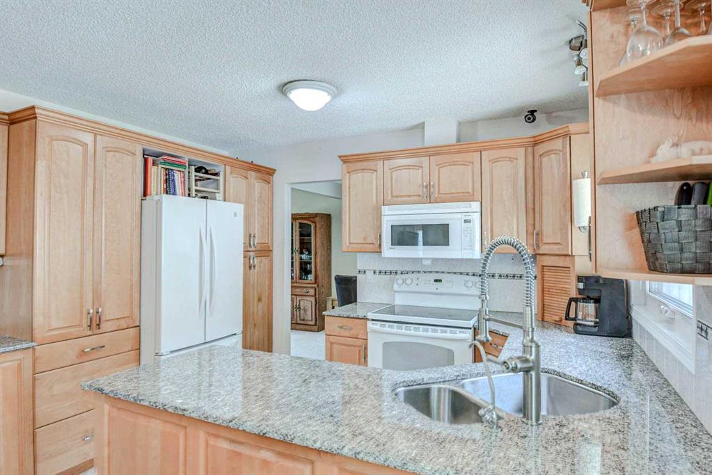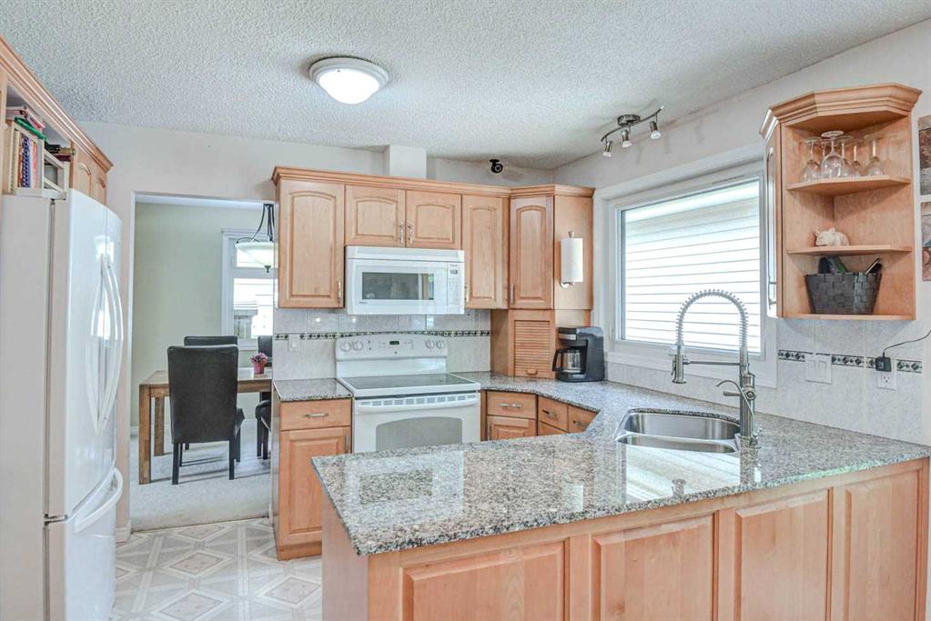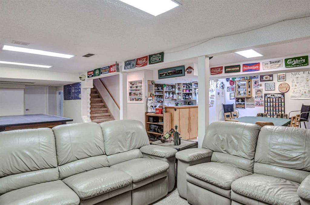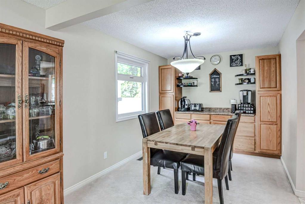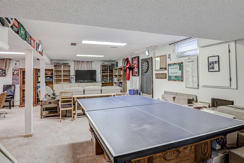 Step inside and you’ll find a spacious and bright main floor featuring a large welcoming living room with bay window. The formal dining room includes a built-in sideboard ideal for hosting dinner parties and extra storage. The maple kitchen offers granite countertops, dining nook and overlooks a cozy family room with hardwood flooring and a wood-burning fireplace with direct access through patio doors to the private backyard and patio with gas line for summer BBQs its the perfect spot for summer entertaining and outdoor living. This level also includes a main-floor bedroom, 2-piece bathroom, laundry, side entrance, and access to the ATTACHED DOUBLE GARAGE.Upstairs, you'll find three bedrooms, including a massive primary suite with a walk-in closet and ensuite featuring a jetted tub, plus a 4-piece bathroom and high-end laminate flooring throughout. It’s move-in ready, with room for your personal upgrades to truly make it your own. The developed basement is where the fun happens it features a games room with pool/ping pong table (included), a wet bar with built-in beer keg dispenser and fridge, a flex space perfect for movie nights or a gym, home office and plenty of extra storage in the furnace room that has 2 newer furnaces (2017) and hot water tank (2017). But here’s the real showstopper, built in 2015 is a HEATED, OVERSIZED DETACHED DOUBLE GARAGE(28' x 24') with 11' walls, a 14' vaulted peak, with BUILT-IN HOIST (included) a dream space for anyone who loves working on cars, bikes, or DIY projects. Outside, enjoy a fenced backyard complete with a patio, sheds, greenhouse, and garden space. Whether you're dreaming of a custom renovation or just need room to pursue your hobbies, this home delivers. Updates include: Most windows replaced in (2014), Garage (2015),Furnaces (2017), Hot Water Tank (2017) 2-Air Conditioners (2017). This is your chance to own a home in one of Calgary’s most desirable neighbourhoods close to Schools, Shopping, Parks,Pathways, Lake and more.