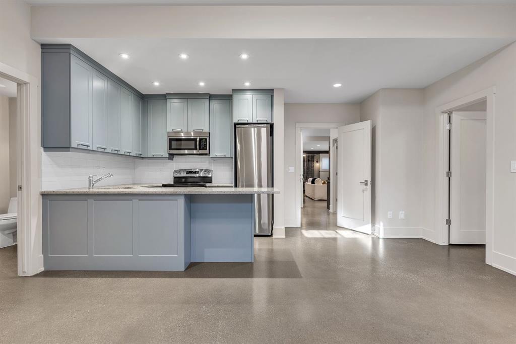 The fully developed lower level enhances the home’s entertaining appeal, offering heated concrete floors, a glass-enclosed wine cellar, a wet bar, and an expansive recreation area. A self-contained suite with kitchen, laundry, and full bath provides private accommodation for a nanny, extended family, or guests.