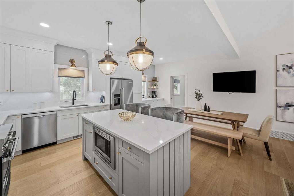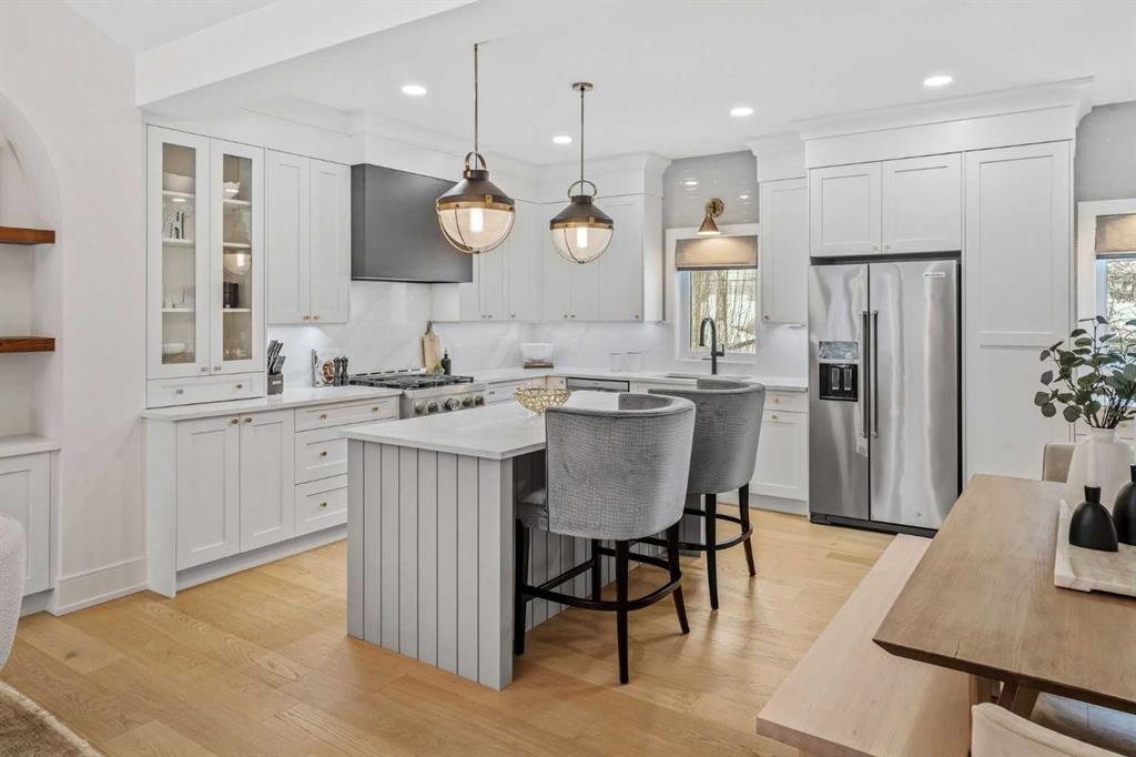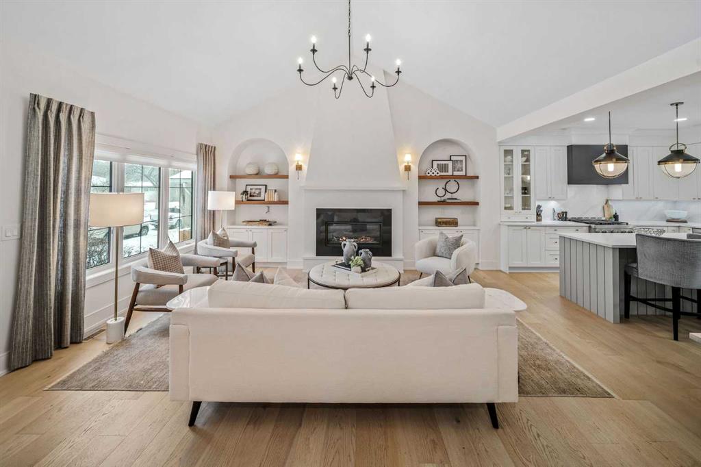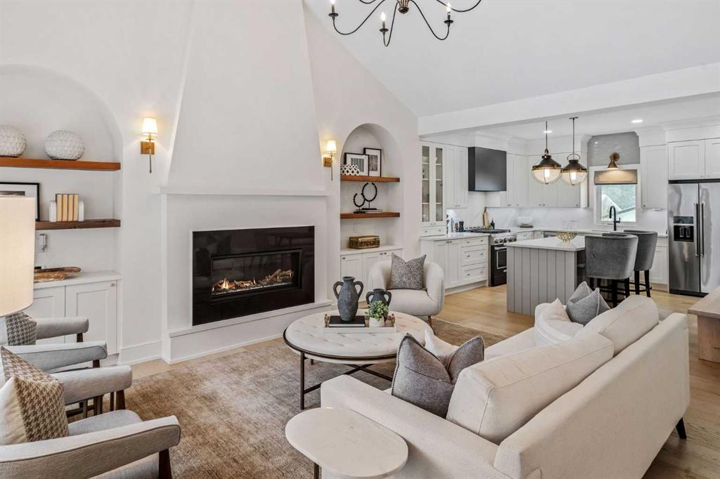 OPEN HOUSE ON SUNDAY, MARCH 29, 11am to 3pm: Welcome to the kind of home that stops scrolls and starts conversations. This modern craftsman bungalow offers over 2700 sqft of beautifully developed luxury living, featuring 2 bedrooms on the main level, 3 additional bedrooms below, and 3 full baths, blending timeless architecture with designer appointed interiors. Soaring vaulted ceilings and an airy open concept layout create an immediate sense of space, while the living room is anchored by a stunning fireplace framed with custom arched built ins, perfect for cozy evenings or elevated entertaining. Natural light pours through expansive windows, enhancing the home’s soft, curated palette. The chef inspired kitchen features sleek custom cabinetry, quartz countertops, a statement hood fan, premium stainless steel appliances, and a generous island with breakfast bar seating, ideal for morning coffee rituals or gathering with friends. Along the backyard facing wall, a beautifully integrated coffee bar, extensive built in storage, and thoughtfully designed pantry shelving elevate both form and function, while a private mudroom entrance to the kitchen keeps daily living effortlessly tucked away. The main floor hosts two bedrooms, including a show stopping primary retreat with vaulted ceilings, subtle shiplap detailing, and a spa caliber ensuite with oversized custom shower and walk in closet, offering a true sense of escape at the end of the day. The second bedroom, currently styled as an office, offers flexible living for today’s lifestyle. The dining area connects seamlessly to the main living spaces, creating the perfect backdrop for everything from intimate dinners to lively celebrations. Downstairs, the fully developed lower level expands your lifestyle with a spacious family room ready for movie nights, a flexible gym or yoga space, sleek wet bar for effortless hosting, three additional bedrooms, a full bath, and dedicated laundry room. Outside, a beautifully curated backyard blends architectural concrete with low maintenance turf, featuring a custom patterned patio that defines a dedicated bbq and entertaining area, along with a raised composite deck designed for lounging and gathering. A gas line has been extended to the deck for a future fire table, creating the perfect setting for summer evenings and quiet moments alike, all framed by mature trees, curated rock beds, and full privacy fencing, plus a heated double detached garage. This architectural stunner pairs its undeniable curb appeal with everyday comfort, including air conditioning for warm Calgary summers. Ideally located in one of Calgary’s most desired neighbourhoods, you’re just steps to the shops, eateries, and cafes of Lakeview, with quick access to North Glenmore Park, top rated schools, and major routes for easy city or mountain escapes. This home offers the ultimate lifestyle, and it is ready to impress.