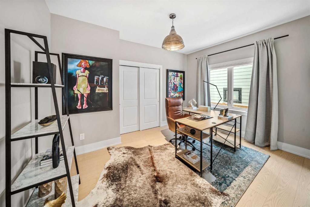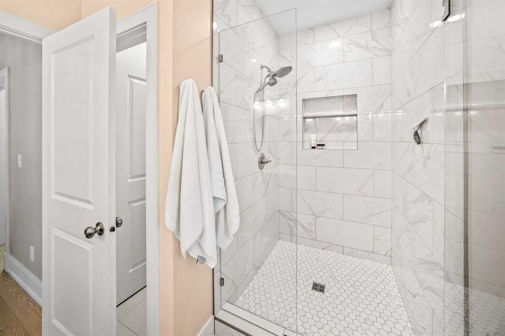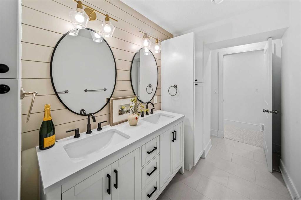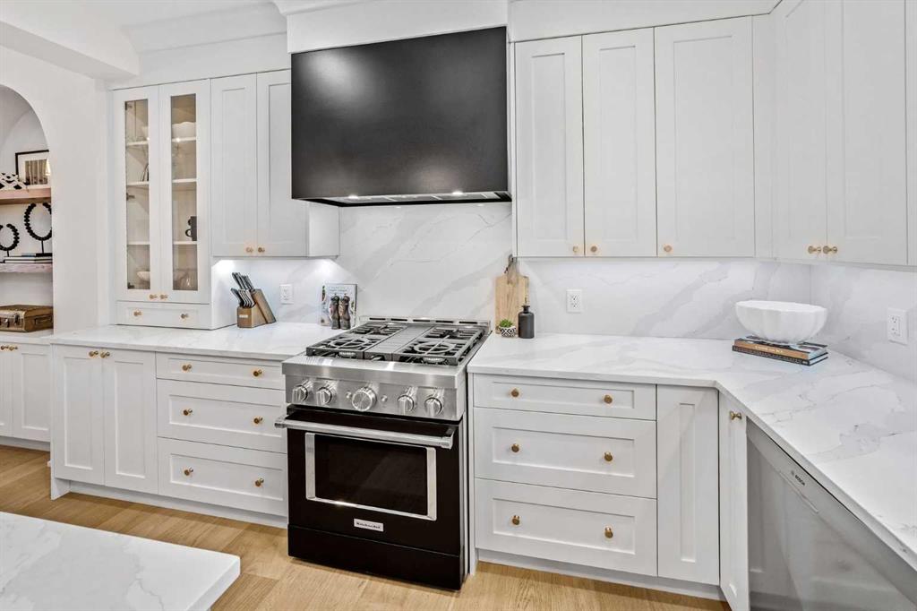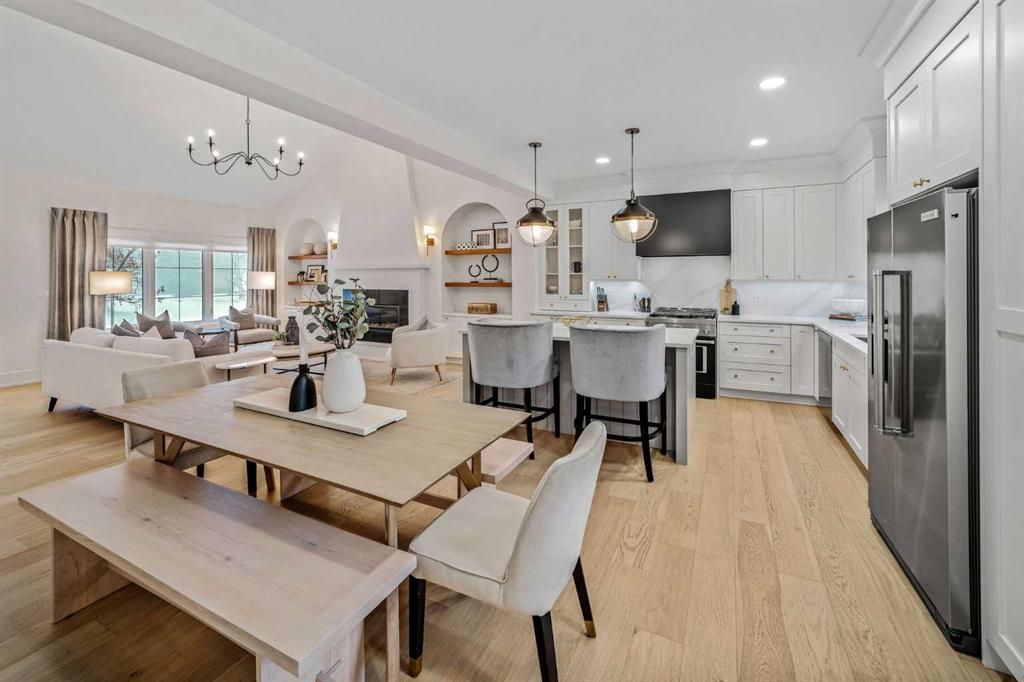 OPEN HOUSE ON SUNDAY, MARCH 29, 11am to 3pm: Welcome to the kind of home that stops scrolls and starts conversations. This modern craftsman bungalow offers over 2700 sqft of beautifully developed luxury living, featuring 2 bedrooms on the main level, 3 additional bedrooms below, and 3 full baths, blending timeless architecture with designer appointed interiors. Soaring vaulted ceilings and an airy open concept layout create an immediate sense of space, while the living room is anchored by a stunning fireplace framed with custom arched built ins, perfect for cozy evenings or elevated entertaining. Natural light pours through expansive windows, enhancing the home’s soft, curated palette. The chef inspired kitchen features sleek custom cabinetry, quartz countertops, a statement hood fan, premium stainless steel appliances, and a generous island with breakfast bar seating, ideal for morning coffee rituals or gathering with friends. Along the backyard facing wall, a beautifully integrated coffee bar, extensive built in storage, and thoughtfully designed pantry shelving elevate both form and function, while a private mudroom entrance to the kitchen keeps daily living effortlessly tucked away. The main floor hosts two bedrooms, including a show stopping primary retreat with vaulted ceilings, subtle shiplap detailing, and a spa caliber ensuite with oversized custom shower and walk in closet, offering a true sense of escape at the end of the day. The second bedroom, currently styled as an office, offers flexible living for today’s lifestyle. The dining area connects seamlessly to the main living spaces, creating the perfect backdrop for everything from intimate dinners to lively celebrations. Downstairs, the fully developed lower level expands your lifestyle with a spacious family room ready for movie nights, a flexible gym or yoga space, sleek wet bar for effortless hosting, three additional bedrooms, a full bath, and dedicated laundry room. Outside, a beautifully curated backyard blends architectural concrete with low maintenance turf, featuring a custom patterned patio that defines a dedicated bbq and entertaining area, along with a raised composite deck designed for lounging and gathering. A gas line has been extended to the deck for a future fire table, creating the perfect setting for summer evenings and quiet moments alike, all framed by mature trees, curated rock beds, and full privacy fencing, plus a heated double detached garage. This architectural stunner pairs its undeniable curb appeal with everyday comfort, including air conditioning for warm Calgary summers. Ideally located in one of Calgary’s most desired neighbourhoods, you’re just steps to the shops, eateries, and cafes of Lakeview, with quick access to North Glenmore Park, top rated schools, and major routes for easy city or mountain escapes. This home offers the ultimate lifestyle, and it is ready to impress.