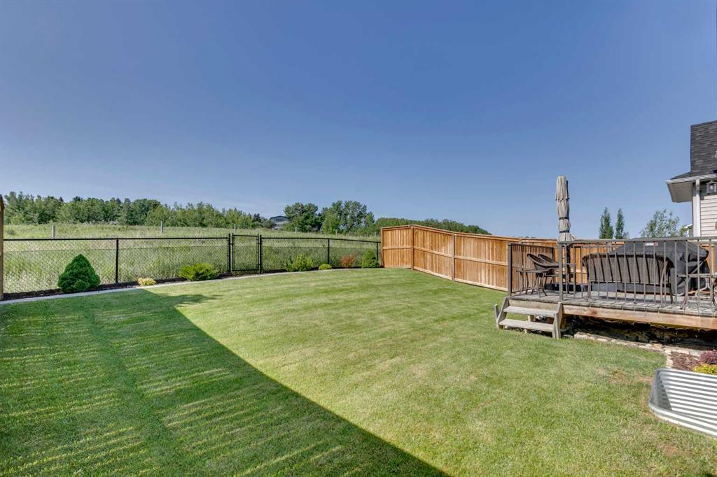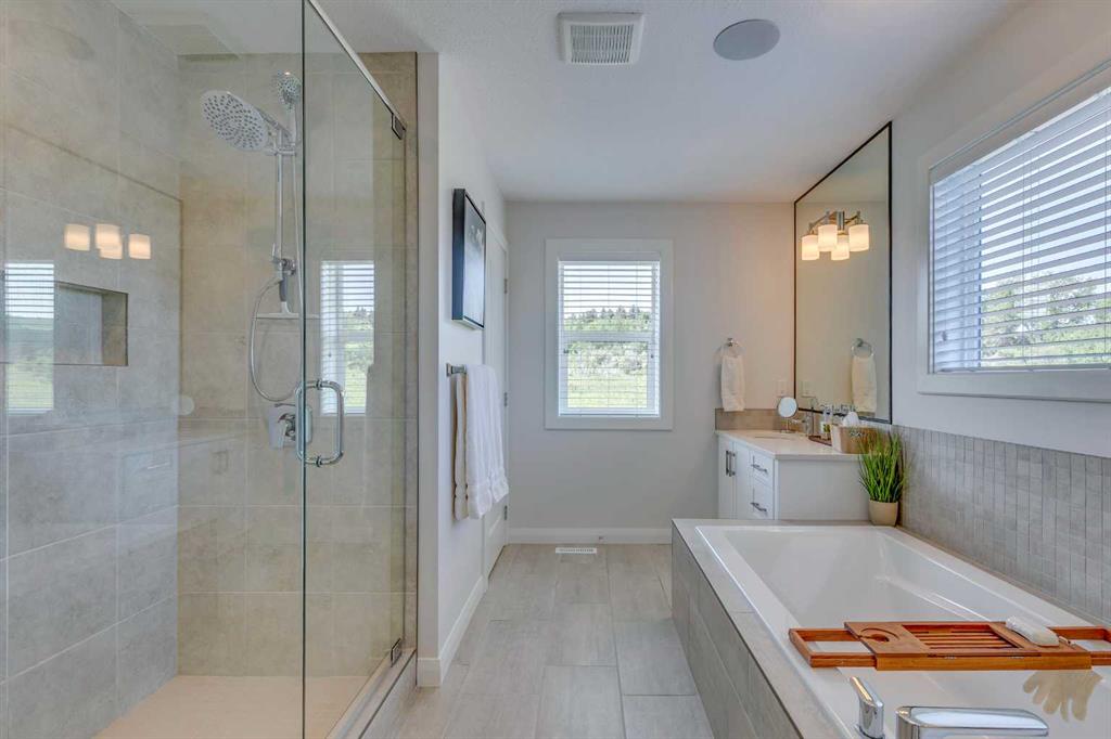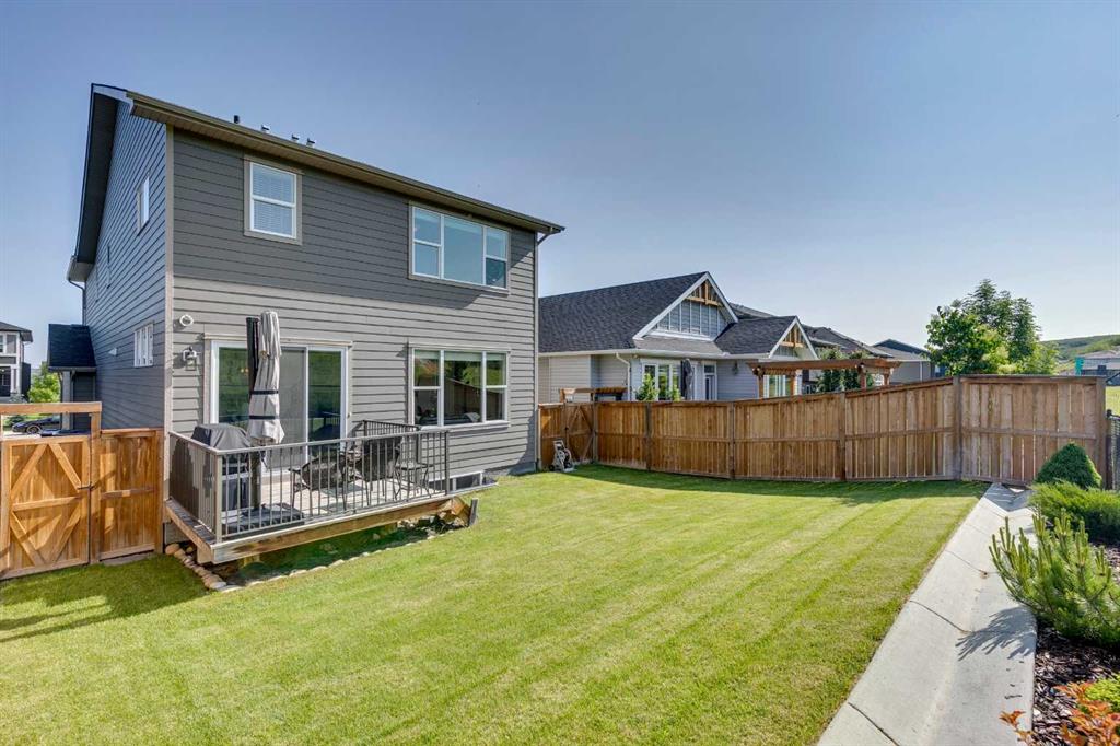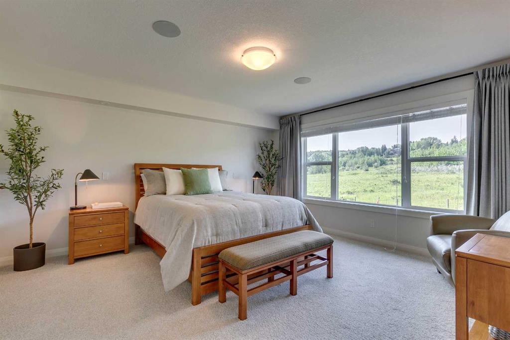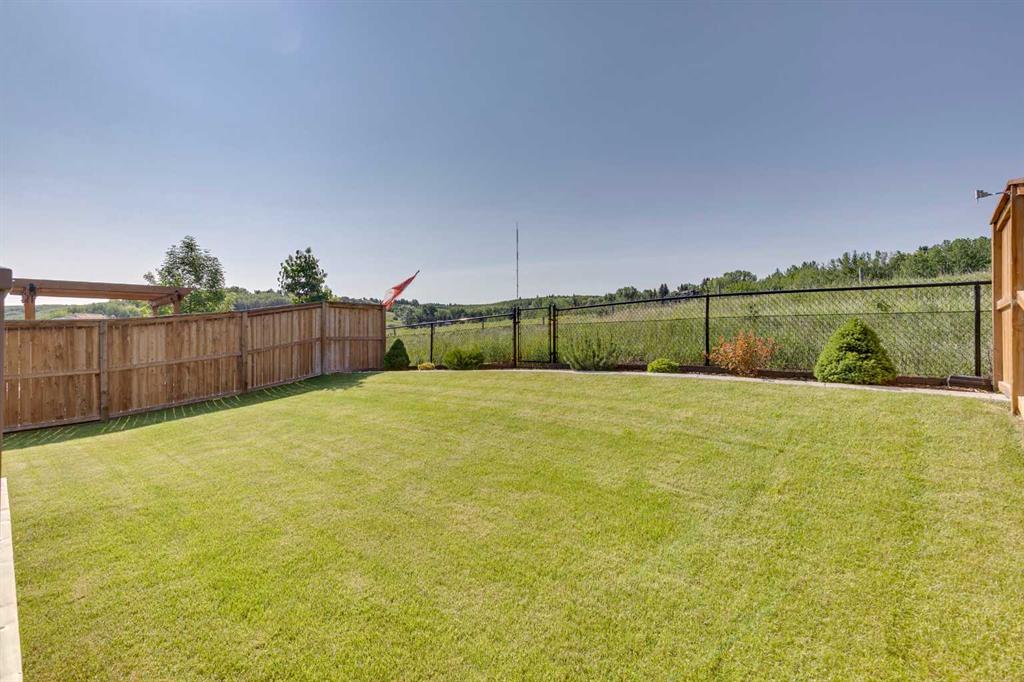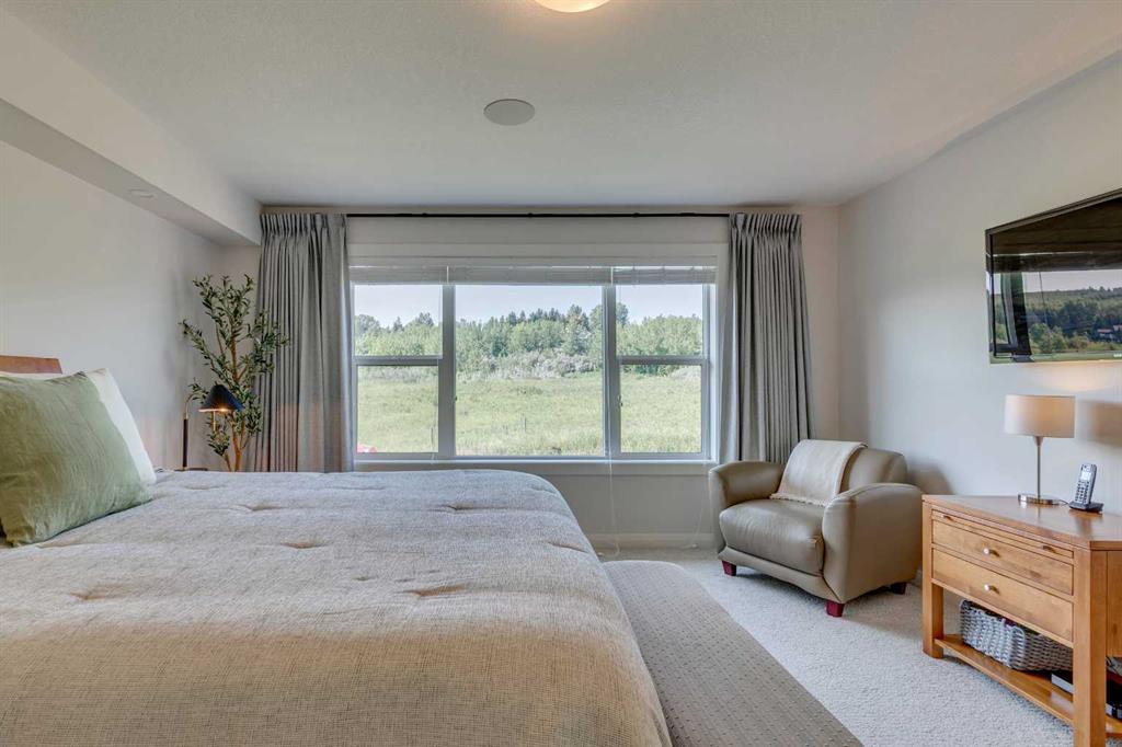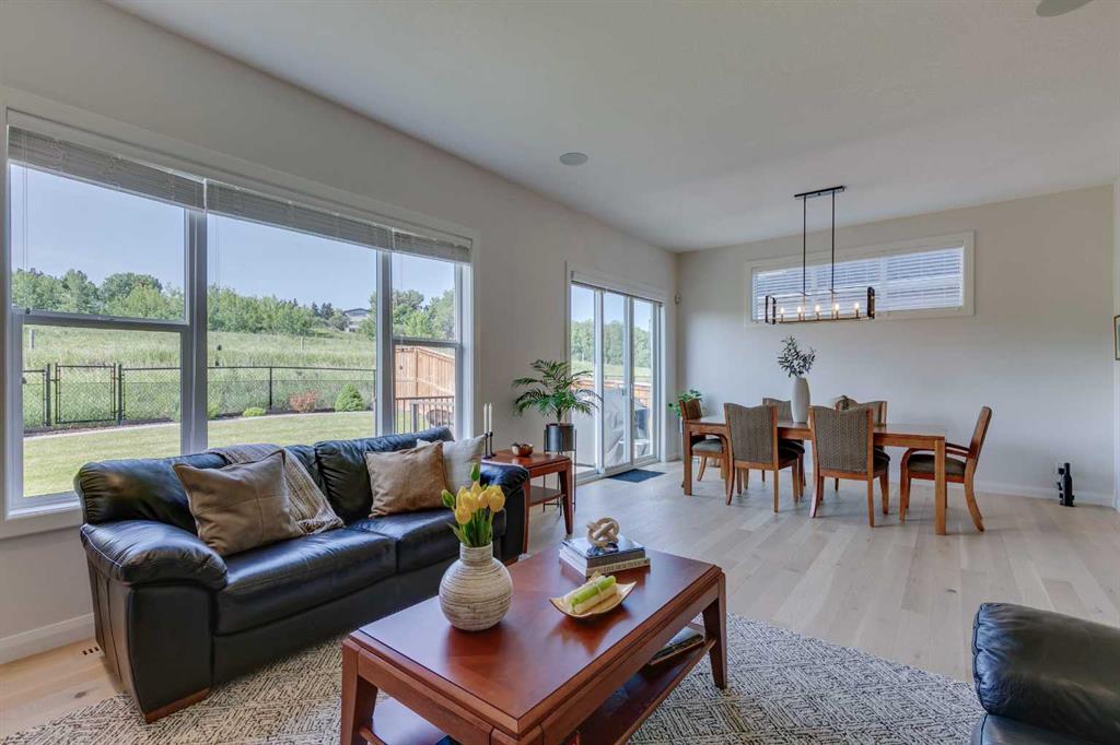 Backed by a natural foothills green space and styled with chic, airy design details, this home is the perfect balance of serenity and style. Step into a foyer with a soaring ceiling, wide plank light-toned hardwood floors and a palette of gentle neutrals, creating an inviting first impression of what lies beyond. With its open concept layout, ten foot ceiling and wall of windows framing the views to the outside, the main floor is designed for togetherness. Relax in front of the welcoming living room fireplace with stone facade. Host memorable meals in the dining room, where doors out to the deck make al fresco dining dining an effortless extension of your celebrations. At the heart of the home, the contemporary two-toned kitchen features quartz counters, subway tiles, cabinets to the ceiling, and upgraded appliances including an induction cooktop and a large central island for everyone to gather around. Whether it’s brewing your morning coffee or pouring a glass of wine with friends, the bar area with beverage fridge and wine storage is a daily luxury for your morning ritual or for serving signature cocktails. Through the reeded glass door of the pantry you can easily access the mudroom and garage, making grocery unpacking effortless. A versatile office provides a quiet retreat for work or study. At the top of the stairs on the second floor is a bright, open loft ideal for family movie nights, game hangouts or for children to play. The spacious primary bedroom is a true escape, with a sweeping view of the hillside, dual walk-in closets and an ensuite featuring double vanities, a soaking tub and a large shower. On the opposite wing, two additional bedrooms offer privacy, complimented by a convenient laundry room and a bathroom with dual sinks. The undeveloped basement contains a rough-in for a future bathroom and endless potential to customize and grow with your needs. Outside, the private south-facing yard is fully fenced, and has been thoughtfully landscaped with shrubs and a programable irrigation system. This home was built by Broadview Homes a higher calibre builder with many upgrades including light fixtures, carpet underlay, wiring, insulation, and foundation protection. Extra bonuses include: A/C, CAT6, flush-mount speakers, motorized shades, Kinetico water softener and de-chlorinator, water re-circulating system, utility sink and floor drain in garage, and radon gas exertion system. The neighbourhood is in a convenient location with easy access to Stoney Trail and the Trans-Canada making getting around the city or out to the mountains a breeze. Hiking Trinity Hills, shopping the Calgary Farmer’s Market, enjoying the year round sporting facilities at Winsport, or exploring the local pathways and parks are just a few of the great lifestyle amenities this location has at its doorstep. This is where families will gather, grow and thrive!