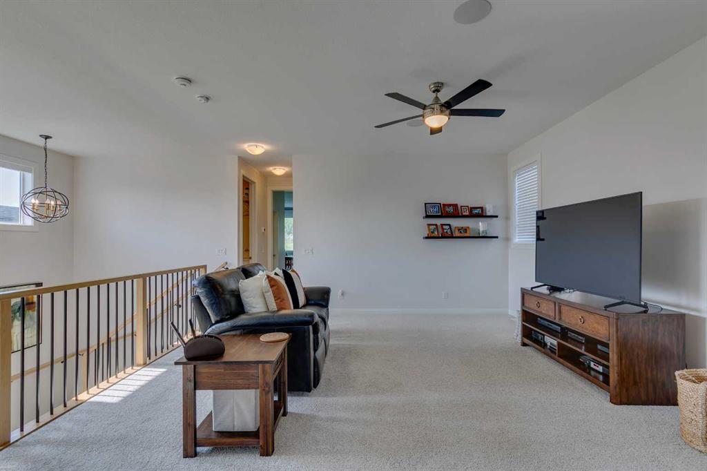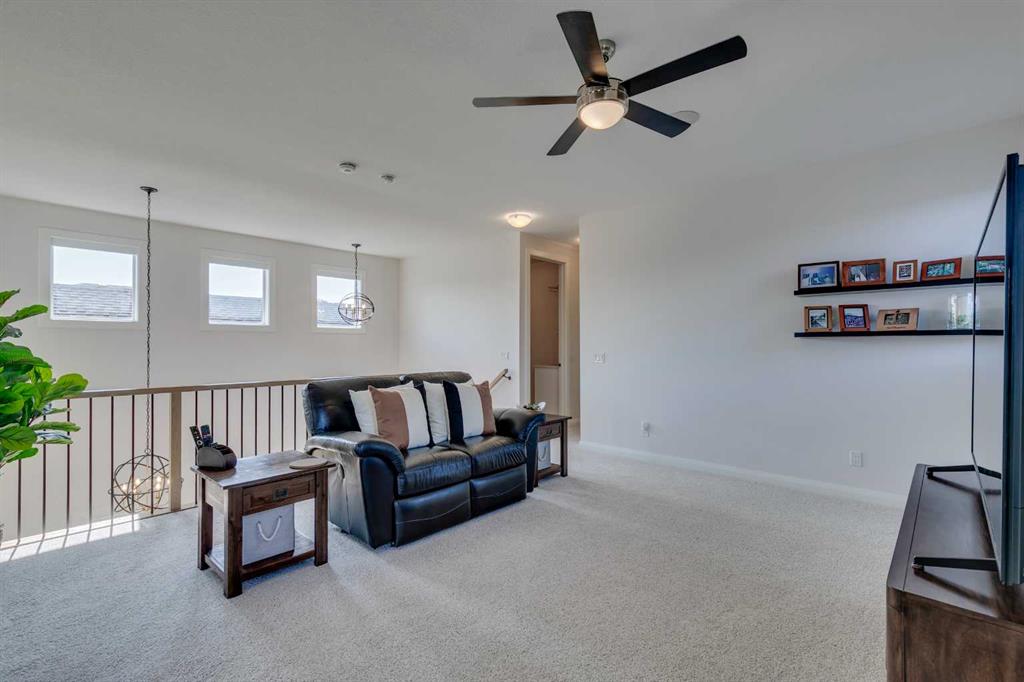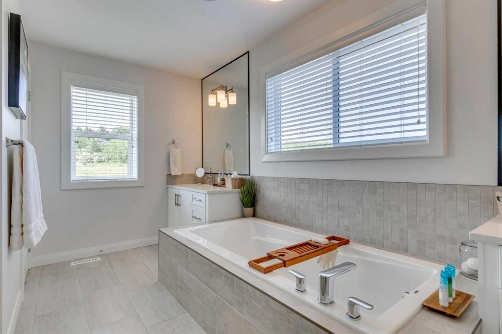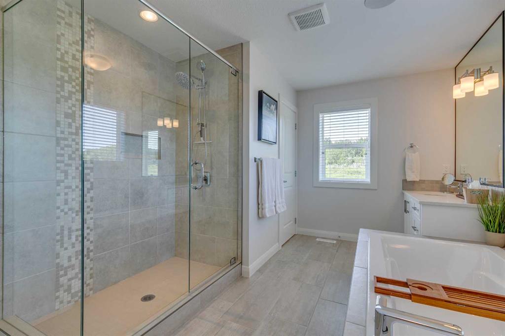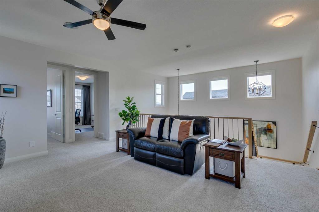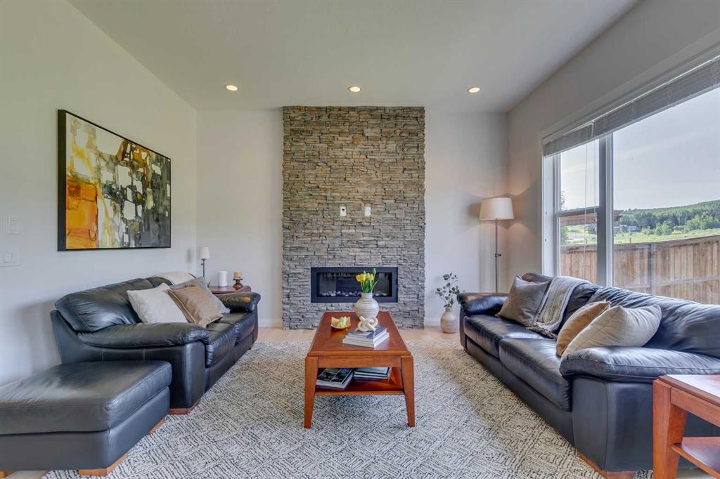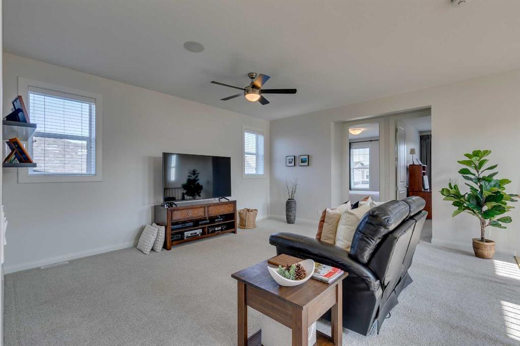 Backed by a natural foothills green space and styled with chic, airy design details, this home is the perfect balance of serenity and style. Step into a foyer with a soaring ceiling, wide plank light-toned hardwood floors and a palette of gentle neutrals, creating an inviting first impression of what lies beyond. With its open concept layout, ten foot ceiling and wall of windows framing the views to the outside, the main floor is designed for togetherness. Relax in front of the welcoming living room fireplace with stone facade. Host memorable meals in the dining room, where doors out to the deck make al fresco dining dining an effortless extension of your celebrations. At the heart of the home, the contemporary two-toned kitchen features quartz counters, subway tiles, cabinets to the ceiling, and upgraded appliances including an induction cooktop and a large central island for everyone to gather around. Whether it’s brewing your morning coffee or pouring a glass of wine with friends, the bar area with beverage fridge and wine storage is a daily luxury for your morning ritual or for serving signature cocktails. Through the reeded glass door of the pantry you can easily access the mudroom and garage, making grocery unpacking effortless. A versatile office provides a quiet retreat for work or study. At the top of the stairs on the second floor is a bright, open loft ideal for family movie nights, game hangouts or for children to play. The spacious primary bedroom is a true escape, with a sweeping view of the hillside, dual walk-in closets and an ensuite featuring double vanities, a soaking tub and a large shower. On the opposite wing, two additional bedrooms offer privacy, complimented by a convenient laundry room and a bathroom with dual sinks. The undeveloped basement contains a rough-in for a future bathroom and endless potential to customize and grow with your needs. Outside, the private south-facing yard is fully fenced, and has been thoughtfully landscaped with shrubs and a programable irrigation system. This home was built by Broadview Homes a higher calibre builder with many upgrades including light fixtures, carpet underlay, wiring, insulation, and foundation protection. Extra bonuses include: A/C, CAT6, flush-mount speakers, motorized shades, Kinetico water softener and de-chlorinator, water re-circulating system, utility sink and floor drain in garage, and radon gas exertion system. The neighbourhood is in a convenient location with easy access to Stoney Trail and the Trans-Canada making getting around the city or out to the mountains a breeze. Hiking Trinity Hills, shopping the Calgary Farmer’s Market, enjoying the year round sporting facilities at Winsport, or exploring the local pathways and parks are just a few of the great lifestyle amenities this location has at its doorstep. This is where families will gather, grow and thrive!
