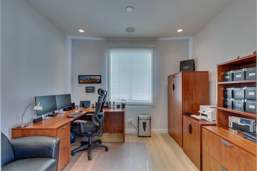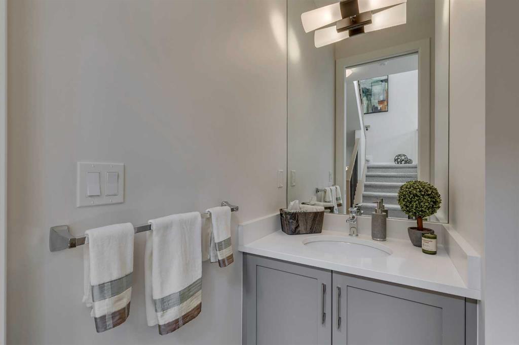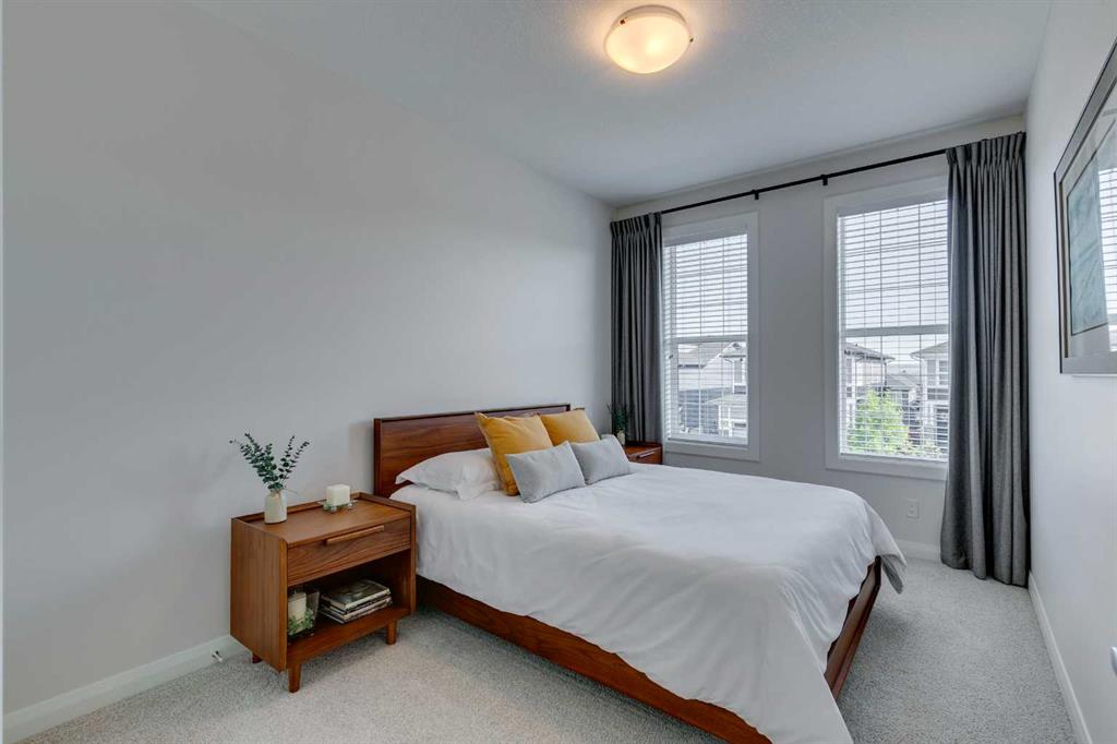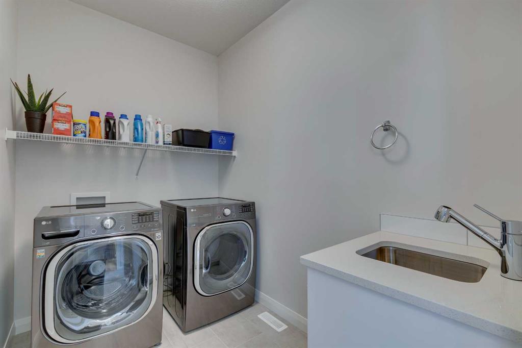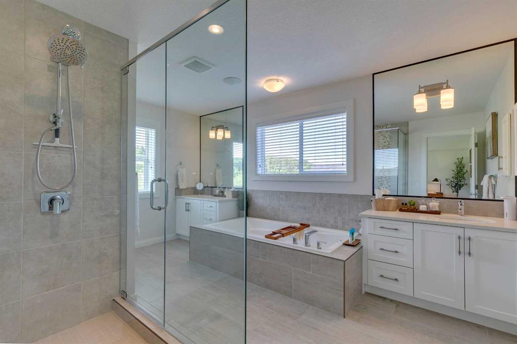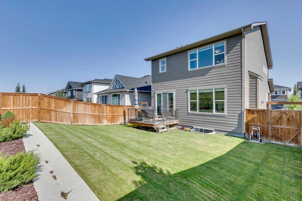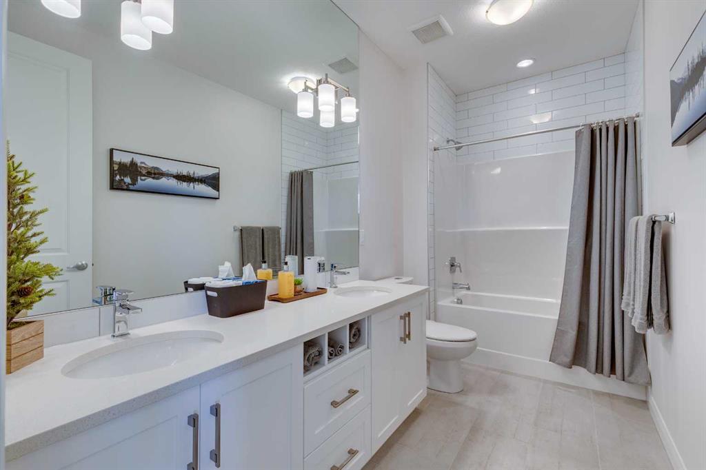 Backed by a natural foothills green space and styled with chic, airy design details, this home is the perfect balance of serenity and style. Step into a foyer with a soaring ceiling, wide plank light-toned hardwood floors and a palette of gentle neutrals, creating an inviting first impression of what lies beyond. With its open concept layout, ten foot ceiling and wall of windows framing the views to the outside, the main floor is designed for togetherness. Relax in front of the welcoming living room fireplace with stone facade. Host memorable meals in the dining room, where doors out to the deck make al fresco dining dining an effortless extension of your celebrations. At the heart of the home, the contemporary two-toned kitchen features quartz counters, subway tiles, cabinets to the ceiling, and upgraded appliances including an induction cooktop and a large central island for everyone to gather around. Whether it’s brewing your morning coffee or pouring a glass of wine with friends, the bar area with beverage fridge and wine storage is a daily luxury for your morning ritual or for serving signature cocktails. Through the reeded glass door of the pantry you can easily access the mudroom and garage, making grocery unpacking effortless. A versatile office provides a quiet retreat for work or study. At the top of the stairs on the second floor is a bright, open loft ideal for family movie nights, game hangouts or for children to play. The spacious primary bedroom is a true escape, with a sweeping view of the hillside, dual walk-in closets and an ensuite featuring double vanities, a soaking tub and a large shower. On the opposite wing, two additional bedrooms offer privacy, complimented by a convenient laundry room and a bathroom with dual sinks. The undeveloped basement contains a rough-in for a future bathroom and endless potential to customize and grow with your needs. Outside, the private south-facing yard is fully fenced, and has been thoughtfully landscaped with shrubs and a programable irrigation system. This home was built by Broadview Homes a higher calibre builder with many upgrades including light fixtures, carpet underlay, wiring, insulation, and foundation protection. Extra bonuses include: A/C, CAT6, flush-mount speakers, motorized shades, Kinetico water softener and de-chlorinator, water re-circulating system, utility sink and floor drain in garage, and radon gas exertion system. The neighbourhood is in a convenient location with easy access to Stoney Trail and the Trans-Canada making getting around the city or out to the mountains a breeze. Hiking Trinity Hills, shopping the Calgary Farmer’s Market, enjoying the year round sporting facilities at Winsport, or exploring the local pathways and parks are just a few of the great lifestyle amenities this location has at its doorstep. This is where families will gather, grow and thrive!