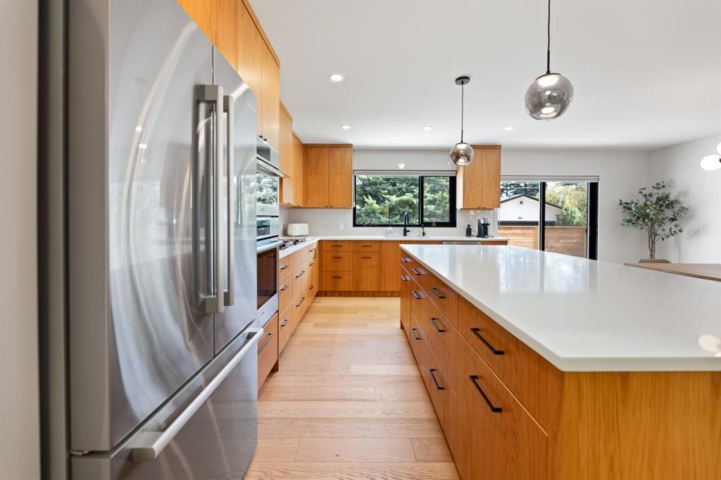 Welcome to this fully custom, beautifully renovated bungalow offering over 3,200 square feet of living space, located on the prestigious Lakeview side of North Glenmore Park on the highly desirable Laurentian Way Street. From the moment you step inside, you’re welcomed by a spacious front foyer that opens into a bright and airy living room designed for both comfort and style. The open-concept layout flows seamlessly into the dining room and the expansive custom kitchen, then continues out to a sun-drenched patio and east-facing backyard, perfect for enjoying peaceful mornings and outdoor gatherings in natural light.