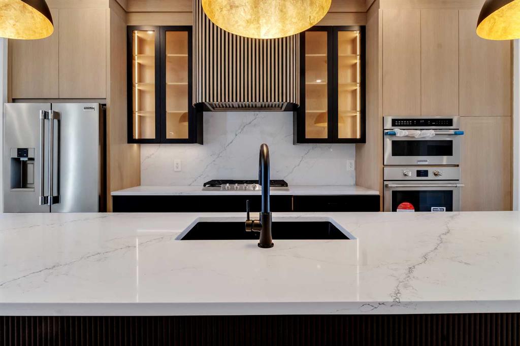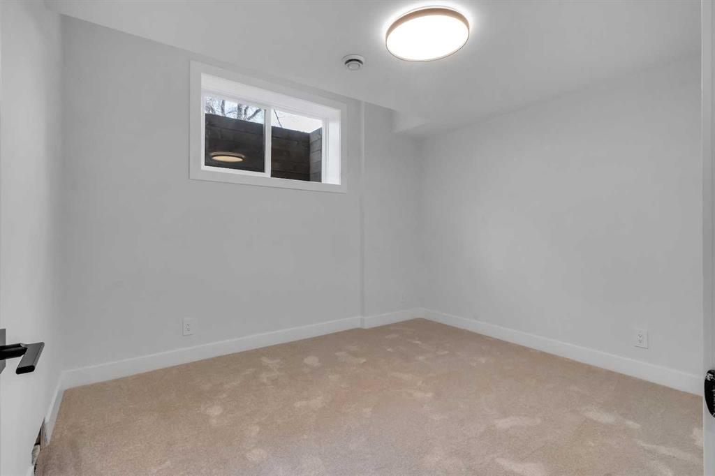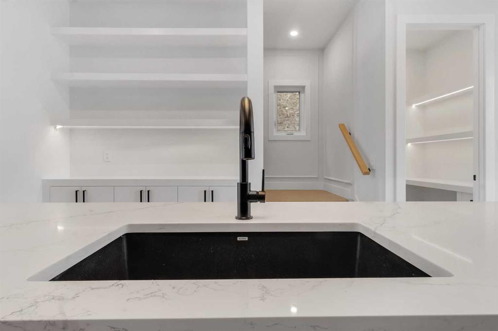 Two additional bedrooms each feature walk in closets and share a beautifully finished four piece bathroom. The upper laundry room includes LG appliances, folding counter, deep sink, cabinetry, and linen storage conveniently located near the bedrooms. The fully finished two bedroom legal basement suite (pending final inspection), includes a private side entrance and mirrors the quality of the main home. It offers a full kitchen, spacious living area, modern four piece bathroom, and dedicated laundry with a built in sink, making it ideal for extended family, guests, or future rental income. Finished with a detached double garage and paved alley access, this home is surrounded by top rated schools, parks, Mount Pleasant Pool, and everyday amenities, with quick access to major routes and the city core. A rare opportunity to own a truly refined, brand new luxury residence in one of Calgary’s most sought after communities.