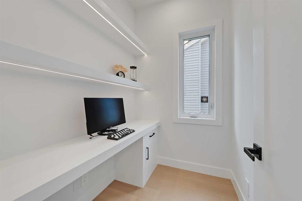 A pocket office with a built-in desk and shelving is located near the front and at the rear, a mudroom with built-in storage keep day-to-day life organized and clutter-free.