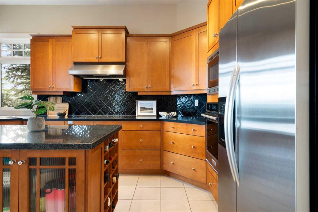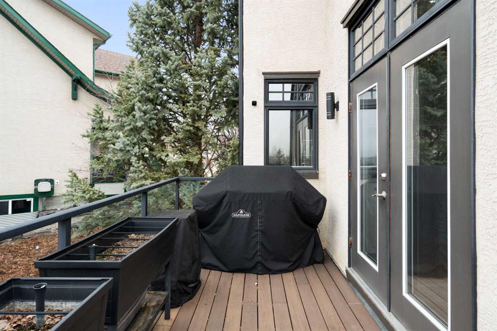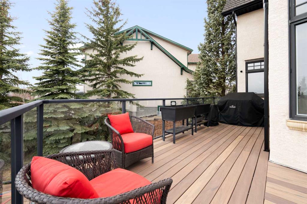 Outdoor living is exceptional, with an expansive lower patio and a wraparound composite upper deck featuring glass railing and multiple natural gas hookups—perfect for a BBQ’s, fire tables, and patio heaters. The professionally landscaped yard includes low-maintenance perennial beds and backs onto a natural extension of 12 Mile Coulee, offering a serene wildlife corridor where deer and moose are frequent visitors.