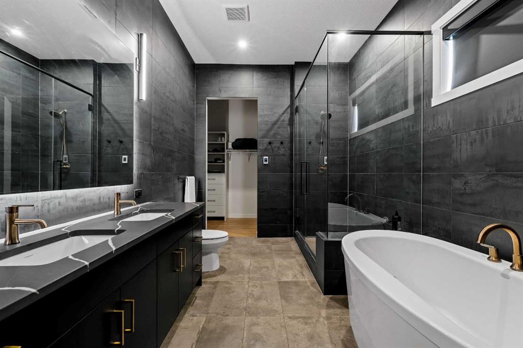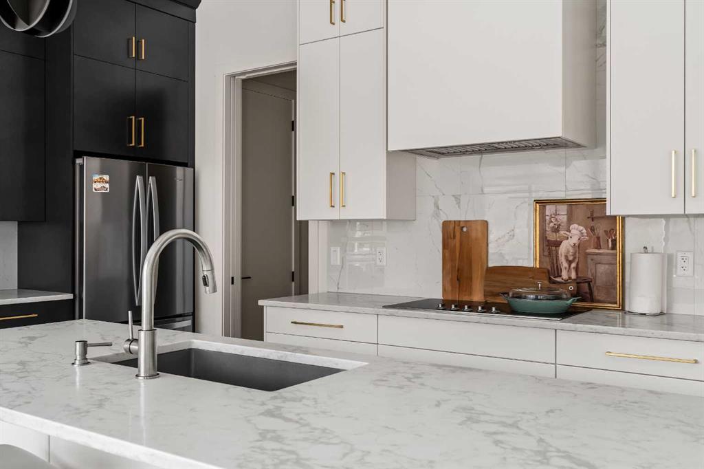 An Exceptional Luxury Residence offering unobstructed views of the picturesque escarpment hills in Cranston’s prominent community of Riverstone. Nestled on a quiet cul-de-sac pie lot in the Bow River Valley & surrounded by the natural scenery of Fish Creek Park this like-new custom bungalow is the perfect balance of relaxed sophistication, contemporary design & thoughtful functionality. The inspired interior delivers over 2700 SF of curated living space where the main floor’s open kitchen, dining & living areas showcase high calibre finishes. Two-toned extended cabinets, stunning quartz, & stainless-steel appliances bring style & function to the luxe kitchen boasting a wealth of storage, induction stove-top, quartz counters, oversized pantry & an island with seating for 3. The dining & living areas sit across a backdrop of expansive glass with viewpoints to the escarpment & provides access to the rear deck. A custom credenza & floating shelves elevate the inviting fireplace bringing an air of casual elegance to the sunlit living room. The spacious owner’s suite features a large primary bedroom with beautiful views & gorgeous floor-to-ceiling window coverings, an indulgent spa-like ensuite with dramatic vanity & tiling, luxurious stand-alone tub, separate oversized shower & heated floors! Built-in shelving provides organization to the walk-in closet while a folding table & extra storage bring added convenience to the laundry room. Completing the main floor is a charming powder room detailed with designer wallpaper & a spacious mudroom offering ample room for storage & a small workstation. The warm vinyl plank flooring extends down the staircase & throughout the fully developed walk-out lower level. Finished to the same exacting standards this floor likewise enjoys uninterrupted views while providing direct access to the lovely patio. Two generous bedrooms offer flexibility for a variety of lifestyle needs — one capturing the escarpment views & boasting custom drapery & the other featuring its own walk-in closet making them equally well-suited as a guest room, home office, or a gym. A 2nd full bathroom with heated floors rounds off this delightful level. Not to be outdone by the extraordinary interior, the exterior’s sleek appearance creates a sense of arrival. The private backyard is a peaceful spot to host summer barbecues or simply unwind under the stars. Other highlights of this remarkable property incl. 1) 10’ ceilings & 8’ doors, 2) ceiling speakers, 3) water softener, 4) a/c & 5) double garage with additional height & wired for EV charger. Please see a full list of features in the supplements. A short stroll to the river & scenic pathways & easy access to Deerfoot & Stoney Trails & the Cranston Resident’s Association at Century Hall offering indoor & outdoor recreational amenities, programs & events, & banquet & meeting room rentals. This exquisite gem delivers it all – a beautiful home nestled in nature, an active lifestyle & a connected community.