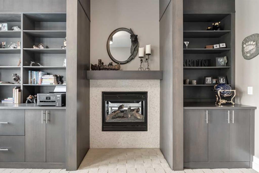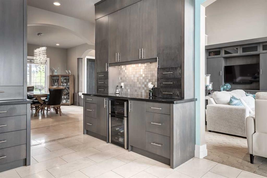 The GOURMET KITCHEN is a chef's dream, featuring a wrap-around design with GRANITE countertops, floor-to-ceiling cabinets, and a spacious breakfast nook with PANORAMIC LAKE VIEWS. Top-of-the-line appliances, including a Sub-Zero fridge, Wolf gas cooktop, dual dishwashers, and a wine and beverage area, make this space ideal for both casual dining and entertaining. The ELEGANT DINING area is a spacious, inviting setting to host those large family dinners or holiday gatherings. The main floor features a home office / den with lake views, fireplace, built in bookshelves – the perfect place to work from home or curl up with a good book! The main floor offers added convenience of a large main floor laundry, half bath and mud room.