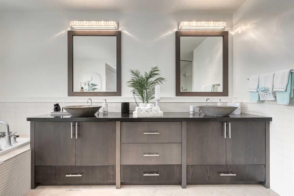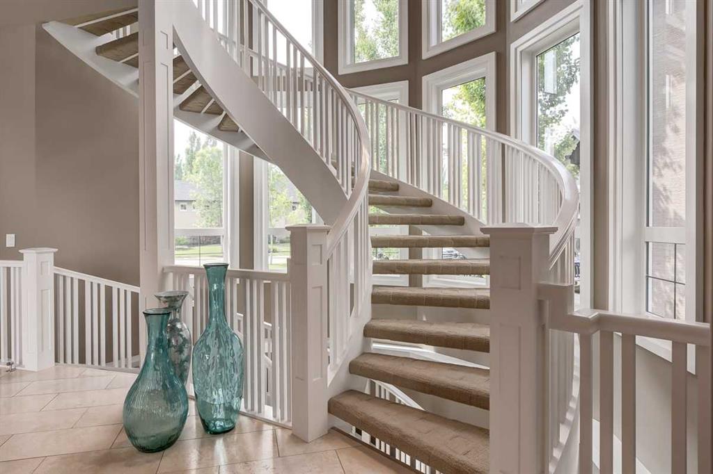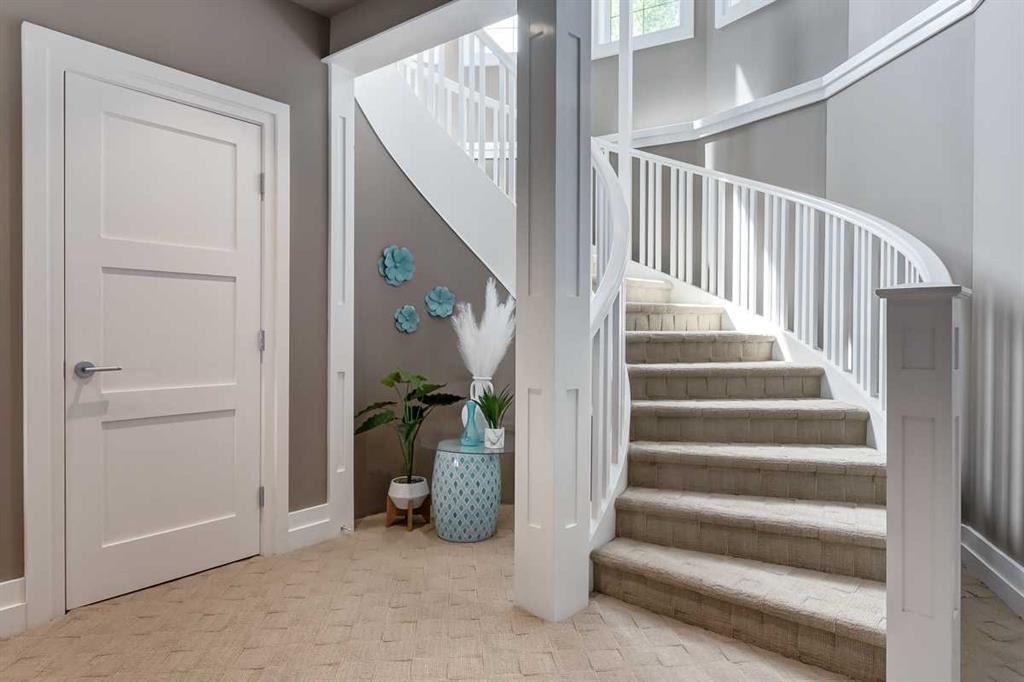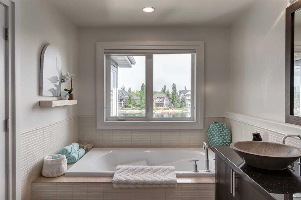 This FIVE BEDROOM home has FOUR BEDROOMS located UPSTAIRS, connected by a walkway that overlooks the lake. The PRIMARY SUITE is grand in size, offering full LAKE VIEWS and a SPA-LIKE 5-piece ENSUITE with a soaker tub, double vanities, and a spacious walk-in closet with CUSTOM shelving. The second bedroom upstairs has a 3 pc ensuite bath, and the third and forth bedrooms upstairs share a 5pc main bathroom, making it ideal for family living.