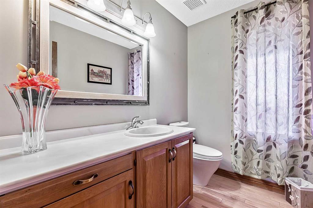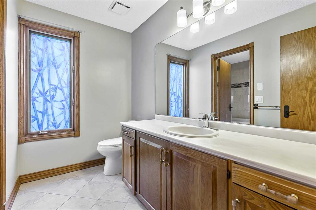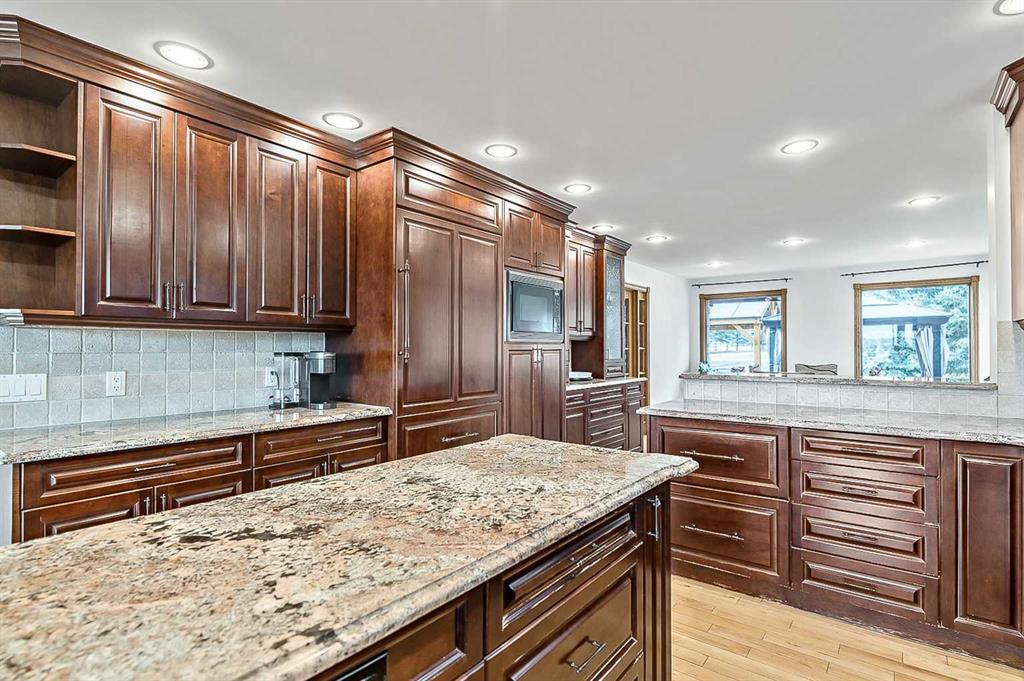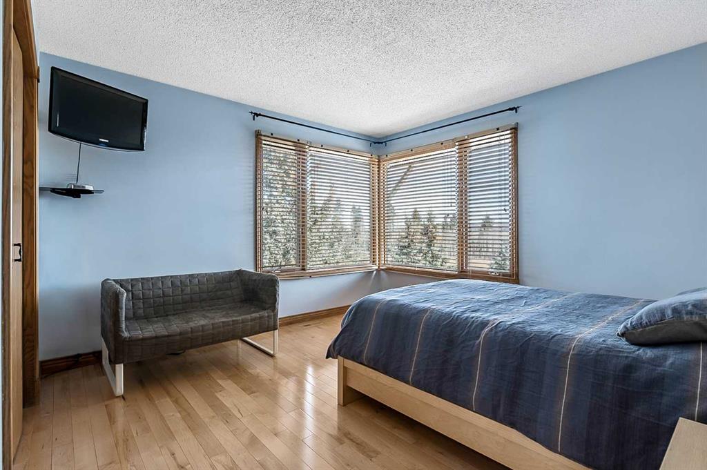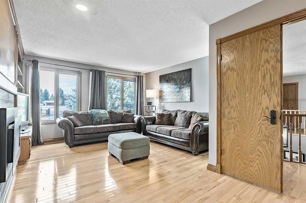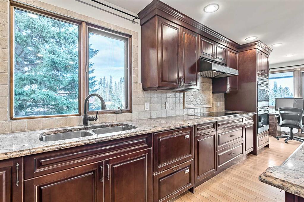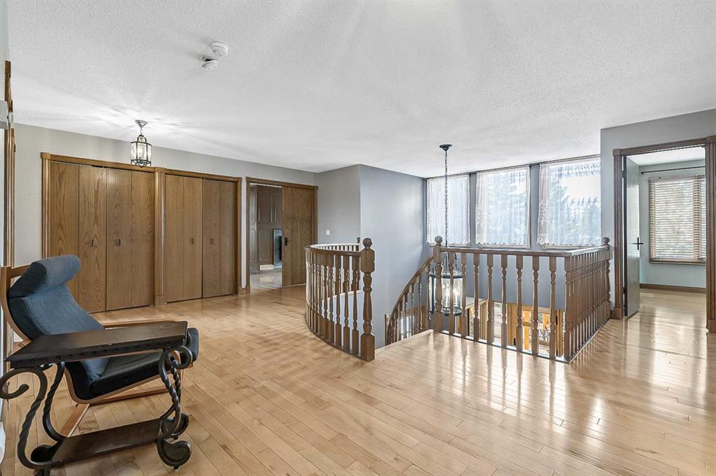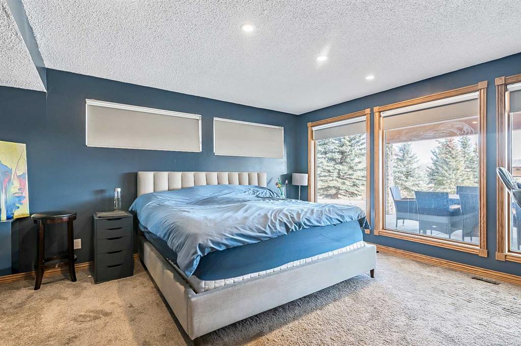 VIEWS VIEWS VIEWS! Welcome to this exceptional seven-bedroom, three-and-a-half-bathroom estate home in the prestigious Elbow River Estates community. Offering over 3,700 square feet of thoughtfully designed living space, this impressive two-storey residence is perfectly positioned on a premium lot capturing fantastic mountain views from the front and sweeping, unobstructed panoramas over the Glencoe Golf Course from the rear. A grand two-storey foyer with a graceful, curved staircase sets an elegant tone upon arrival. The main level is designed to highlight the scenery, featuring a warm and inviting living room with a wood-burning fireplace and large windows that frame the picturesque surroundings. The formal dining room, highlighted by a charming bump-out, provides an ideal setting for hosting. The beautifully updated kitchen is appointed with granite countertops, oak cabinetry, stainless steel appliances, and a built-in desk, all while enjoying serene backyard views. The adjoining family room, centered around a cozy gas fireplace, opens through sliding doors to a spacious deck—an outstanding vantage point to take in the spectacular golf course vistas and unforgettable sunsets. Upstairs, the primary suite offers a luxurious private retreat enhanced by beautiful views and a two-sided gas fireplace that separates the sleeping area from a tranquil sitting space. Four additional generously sized bedrooms and a full bathroom complete the upper level, offering comfort and flexibility for family or guests. The fully developed walkout lower level continues to impress with stunning, uninterrupted views of the golf course, along with an additional bedroom, recreation room, den, wine room, and abundant storage and utility areas. Step outside to enjoy the peaceful setting and expansive open landscape beyond. A triple attached garage and a well-designed mudroom with laundry and built-in storage add everyday convenience. Residents of Elbow River Estates enjoy access to exceptional community amenities including a playground, tennis and basketball courts, a seasonal outdoor rink, and a community horse arena—all just minutes from Calgary. Nearby Clearwater Park and Calgary Academy further enhance this highly desirable location. This is a rare opportunity to own a remarkable home defined by space and truly fantastic views in one of the area’s most sought-after communities!