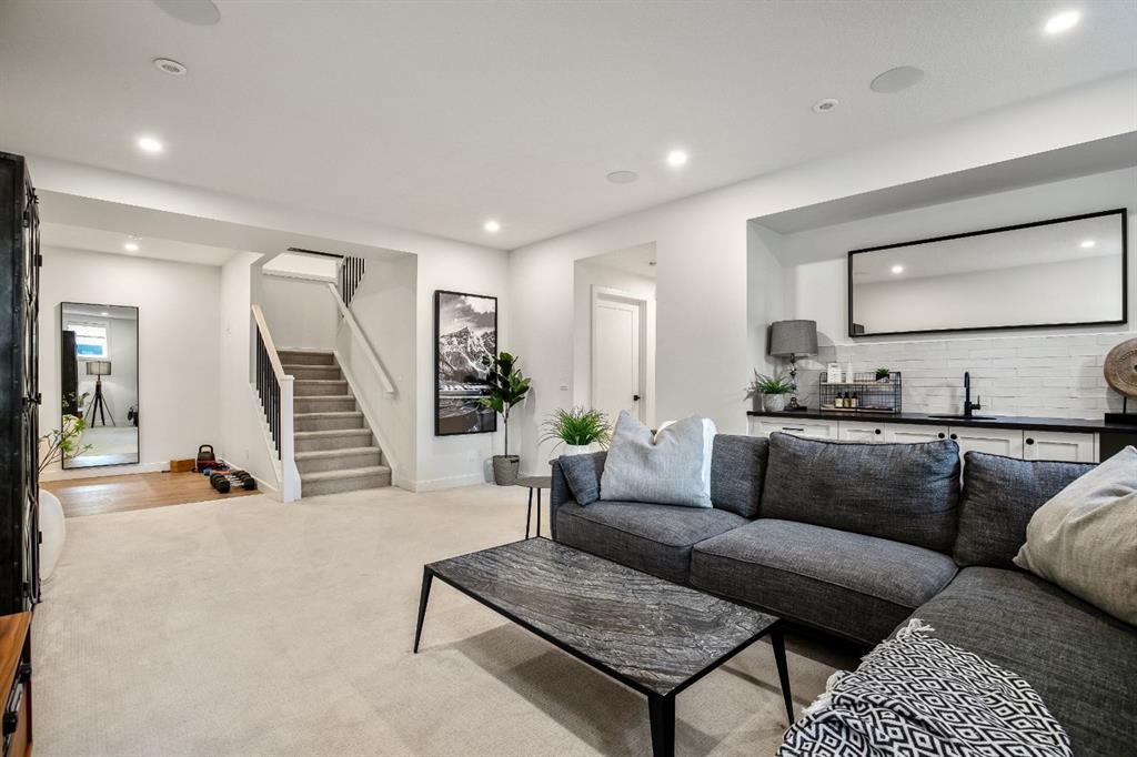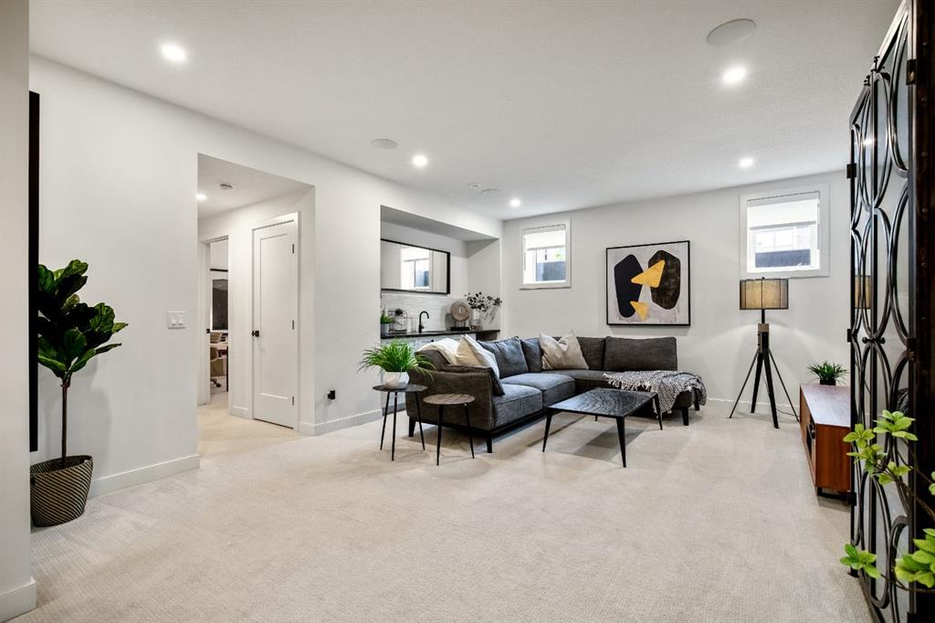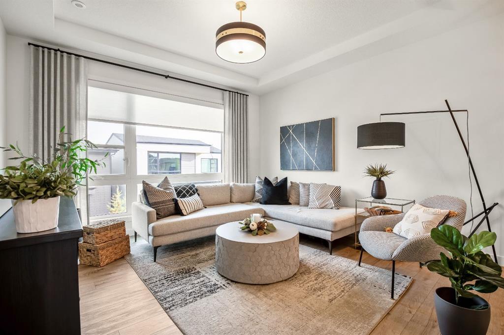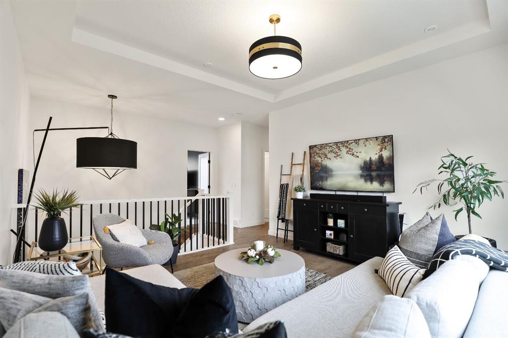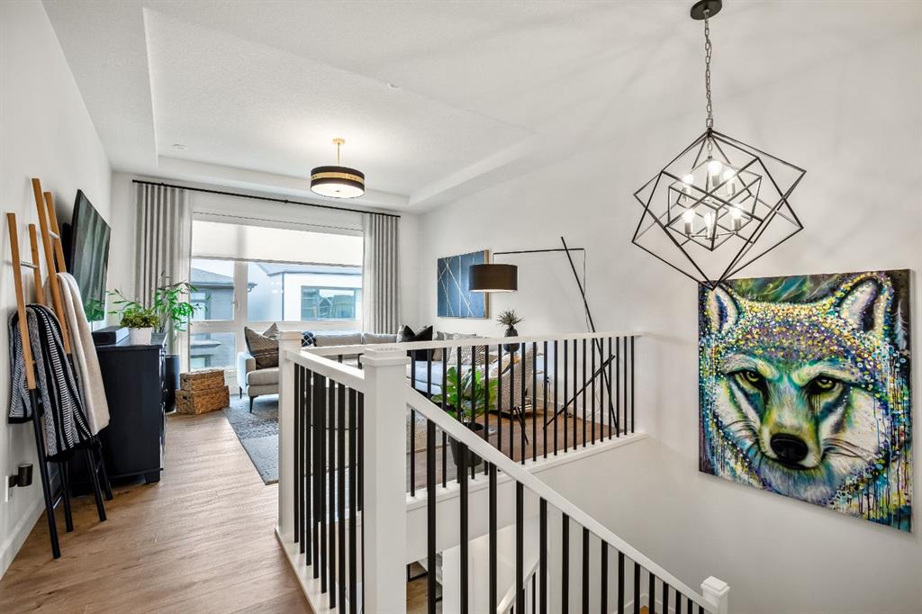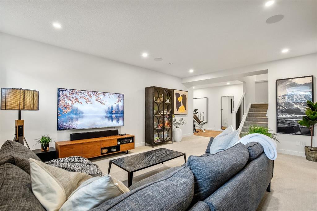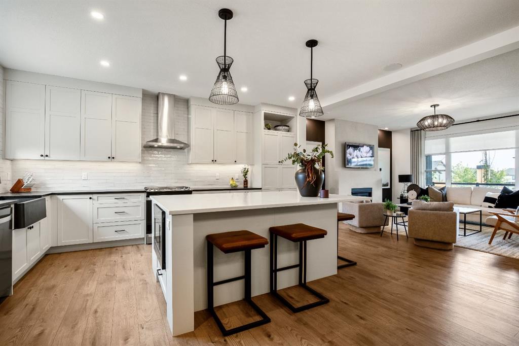 Enjoy luxury living in the estate community of Alpine Park. Intentionally built on a quiet green space with only a pedestrian pathway and no traffic out front. As you approach this stunning residence on an oversized corner lot you will notice the great curb appeal and welcoming front porch. This well thought out open concept design will exceed your expectations, with hard surface flooring throughout and soaring 9’ ceilings. The gourmet kitchen is a focal point with custom cabinets that reach to the ceiling, SS appliances with a gas stove, gorgeous stone counters, timeless tile backsplash, a kitchen sink overlooking the courtyard and an oversized island that faces the bright dining room. Enjoy direct access to your own outdoor oasis including a private covered deck with phantom screens creating a great 3 season outdoor space, a lower level deck, and a large lower patio for low maintenance living plus 2 outdoor gas line ( for BBQs or Fire Tables). Adjacent to the kitchen is the spacious living room showcasing a contemporary texture finish gas fireplace. Plus, a bright front home office or study creating the perfect setting to focus and be productive. Avoid the outdoor elements with a rear attached 2 car garage, mudroom, and stylish powder room tucked out of the way. As you head upstairs you will notice the contemporary railing that opens to the large bonus room with tray ceiling detail perfect for movie nights, 2 well sized bedrooms, a 5pc main bath with stone counters, and a convenient upper-level laundry room are situated away from the Primary retreat. This sanctuary has a tray ceiling detail and luxurious ensuite including a relaxing free standing soaker tub, massive tiled shower, dual sinks, and expansive walk in closet. The basement is fully complete with a gym, 4th bedroom, 4 pc bath, and large rec room with wet bar. Every detail reflects unparalleled craftsmanship from the comforts of air conditioning, custom drapes, designer lights, upgraded plumbing fixture, a hose bib in the garage, and energy efficiencies of a tankless hot water tank, and a dual zone hi velocity heating system. Enjoy easy access to the mountains, via Stoney trail, downtown 20 minutes away, and 5 minutes to Costco and shopping. View the virtual tour or schedule a time to view the home today!