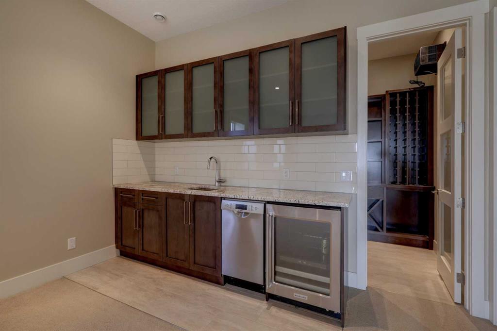 The lower level with WALKOUT is the perfect place to relax and watch a movie or entertain in your extra-large family room. Two additional bedrooms, an enormous SPA like 5pc bathroom, large walk in temperature controlled CUSTOM-BUILT IN WINE ROOM with glass doors, a large wet bar with beverage fridge, GRANITE counters & dishwasher finishes off the basement.