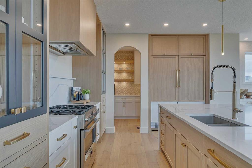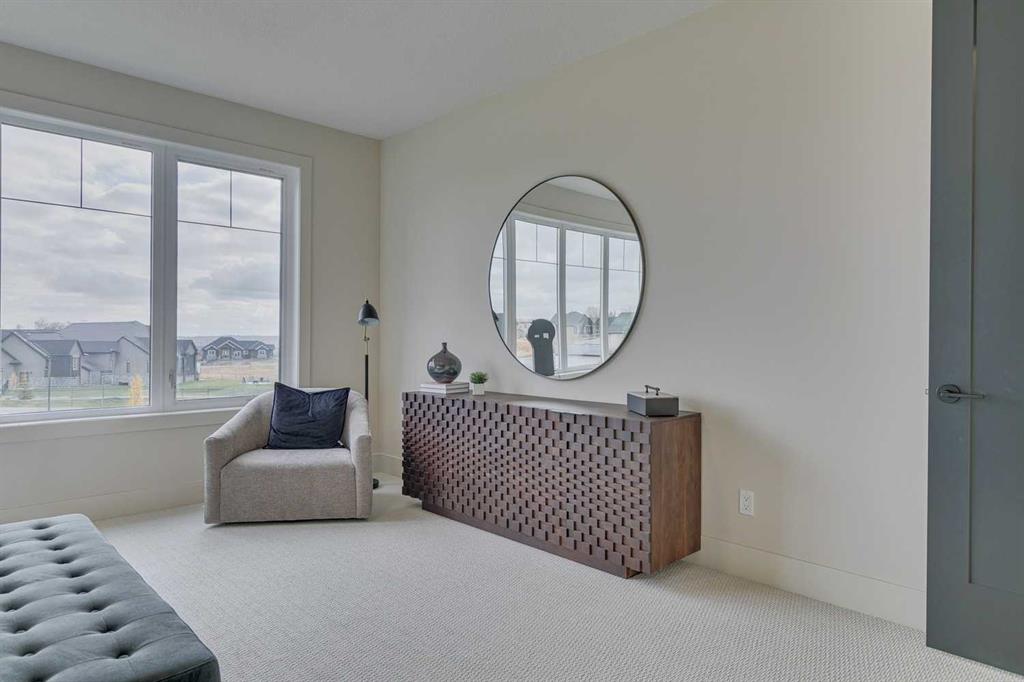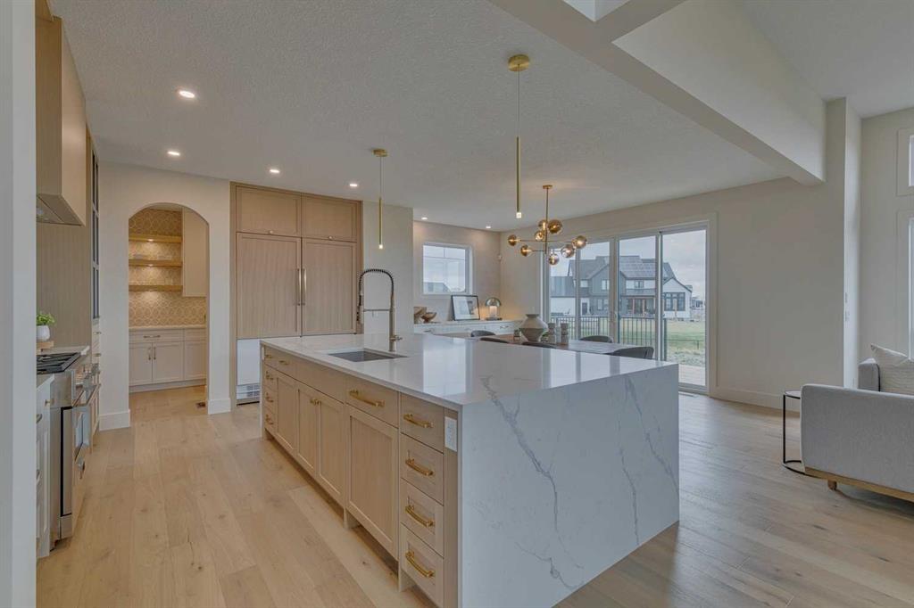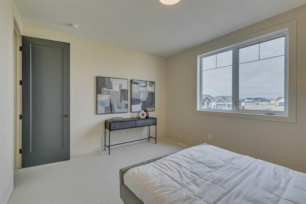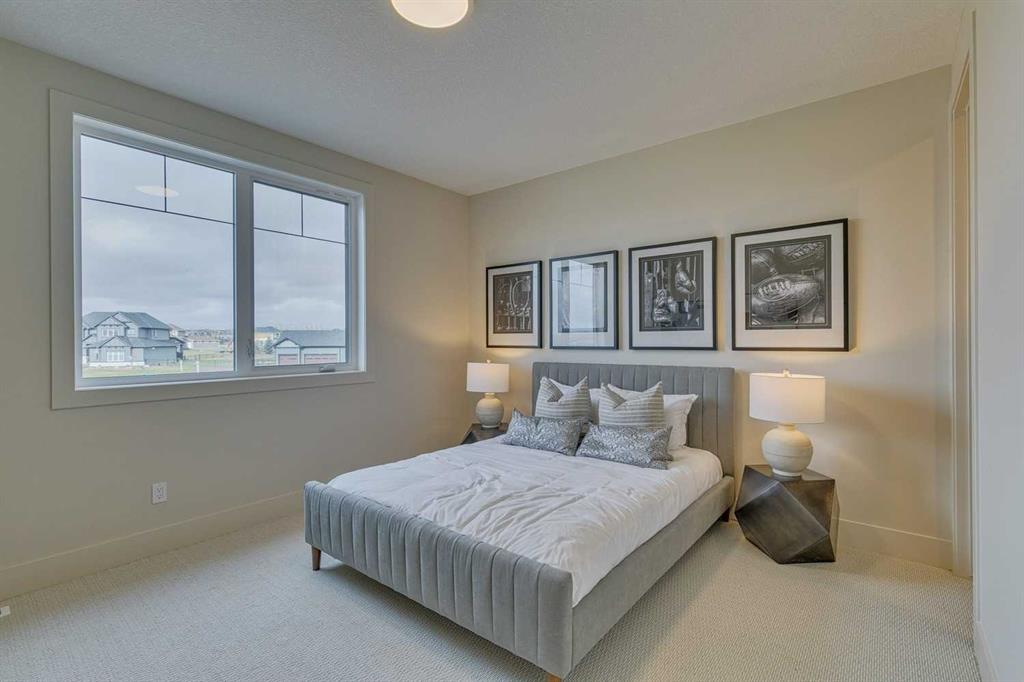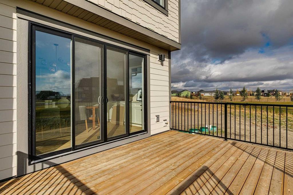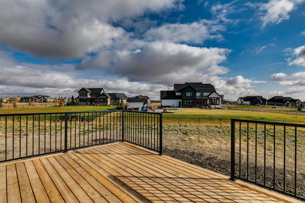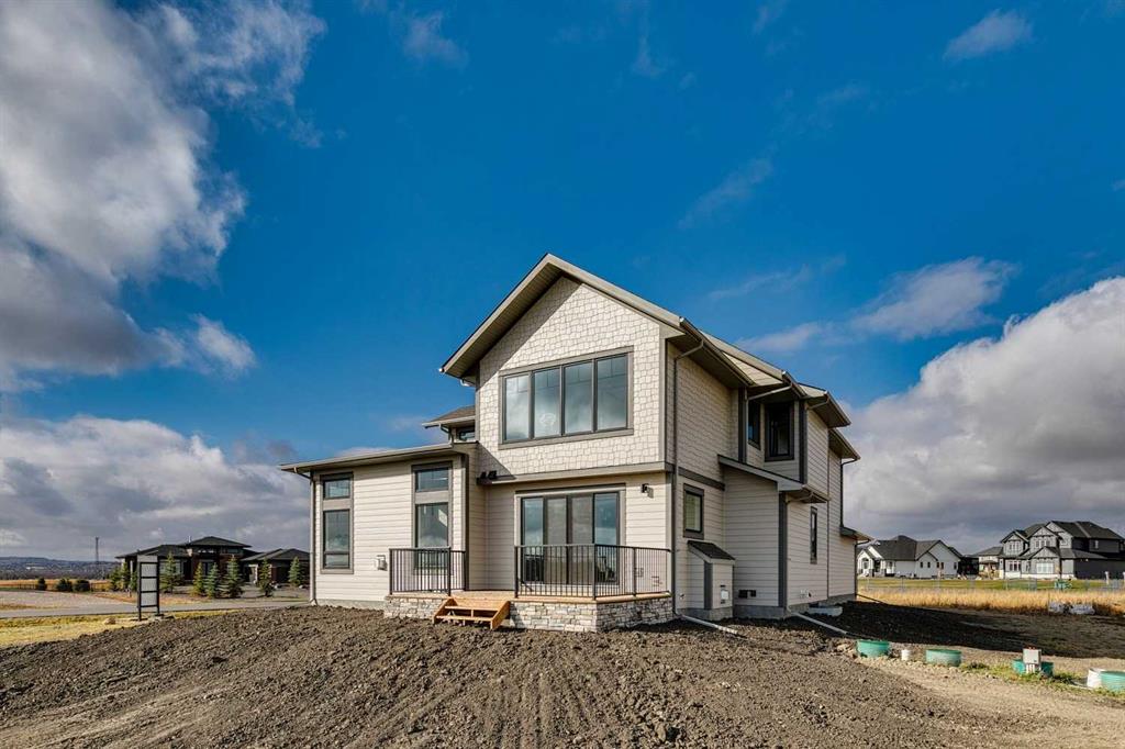 This "Alberni" Show Home is one of Fifth Avenue Homes most popular plans! A traditional two-storey offering a total of 4,148 sq.ft. of luxury living space including professional basement development! The great room features a gas fireplace and 20' ceiling, adjoining dining area with a sliding door to the 14'x17' deck (with BBQ gas line) and access to the large yard. Dream kitchen with built-in fridge, oversized island & 4 stool breakfast bar, Quartz countertops and a walk-through butler’s pantry. Completing the main floor is the front den, a 2 piece bathroom and mudroom with direct access into the garage. The upper level has the perfect room count: an oversized primary suite with a spa-style 5 piece ensuite and walk-in closet, 2 additional bedrooms, 5 piece bathroom and laundry room! The lower level is developed with a family room featuring a gas fireplace, glass wine cellar and wet bar, home gym, 4 piece bathroom, hobby/craft room and mechanical room. Awesome oversized triple attached garage with additional storage or room for a workshop. This home has many upgrades including engineered hardwood, custom tile, closet organizers & wood shelves, Hardie board siding and 30 year shingles. Full Builder and New Home Warranties. Green Haven Estates is located minutes east of Okotoks offering peaceful country living! Less than 30 minutes to the South Campus Hospital and Calgary’s amenities too! Early 2026 possession available.