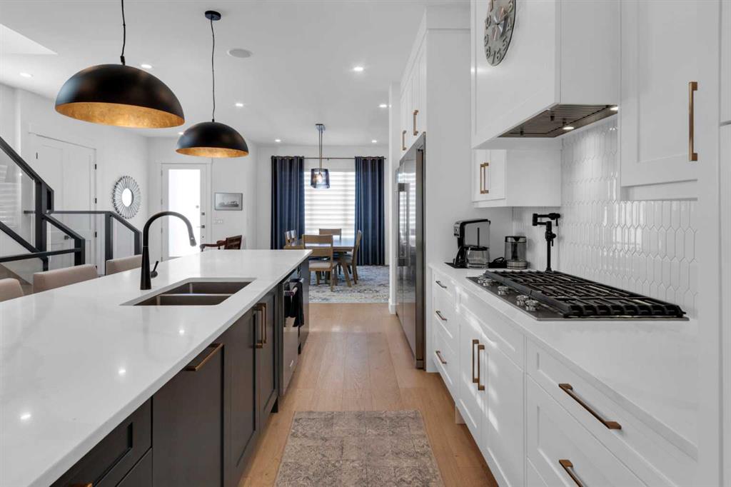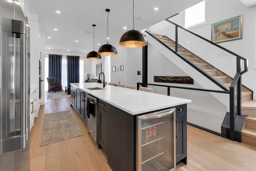 Welcome to this beautifully appointed two-storey home with a fully finished basement, in-floor heating, and air conditioning, ideally located in the highly sought-after community of Spruce Cliff close to schools, shopping, the LRT, Westbrook Mall, Calgary Public Library, Edworthy Park, and Shaganappi Golf Course offering golf and cross-country skiing, as well as an extensive pathway system connecting to Glenmore Park, Bowness Park, and downtown; this home is rich in upgrades and features a chef’s kitchen with a massive island and high-end appliance package, cozy fireplace, spacious dining room with a stylish feature wall, and an incredible primary retreat complete with a spa-like 5-piece ensuite offering a steam shower, heated floors, and walk-in closet, along with wide-plank hardwood and marble flooring, built-ins in every closet, custom window coverings, a functional mudroom, and abundant storage throughout, while the upper level offers an open bonus space ideal for a TV area, office, or study and the lower level includes a glass-walled soundproof room perfect for a music studio or home gym; the professionally landscaped and fully fenced exterior boasts mature trees, a private backyard with aggregate patio and rear landing/deck, security bars on lower windows, and a double detached garage that is drywalled and insulated, completing this exceptional home—call today for your private viewing.