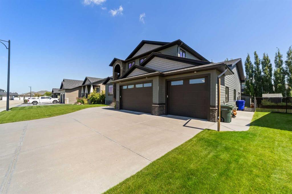 Welcome to this exceptional 5-bedroom luxury home, located on Harrison Green in the Olds Highlands. Situated on a generous lot with a beautiful central green space right out front, this property blends high-end finishes, thoughtful design, and an unbeatable location in one of Olds’ most desirable neighborhoods. From the moment you enter, you're greeted by a grand open staircase and elegant features throughout. The chef’s kitchen is the heart of the home—perfectly designed for entertaining and everyday living—with a large center island, full-size stove, wall oven and microwave, pot filler, wine fridge, and ample work space. There's also plenty of room for a large dining table, making it ideal for hosting family gatherings and dinner parties. Beside the dining area, a cozy, tucked-away family/TV room offers a perfect spot to unwind, separated by a double-sided fireplace that adds warmth and ambiance to both spaces. Enjoy total comfort in the 3-season east-facing enclosed patio room, perfect for morning coffee or evening relaxation. Step outside to a beautifully landscaped yard with a hot tub, rear shed with power, and a full irrigation system keeping the lawn green and lush. All five bedrooms feature walk-in closets, and the primary suite is a true retreat with a spa-inspired ensuite, including a freestanding tub and a double-sided fireplace shared with the bedroom—offering the perfect blend of comfort and luxury. The fully finished basement features in-floor heating, wet bar, a home theatre, and two large bedrooms—perfect for teenage children, guests, or visiting grandchildren needing space and privacy. Car lovers and hobbyists will appreciate the heated 4-car garage, complete with in-floor heat, a car hoist, air compressor with air lines throughout, and plenty of space for vehicles, tools, and toys. Additional highlights include a reverse osmosis water system, upgraded lighting, and premium finishes throughout. Don’t miss out on this incredible property that offers luxury, comfort, and room to grow in a prime location.