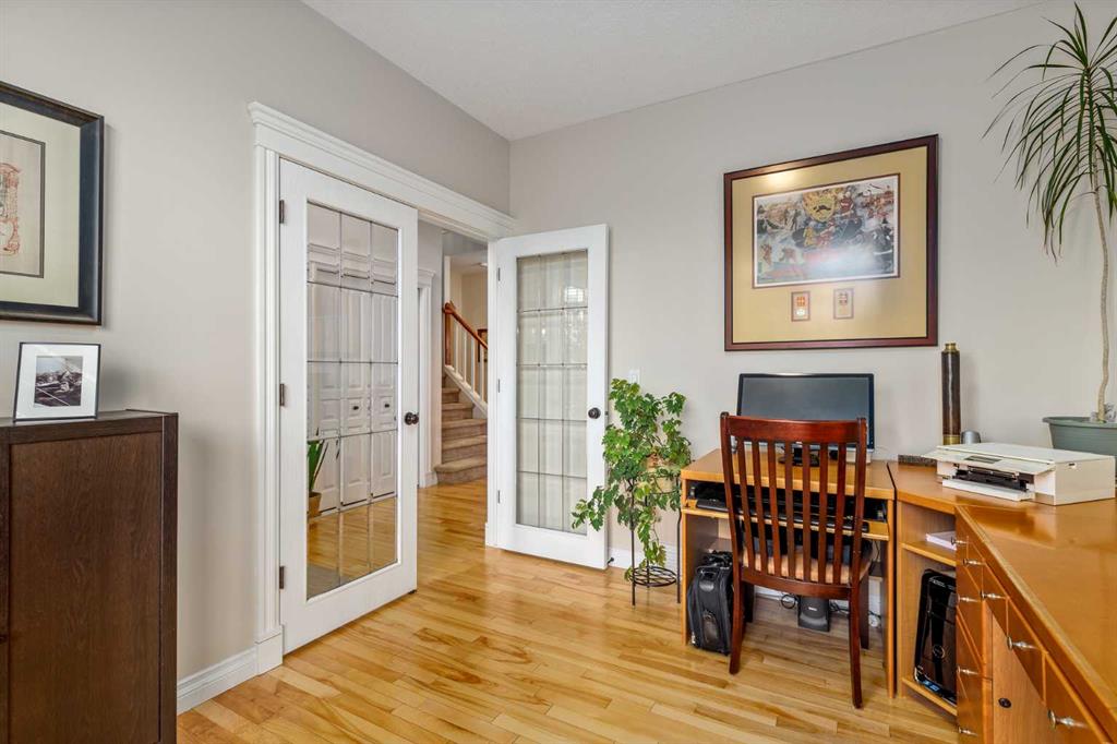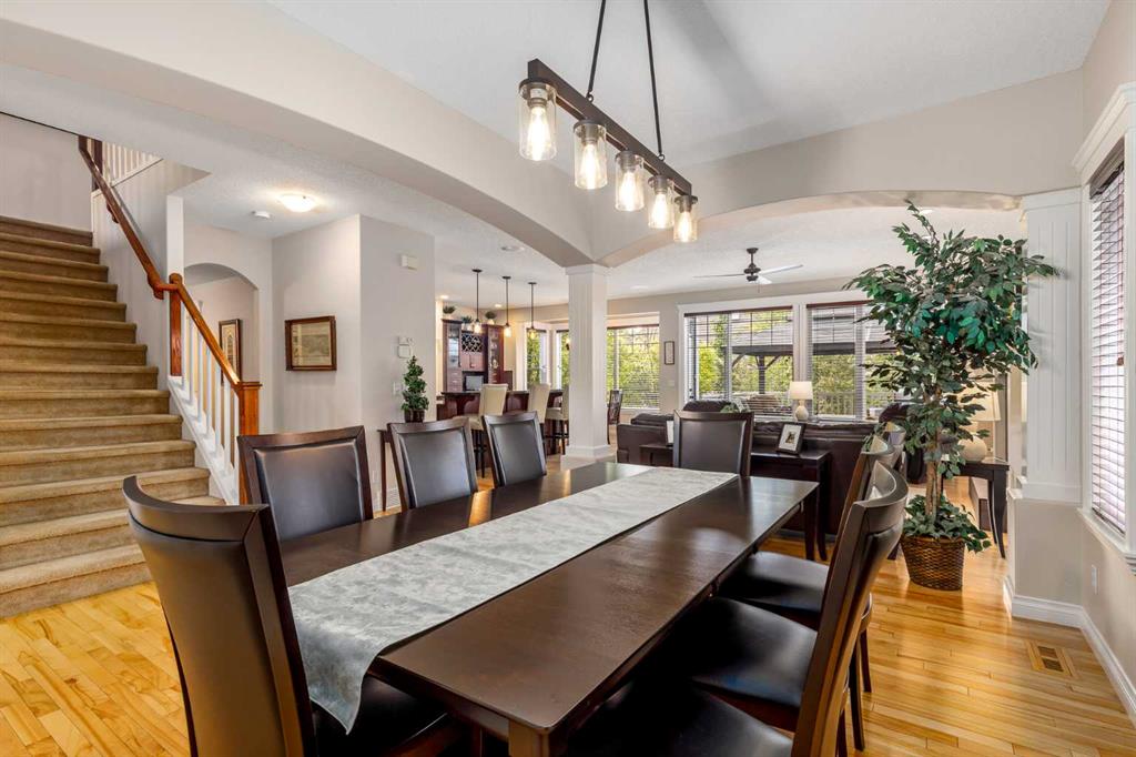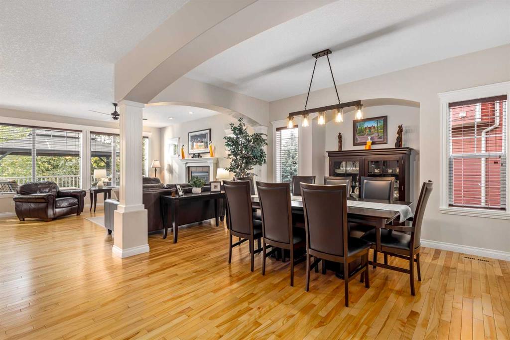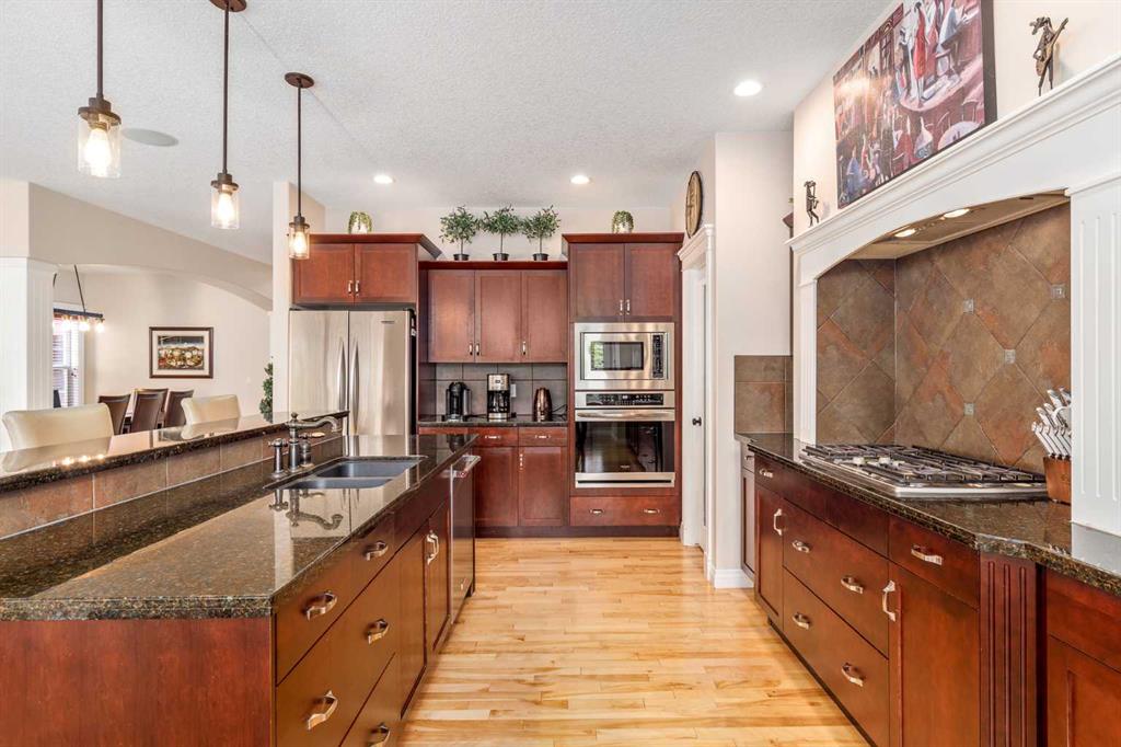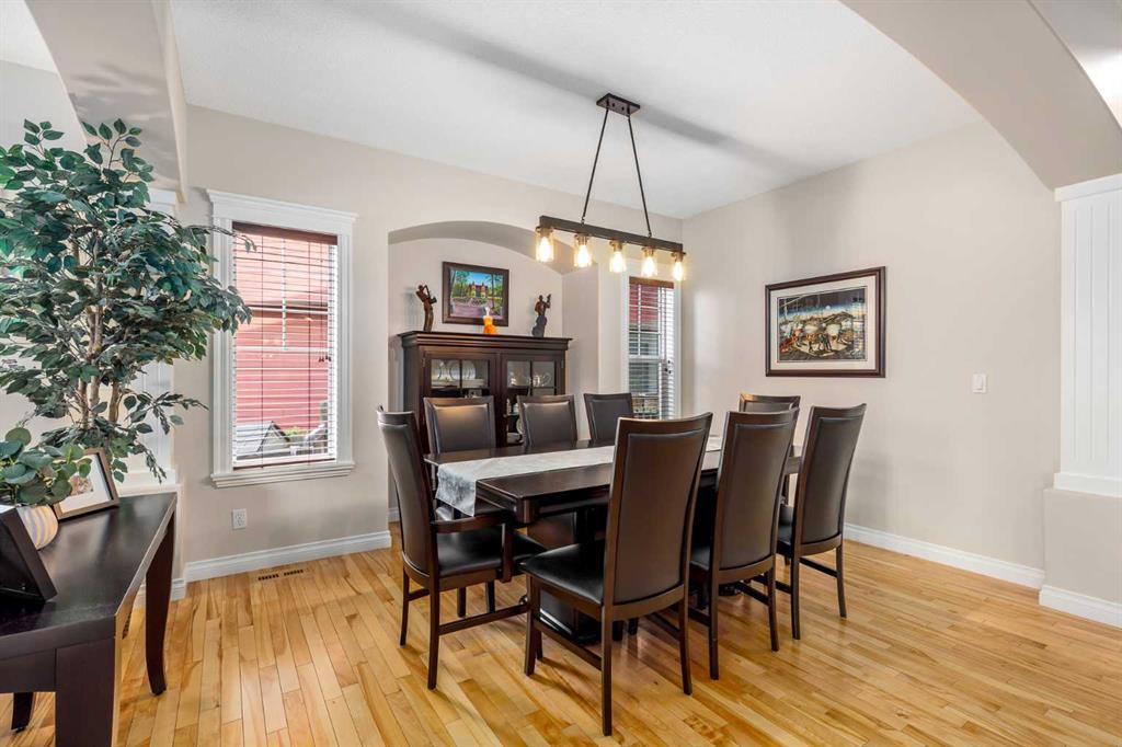 Welcome to this meticulously maintained, original-owner Morrison-built home tucked away on a quiet crescent in the heart of Auburn Bay. With an oversized pie-shaped, southwest-facing lot that’s both well-treed and private, and just four houses from the playground, this property perfectly blends family living with an unbeatable location. Step inside the vaulted front entry, where a spacious den sets the stage for a home office or study. A formal dining room with bright windows and a niche adds elegance for entertaining. At the back of the home, a welcoming family room with a central gas fireplace flows into the expansive kitchen and sunny breakfast nook. The kitchen features a large island with raised breakfast bar, gas stove, dark stained cabinetry, sleek black quartz countertops, stainless steel appliances, and a classic box-style hoodfan that gives the space an elevated, timeless feel. A built-in bar with wine rack and glass accents doubles as a coffee station, while a full pantry keeps everything organized. Blonde hardwood runs throughout the main level, and a practical mudroom with a 2-piece bath connects to the double garage. Upstairs, the vaulted bonus room offers a cozy corner fireplace and is surrounded by open railings that carry throughout the upper hallway, giving the entire level a bright, open feel. Two generously sized kids’ bedrooms, a 4-piece bath, and an upper laundry room add family-friendly convenience. The primary retreat is a showstopper with dual French doors, a bay-window sitting area, massive walk-in closet, and a spa-inspired ensuite featuring dual sinks with granite counters, a large corner soaker tub, and a stand-alone shower. The fully finished basement offers even more living space with a large rec room (with barn door separation), a full-sized bedroom, 4-piece bath, sunshine windows, and loads of storage. It also includes a custom wine room — perfect for collectors and entertainers alike. Berber carpet throughout adds warmth, while central A/C keeps the home comfortable year-round. Outside is where this home truly shines. The oversized, pie-shaped lot is surrounded by mature trees, offering privacy and serenity rarely found in the community. A large back deck with gazebo overlooks the yard, while a smartly designed dog run extends directly from the deck for ultimate convenience. With a southwest-facing backyard, you’ll enjoy sun all day and evening — perfect for summer gatherings. And of course, life in Auburn Bay means year-round lake access and endless recreation: swimming, paddleboarding, skating, fishing, and more. This home is also located just a short walk from the community’s main beach entrance, making lake life part of your everyday routine. Add in schools, parks, shopping, restaurants, the South Health Campus, YMCA, and easy access to Deerfoot and Stoney Trail — and you’ve found a community that offers it all. This is more than a home. It’s a lifestyle in one of Calgary’s most desirable lake communities.