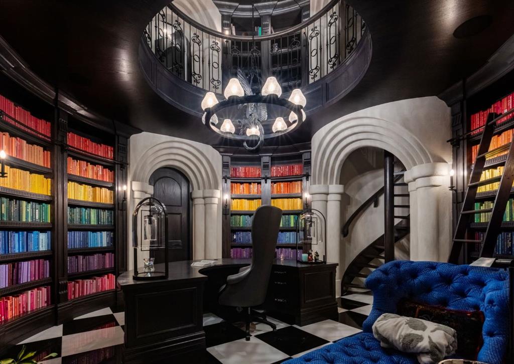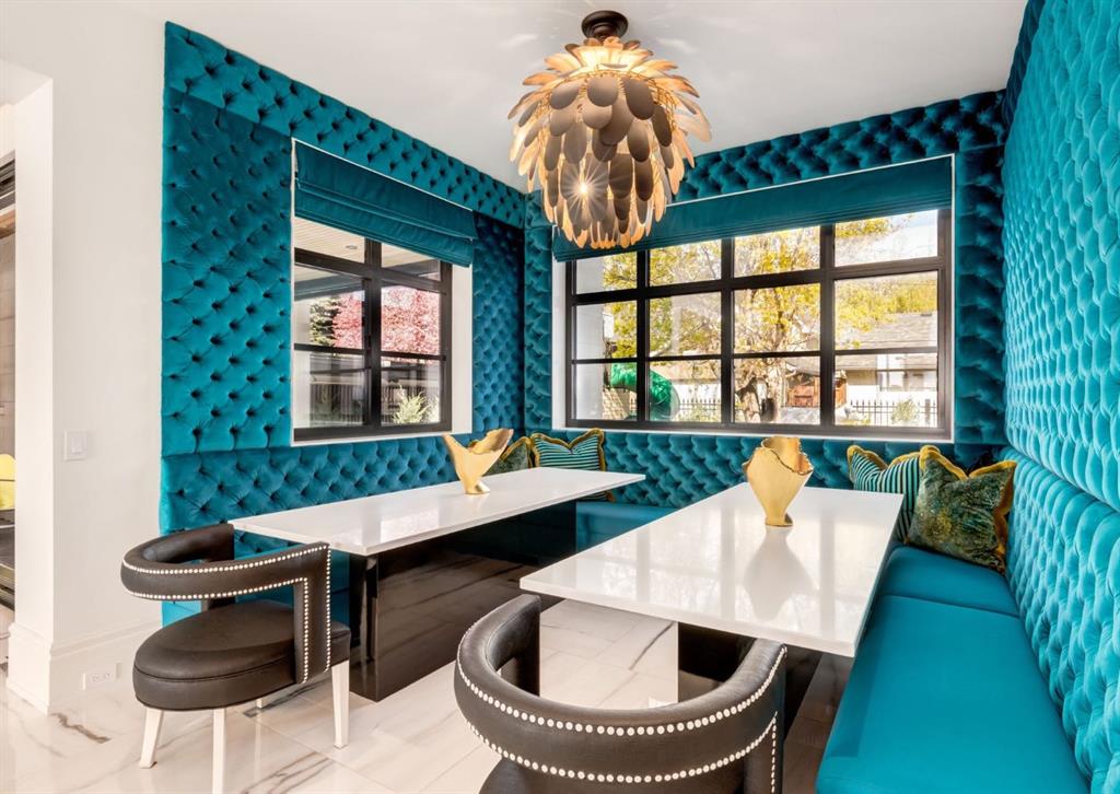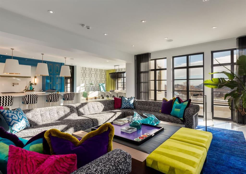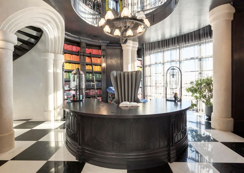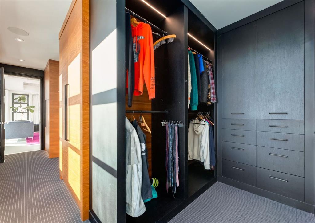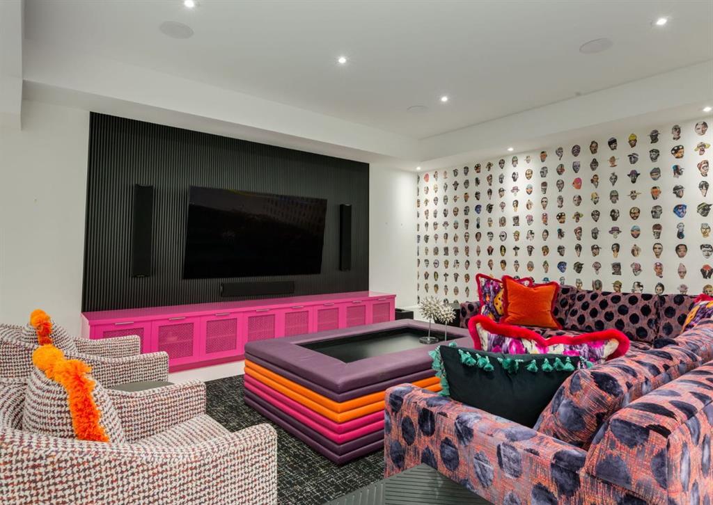Stunning legacy estate situated on 100 feet of frontage on Calgary’s most coveted street—Crescent Road—offering unparalleled views of the downtown skyline and river valley. This architectural masterpiece boasts over 11,400 sq ft of living space, crafted by boutique luxury builder Maillot Homes in collaboration with Paul Lavoie Interior Design, who drew inspiration from Alice in Wonderland to create a whimsical yet refined family retreat. Built as a forever home and completed in 2022, no expense was spared. The exterior is clad in full-bed Turkish limestone, and the home features high-velocity heating and cooling, an elevator, a roof-mounted solar array, and premium designer finishes throughout. The chef’s kitchen is equipped with a Sub-Zero/Wolf appliance package, steam oven, warming drawers, heated floors, custom millwork with liquid metal finishes, a pot filler, and a fully outfitted butler’s pantry. A highlight of the home is the two-storey library, inspired by Dumbledore’s office in the Harry Potter series—complete with thousands of books, cozy reading nooks, and sweeping city views. The primary retreat features dual private ensuites and walk-in closets, with spa-level features including a steam shower, soaker tub, towel warming drawer, heated floors, custom cabinetry, electronic window coverings, and even a rotating shoe carousel. Additionally, the upper level includes three spacious bedrooms, each with walk-in closets and private ensuites, plus a large laundry room with discreet access from the primary suite. The top floor showcases an elegant lounge with a full bar, wine tasting room, covered patio with gas fireplace, and a designer powder room. Silver-leaf ceilings & a solvable floor maze add to this glamorous space. The lower level mimics a private sports club with an impressive custom gym with soaring ceilings (over 11 feet), nanny quarters, guest suite, recreational room with surround sound, extra laundry, secondary mud room, and ample storage. Outdoors, enjoy the expansive backyard with a retractable-screen patio, gas heaters, fireplace, outdoor dining area, pizza oven, and playhouse. Car enthusiasts will appreciate two heated, attached garages with epoxy floors, custom cabinetry, and a heated front driveway. Ideal for families and grand-scale entertaining, properties of this caliber on the Ridge are extremely rare, this one-of-a-kind estate is a must see.