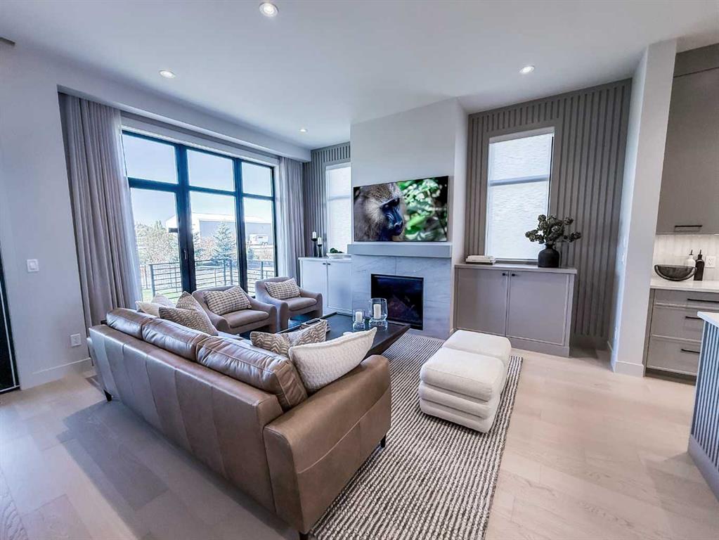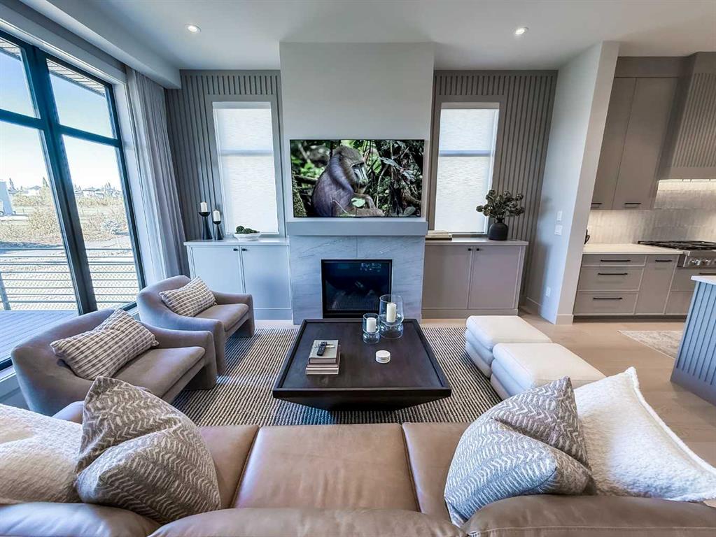 Nestled in the heart of Serenity at Heritage Pointe, this luxurious 3 bedroom, 2.5 bath townhome with the Sydney floorplan has been carefully crafted by RareBuilt Homes & offers over 3200 sq ft of exceptional living space. The open concept main floor impresses with engineered wide plank hardwood, custom tile detailing, 10’ ceilings, and a spacious great room with large sliding doors that open to a covered rear deck and private fenced yard. The chef inspired kitchen is equipped with a full KitchenAid appliance package, including a six burner gas cooktop, custom hood fan, refrigerator/freezer, dishwasher, and built in oven with convection microwave. A generous island, ample storage, and thoughtful layout make this kitchen ideal for both everyday living and entertaining. A stylish home office with beam detailing adds both character and functionality. The primary suite provides a serene retreat, complete with a spa inspired 5 piece ensuite featuring heated floors, a freestanding soaker tub, an oversized shower, and a custom walk in closet. The fully finished basement extends the living space with a large recreation room, two additional bedrooms, a full bath, and a roughed-in theatre room that can be modified to wherever your imagination takes you. Additional highlights include a 3 stop elevator, tilt and turn triple glazed windows, 6 standard solar panels, a high efficiency furnace, heat pump, air conditioning, and radiant in floor heating—ensuring year round comfort and energy efficiency. Parking is effortless with a fully finished and painted oversized double attached garage complete with epoxy flooring, aggregate driveway and EV charger readiness. Enjoy the freedom of full landscape maintenance and snow removal plus close proximity to Heritage Pointe Golf Club, LaunchPad Golf at Heritage Pointe & easy access to Calgary or Okotoks via highway 2 or 2A.
