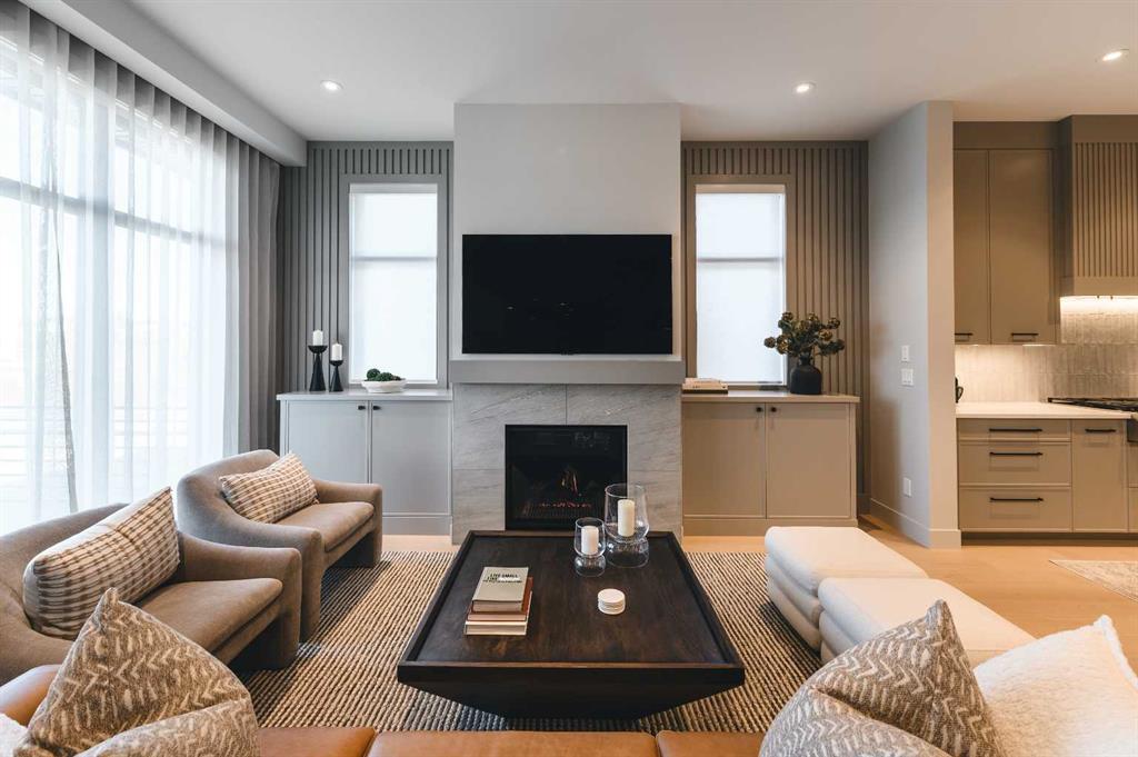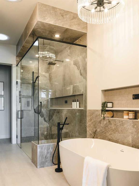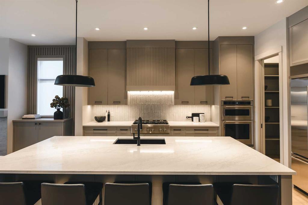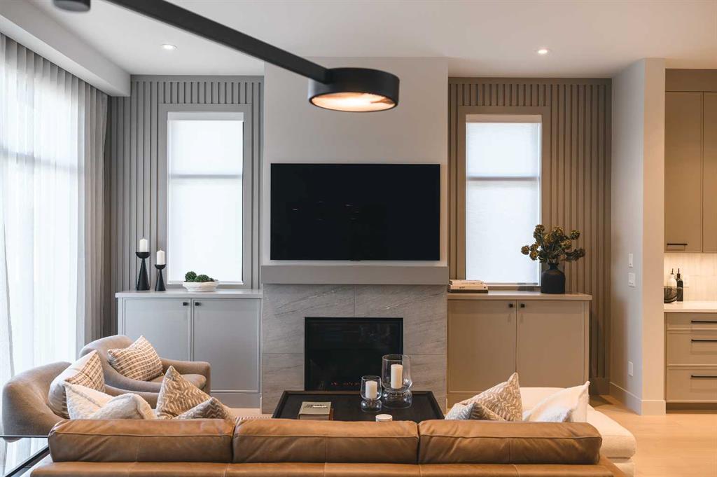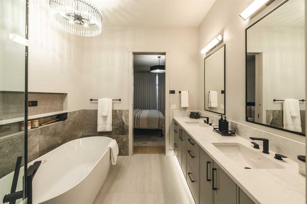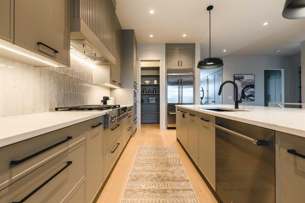 Experience over 3,200 sq. ft. of luxury living in this executive villa featuring 3 bedrooms, 2.5 bathrooms, a 3-stop elevator, golf simulator room, and an oversized double garage. The open-concept main floor showcases engineered wide-plank hardwood, custom tile, 10’ ceilings, and a spacious great room with large sliding doors leading to a covered rear deck and private fenced yard. The chef-inspired kitchen boasts all KitchenAid appliances, including a six-burner gas cooktop, custom hood fan, refrigerator/freezer, dishwasher, and built-in oven with convection microwave. A home office with beam detailing adds style and functionality. The primary suite offers a spa-inspired 5-piece ensuite with heated floors, freestanding soaker tub, oversized shower, and a custom walk-in closet. The fully finished basement features a large rec room, two bedrooms, full bath, and a dedicated golf simulator space. Additional highlights include Tilt and turn triple glazed windows Solar panels as a standard, EV charger ready, a high-efficiency furnace, heat pump, air conditioning, and radiant in-floor heating. Discover refined living at 733 Serenity Bend—schedule your private showing today!