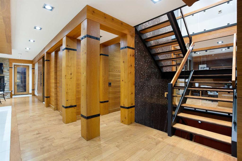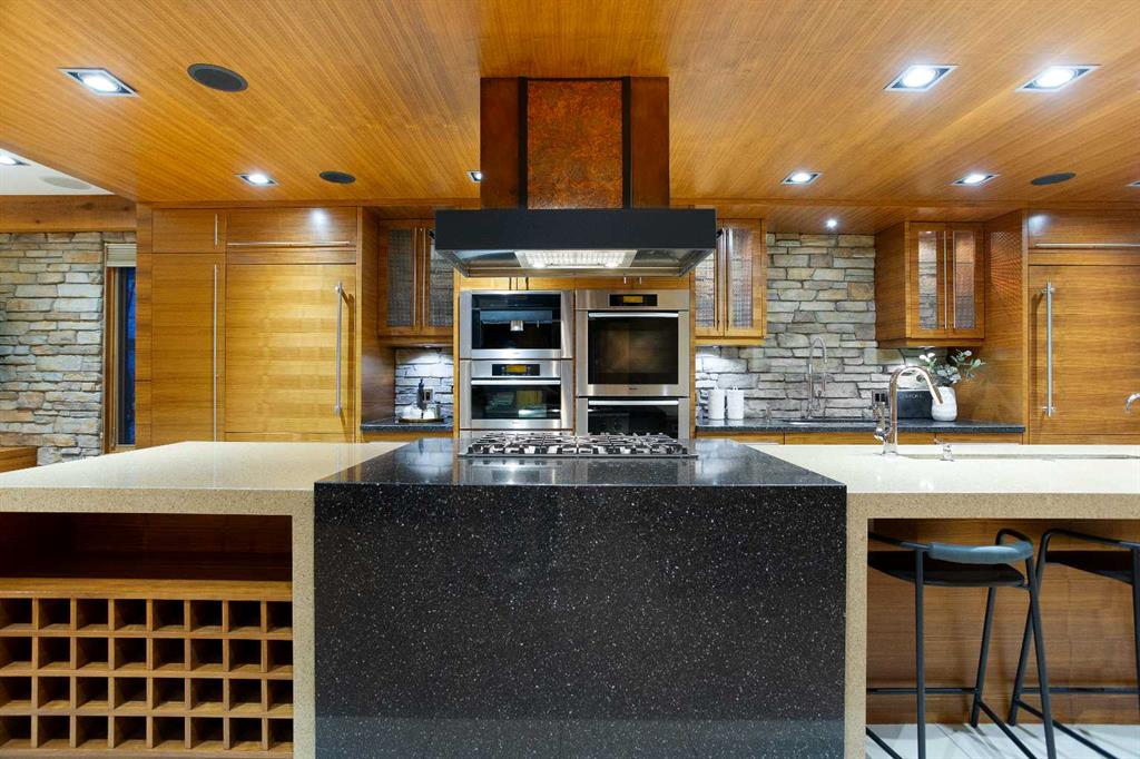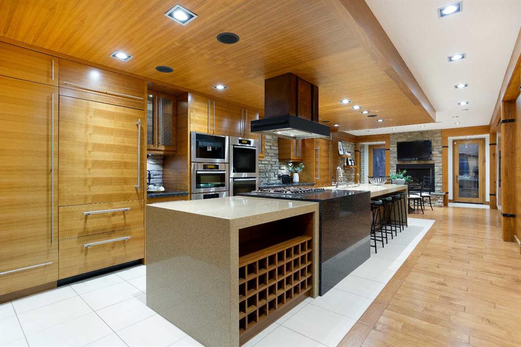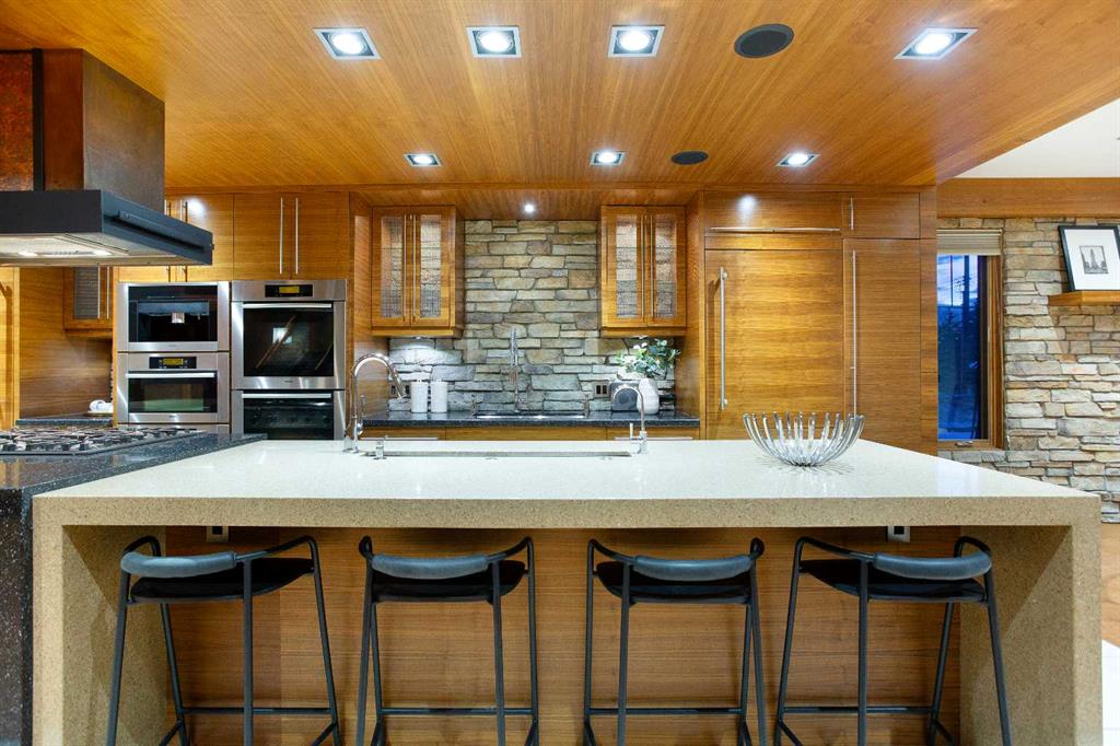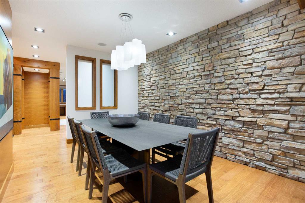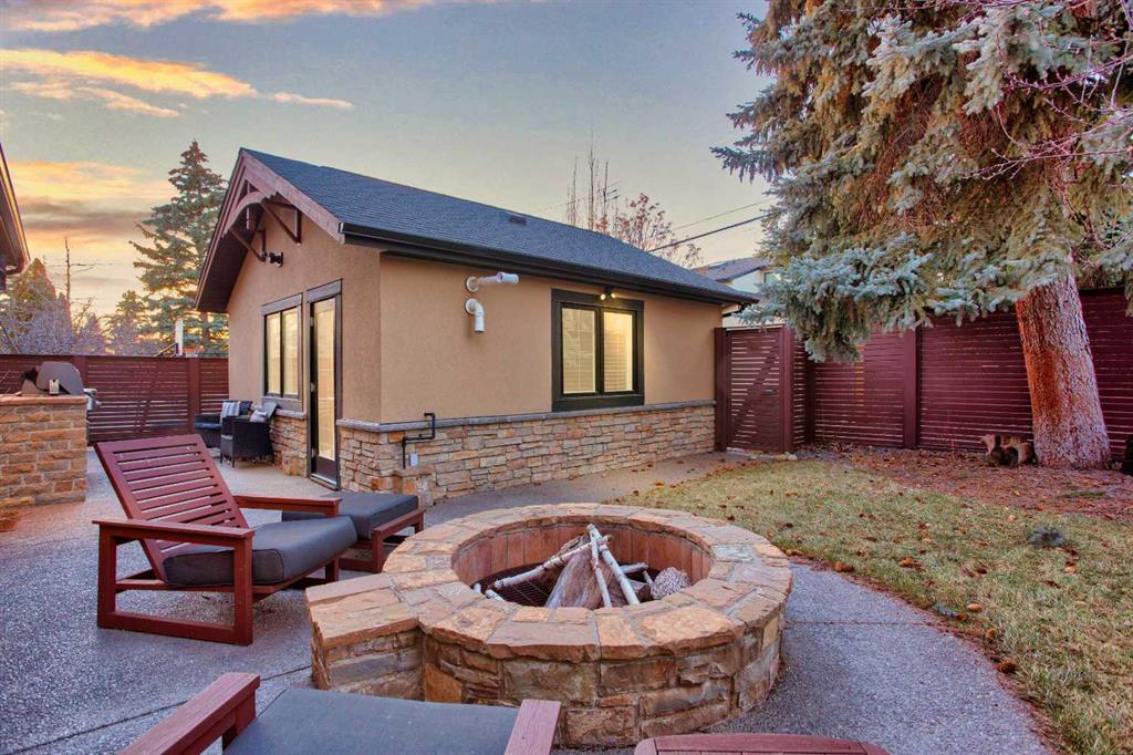 The exterior showcases classic stone and wood accents, an inviting front porch, and a private, treed backyard oasis with a fire pit, perfect for gatherings. A rare opportunity to own a truly distinguished residence in one of Calgary’s most sought after locations, offering exceptional views, craftsmanship, and enduring appeal.