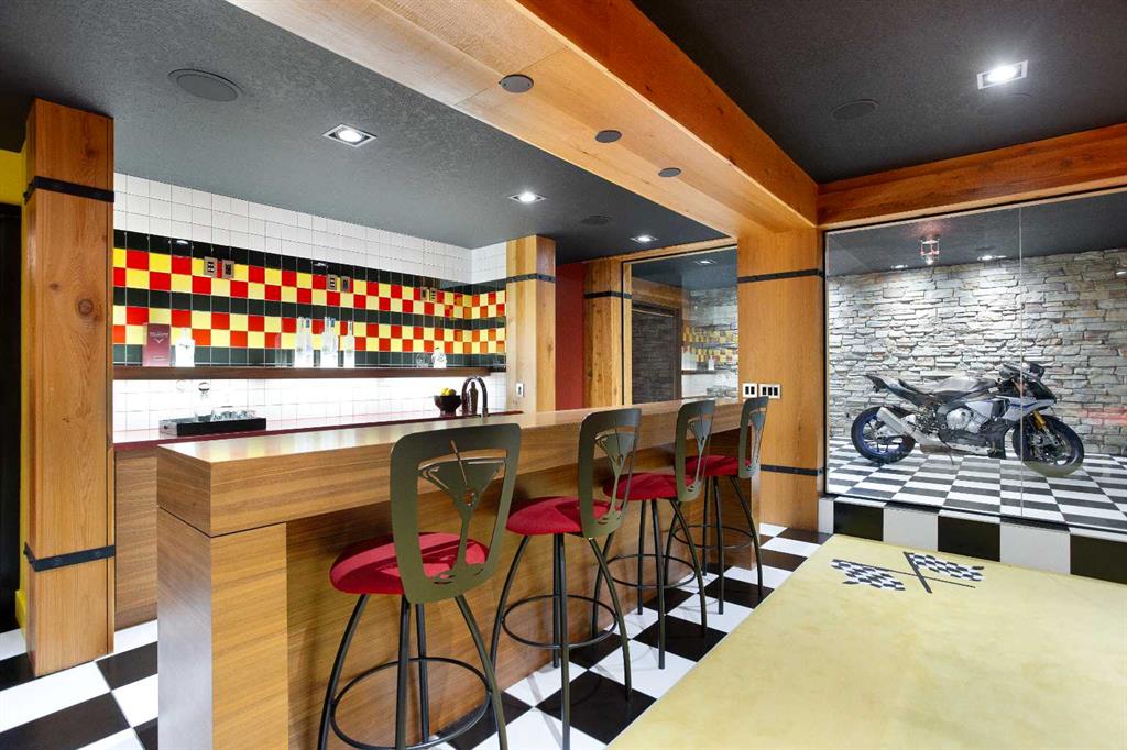 Designed with both entertaining and automotive enthusiasts in mind, the lower level features a striking showroom style garage that may also be ideal as a home gym or flex space. This level is completed by a recreation room, games area, wet bar, full bathroom, and a dedicated wine room.