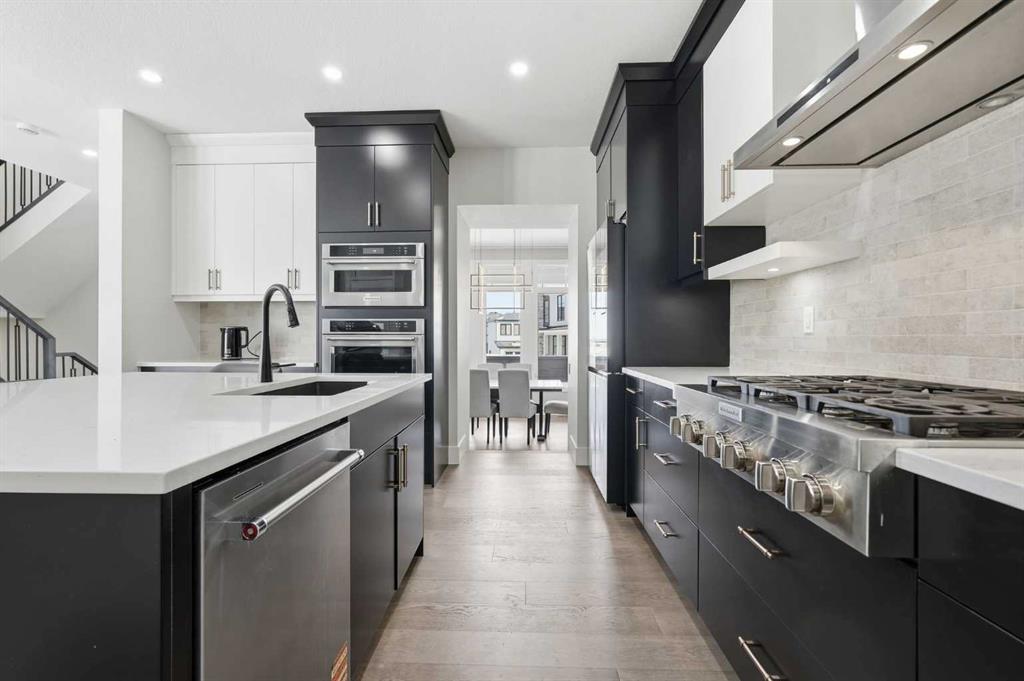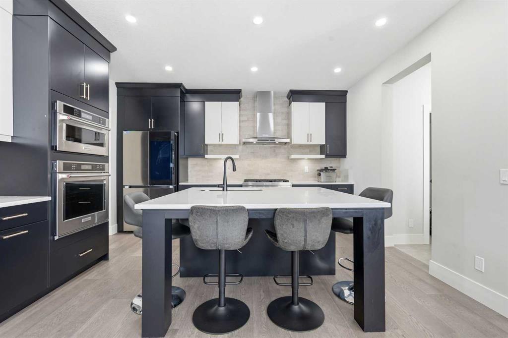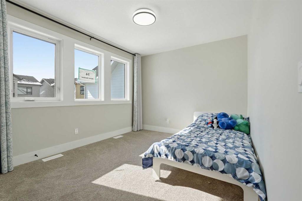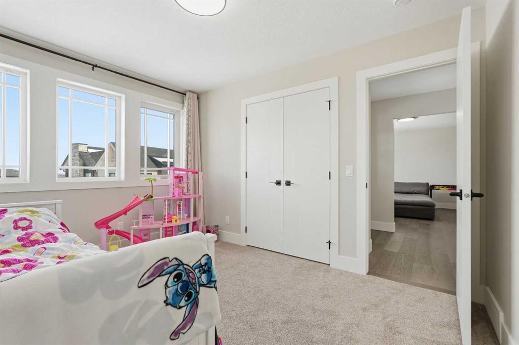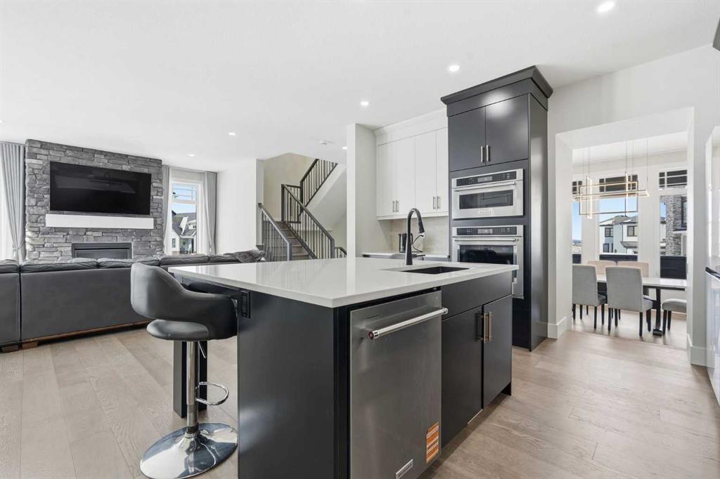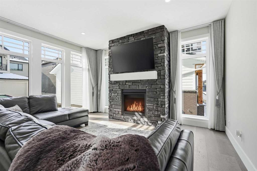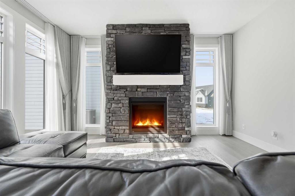 Discover your dream home in this 2025 build Foursquare style design, blending timeless character with a practical layout, thoughtful details, and PARK-FRONT Living! Located in one of Calgary's newest community, Alpine Park, this home features a symmetrical design, spacious rooms and a welcoming covered front porch, making it a perfect spot to relax while watching the kids play in the front park. With over 3,500 sf of finished space, this layout is both functional and beautiful. The exterior is finished with HARDIE BOARD siding and brick, while inside, warm hardwood floors, and elevated ceilings bring comfort and style together. The kitchen is fitted with quartz counters, a spacious potential walk-through pantry, stainless steel appliances including a GAS RANGE & built in oven, it flows seamlessly into the living room featuring expansive windows allowing the space to fill with natural light, highlighted by a stunning brick wall and gas fireplace. The semi-formal dining room with 10' ceilings makes for a more intimate overall dining experience with family/friends. Rounding out the main floor is the stunning office/flex room with four large windows with great views of the park. Upstairs offers three generously sized bedrooms, and a bonus room - for gathering or retreat. The primary suite is a standout, complete with a freestanding tub, large tile shower, double vanities. It also features an impressive walk-in closet, and a thoughtful layout that adds everyday ease and flow. The fully finished basement expands the living space with two additional spacious bedrooms, 4pc bathroom, and a rec/media room. Additional highlights include a side covered porch w/ bbq gas line, REAR ATTACHED DOUBLE GARAGE, and the Alberta New Home Warranty. Plus easy access to the mountains, via Stoney trail, and just minutes from Costco, shopping, parks, schools, dining, and scenic walking paths!