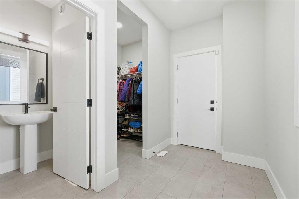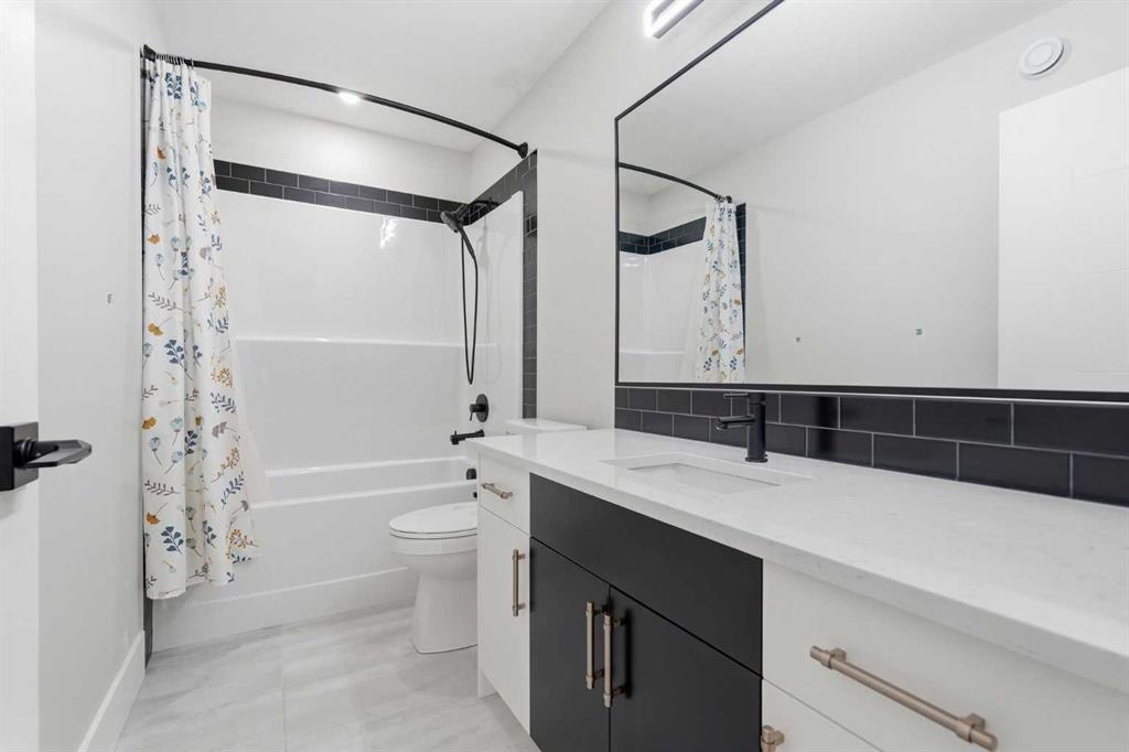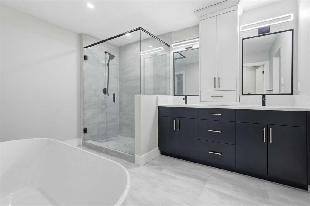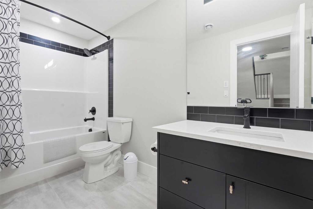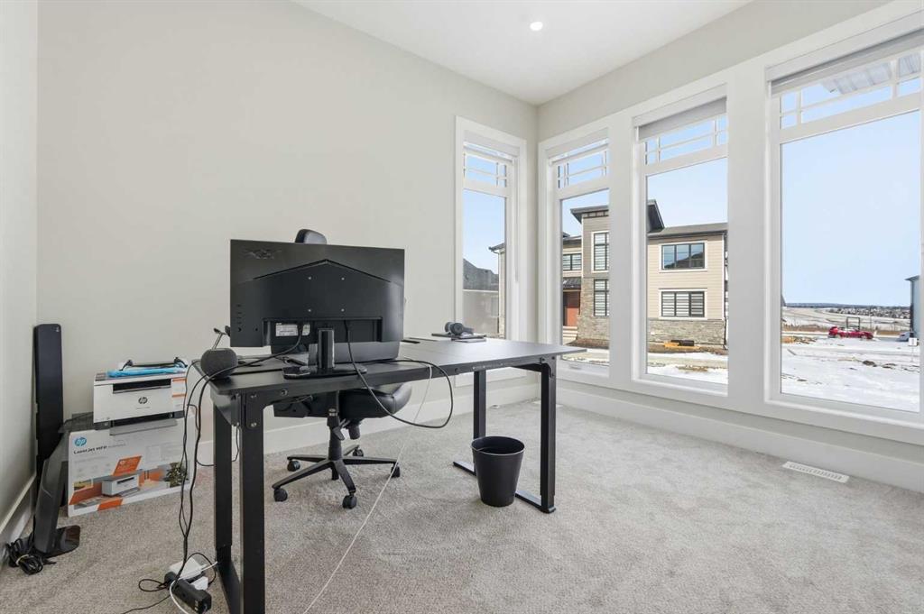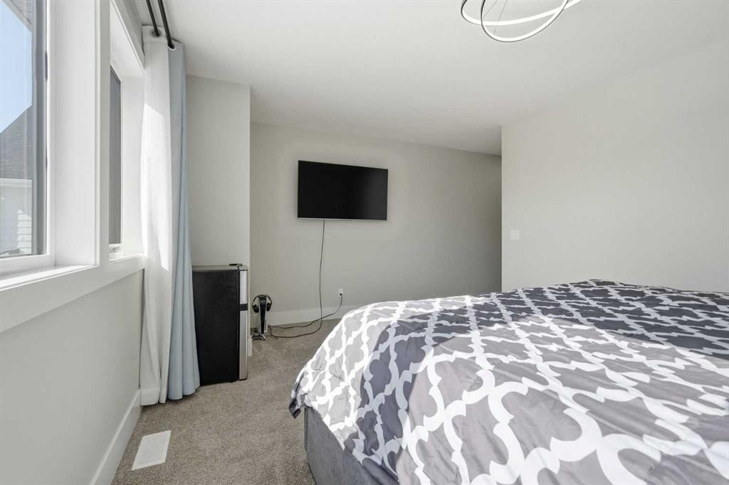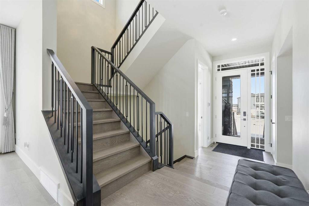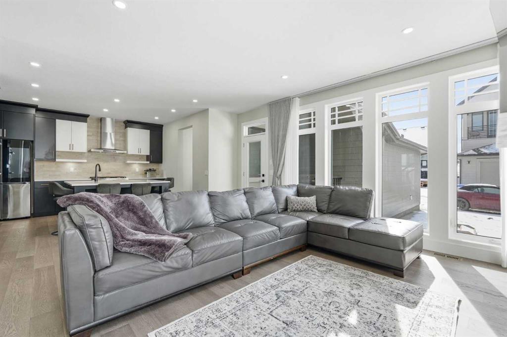 Discover your dream home in this 2025 build Foursquare style design, blending timeless character with a practical layout, thoughtful details, and PARK-FRONT Living! Located in one of Calgary's newest community, Alpine Park, this home features a symmetrical design, spacious rooms and a welcoming covered front porch, making it a perfect spot to relax while watching the kids play in the front park. With over 3,500 sf of finished space, this layout is both functional and beautiful. The exterior is finished with HARDIE BOARD siding and brick, while inside, warm hardwood floors, and elevated ceilings bring comfort and style together. The kitchen is fitted with quartz counters, a spacious potential walk-through pantry, stainless steel appliances including a GAS RANGE & built in oven, it flows seamlessly into the living room featuring expansive windows allowing the space to fill with natural light, highlighted by a stunning brick wall and gas fireplace. The semi-formal dining room with 10' ceilings makes for a more intimate overall dining experience with family/friends. Rounding out the main floor is the stunning office/flex room with four large windows with great views of the park. Upstairs offers three generously sized bedrooms, and a bonus room - for gathering or retreat. The primary suite is a standout, complete with a freestanding tub, large tile shower, double vanities. It also features an impressive walk-in closet, and a thoughtful layout that adds everyday ease and flow. The fully finished basement expands the living space with two additional spacious bedrooms, 4pc bathroom, and a rec/media room. Additional highlights include a side covered porch w/ bbq gas line, REAR ATTACHED DOUBLE GARAGE, and the Alberta New Home Warranty. Plus easy access to the mountains, via Stoney trail, and just minutes from Costco, shopping, parks, schools, dining, and scenic walking paths!