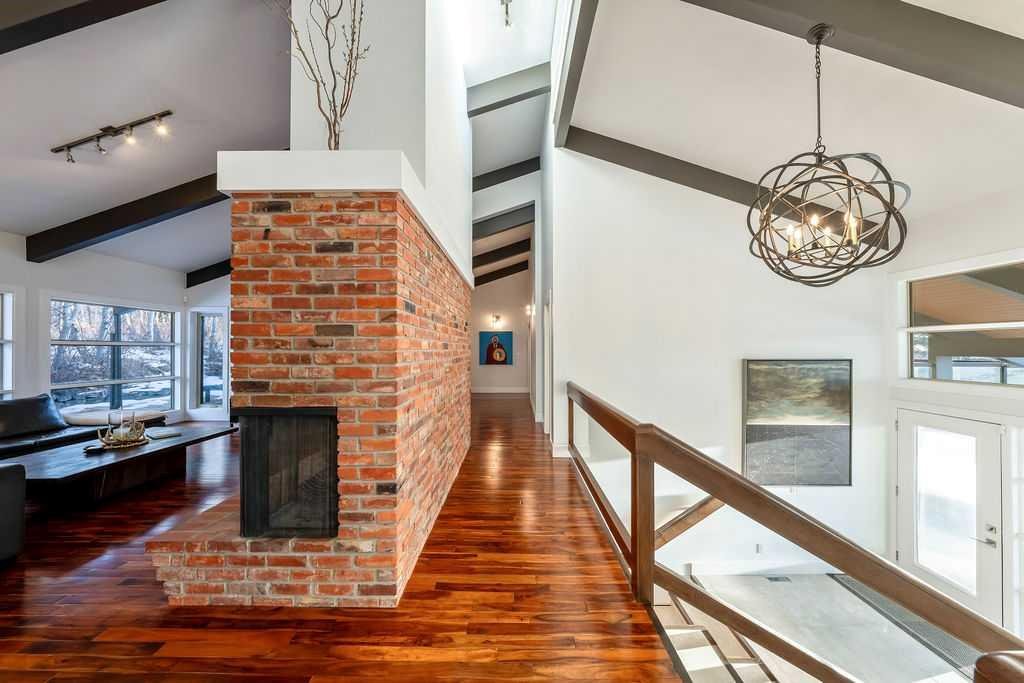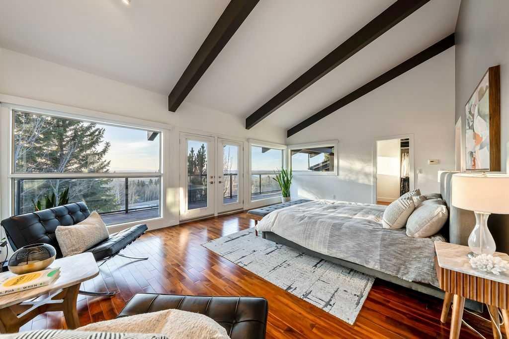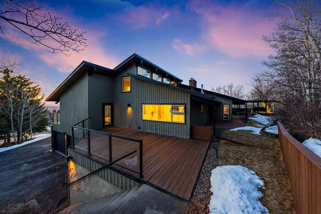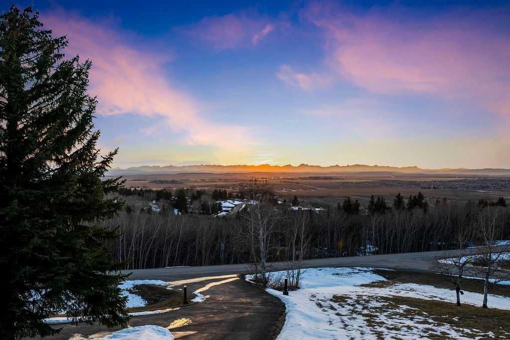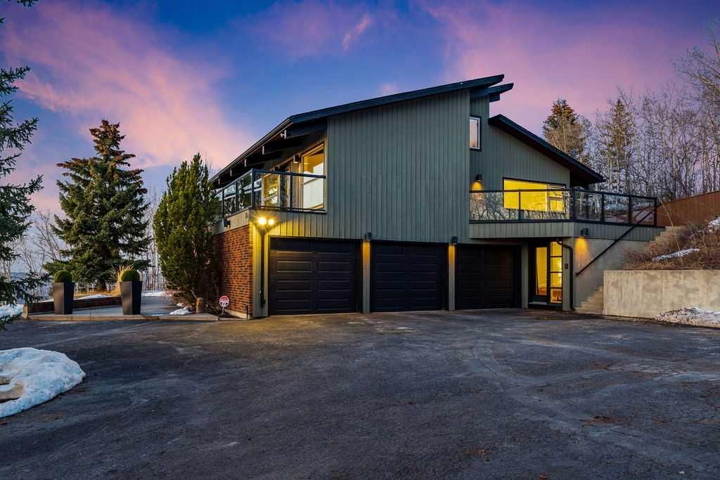 Perched on one of the most picturesque view lots in the area, this remarkable 5,497 total sq ft walkout bungalow home offers a rare opportunity to enjoy country privacy just minutes to Calgary and only 20 minutes to downtown. With quick access to shopping, restaurants & Stoney Trail, you can enjoy modern convenience without compromising the peace & charm of rural living. Built in an era when craftsmanship mattered and thoughtfully renovated over the years, this home beautifully blends timeless character with carefully selected modern updates. Follow the paved driveway to the heated triple car garage & appreciate the abundance of parking. Step inside and take a moment to absorb what surrounds you. From the new tile in the entrance & kitchen to the carefully curated finishes throughout, every detail has been considered. As you make your way to the main level, the views immediately take centre stage. The living room invites you to sit & stay awhile, offering breathtaking Rocky Mountain views, sweeping river valley vistas & unforgettable sunsets. The kitchen is positioned perfectly as the heart of the home, with views in every direction. Featuring Bosch appliances including a gas cooktop and warming drawer, it is a space designed for both everyday living & entertaining. The generous dining area ensures there is plenty of space for good food & good conversation. The family room is anchored by a striking wood burning fireplace that extends from the basement to the ceiling, creating warmth & presence throughout the home. A versatile bedroom on this level is ideal for a child’s room or a private home office. The main floor also offers a beautifully designed laundry room and a well appointed three piece bathroom for guests. The primary suite is exactly what you would hope for. Wake up to incredible views each morning and unwind in a space designed for comfort. The large walk-in closet offers ample storage, while the ensuite features a deep soaker tub, double sinks & a spacious jetted shower. Notice the adorable ladder? Peek into the loft and let your imagination run wild, ideal for study, meditation, or a quiet retreat. The lower level continues to impress. A bright front flex room sits at grade level, adding to the functional living space. Three additional large bedrooms share two full bathrooms, while a generous games room and gym provide flexibility for growing families. With three brand new furnaces, shingles replaced in 2025 & two newer hot water tanks, and many other upgrades, this home is truly move in ready. Outdoor living spaces surround the home with endless possibilities, whether you envision a garden, a hockey rink or a place for a friendly family game of football. The school bus picks up at the end of the driveway, taking kids to be best public and private schools Calgary has to offer. A property like this is rarely offered, combining unforgettable views, thoughtful updates & an unbeatable location close to the city yet a world away.