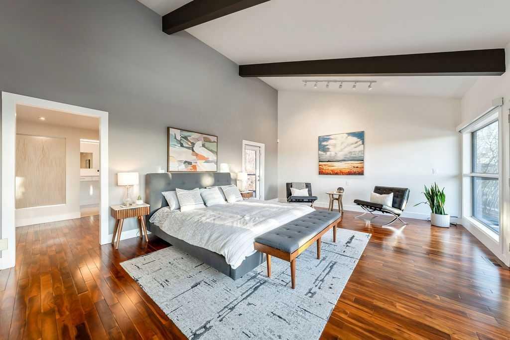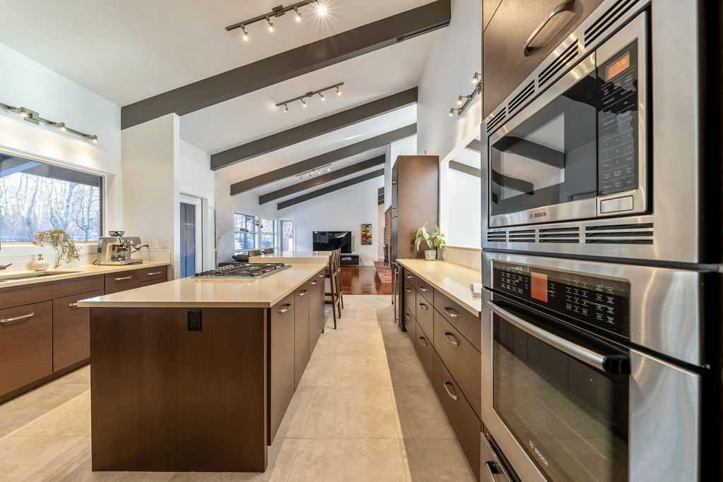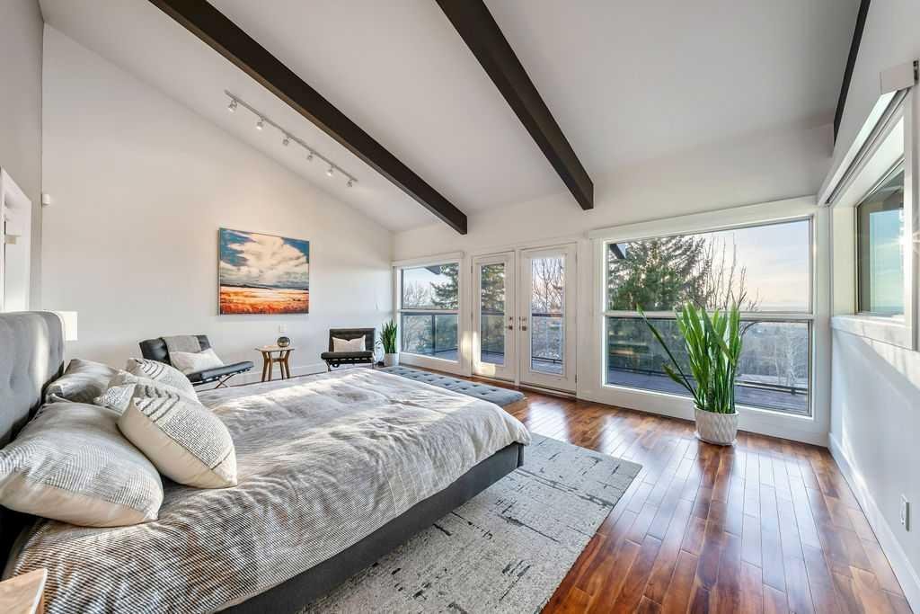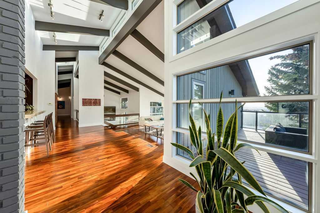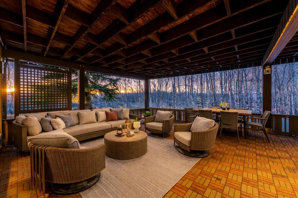 Perched on one of the most picturesque view lots in the area, this remarkable 5,497 total sq ft walkout bungalow home offers a rare opportunity to enjoy country privacy just minutes to Calgary and only 20 minutes to downtown. With quick access to shopping, restaurants & Stoney Trail, you can enjoy modern convenience without compromising the peace & charm of rural living. Built in an era when craftsmanship mattered and thoughtfully renovated over the years, this home beautifully blends timeless character with carefully selected modern updates. Follow the paved driveway to the heated triple car garage & appreciate the abundance of parking. Step inside and take a moment to absorb what surrounds you. From the new tile in the entrance & kitchen to the carefully curated finishes throughout, every detail has been considered. As you make your way to the main level, the views immediately take centre stage. The living room invites you to sit & stay awhile, offering breathtaking Rocky Mountain views, sweeping river valley vistas & unforgettable sunsets. The kitchen is positioned perfectly as the heart of the home, with views in every direction. Featuring Bosch appliances including a gas cooktop and warming drawer, it is a space designed for both everyday living & entertaining. The generous dining area ensures there is plenty of space for good food & good conversation. The family room is anchored by a striking wood burning fireplace that extends from the basement to the ceiling, creating warmth & presence throughout the home. A versatile bedroom on this level is ideal for a child’s room or a private home office. The main floor also offers a beautifully designed laundry room and a well appointed three piece bathroom for guests. The primary suite is exactly what you would hope for. Wake up to incredible views each morning and unwind in a space designed for comfort. The large walk-in closet offers ample storage, while the ensuite features a deep soaker tub, double sinks & a spacious jetted shower. Notice the adorable ladder? Peek into the loft and let your imagination run wild, ideal for study, meditation, or a quiet retreat. The lower level continues to impress. A bright front flex room sits at grade level, adding to the functional living space. Three additional large bedrooms share two full bathrooms, while a generous games room and gym provide flexibility for growing families. With three brand new furnaces, shingles replaced in 2025 & two newer hot water tanks, and many other upgrades, this home is truly move in ready. Outdoor living spaces surround the home with endless possibilities, whether you envision a garden, a hockey rink or a place for a friendly family game of football. The school bus picks up at the end of the driveway, taking kids to be best public and private schools Calgary has to offer. A property like this is rarely offered, combining unforgettable views, thoughtful updates & an unbeatable location close to the city yet a world away.