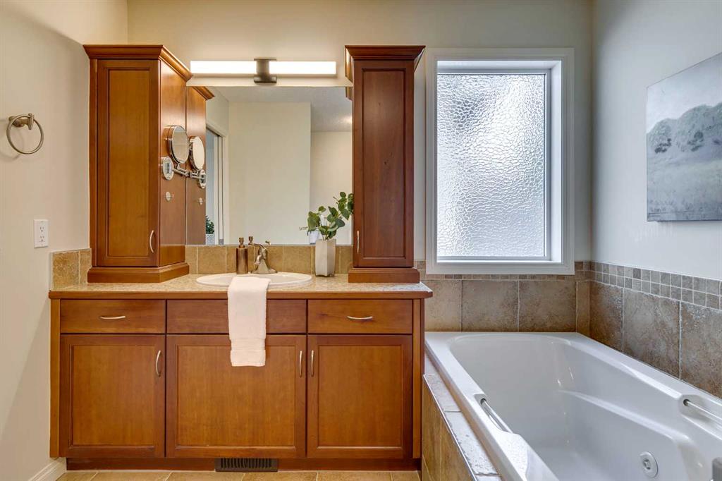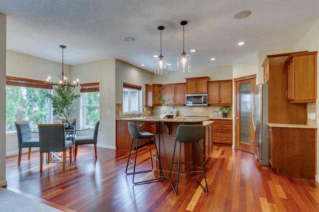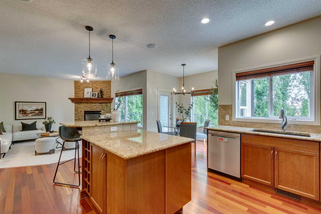 A WALKOUT basement with TRIPLE GARAGE, on one of Cranston's most prestigious streets! A lifestyle of quiet, classic sophistication and breathtaking vistas. This extensively updated 5-bedroom, 4-bathroom home boasts over 3,500 square feet of developed space and is perfectly positioned on a “local traffic only” crescent, with peek-a-boo MOUNTAIN VIEWS and access to RIDGE PATHWAYS overlooking the Bow River valley. Brand new CARPETS and PAINT. New (2024) FURNACE, HOT WATER TANK, and A/C ensure year-round comfort and peace of mind. The HEATED triple garage with sink, is a hobbyist’s dream and boasts brand NEW EPOXY FLOORS and 220v power for a workshop. Inside and out, this home is defined by quality and thoughtful details. 9' ceilings, timeless Brazilian cherry floors, fireplaces on two levels and a chef's kitchen with a gas range and a large granite island. Heated bathroom floors. Walkout basement offers incredible potential for a multi-generational family or deluxe guest accommodation, with a layout that is perfect for the addition of a kitchen space (any suite would require city approval to be “legal”). Large Bonus Room provides the perfect space for family time while you watch the sun set over the mountains, and the mainfloor offers a very private office space to be able to focus. Your tranquil, maturely landscaped yard is a true entertainer's oasis, complete with an irrigation system, three natural gas connections (deck, patio and firepit), as well as pre-wiring for a hot tub. This is the one that truly has it all and needs nothing but a new family to fill it with joy and new memories.