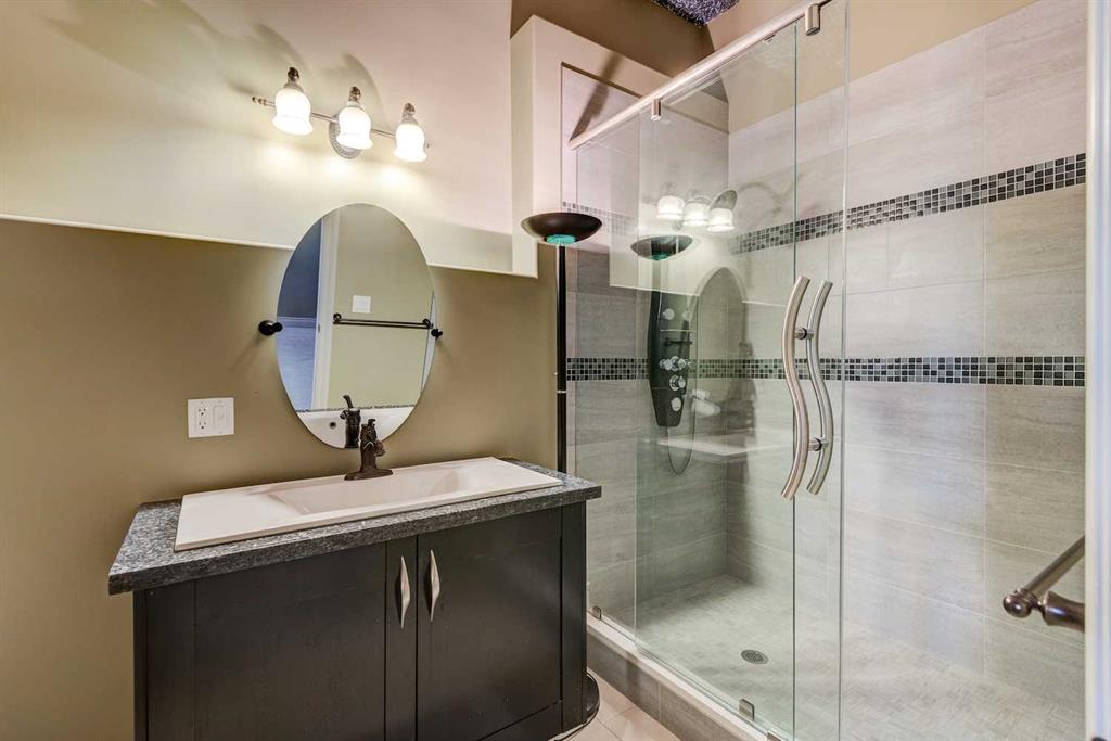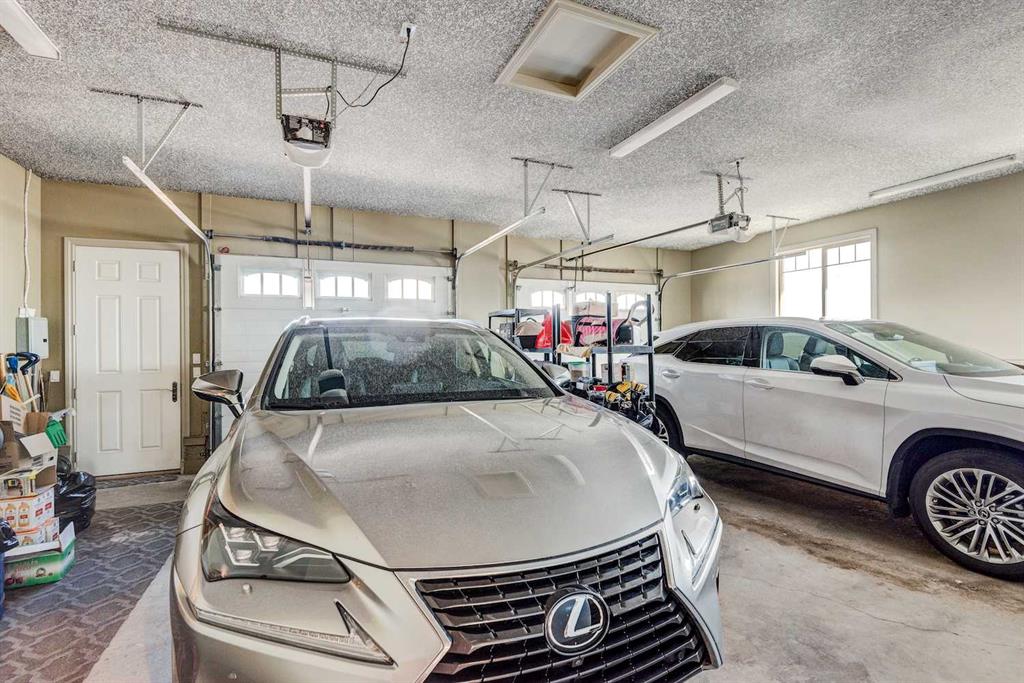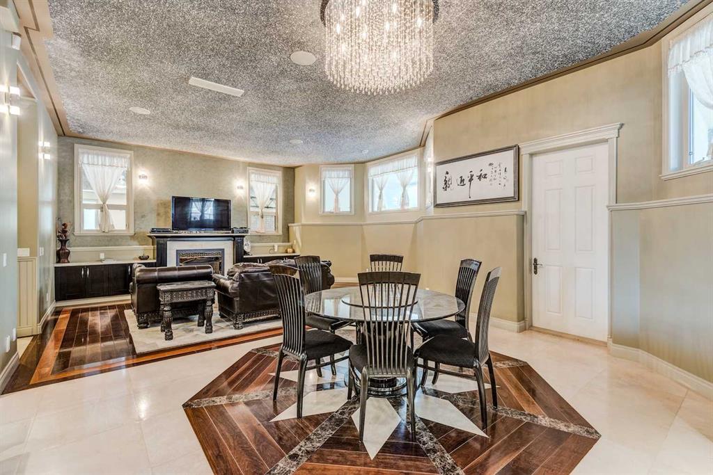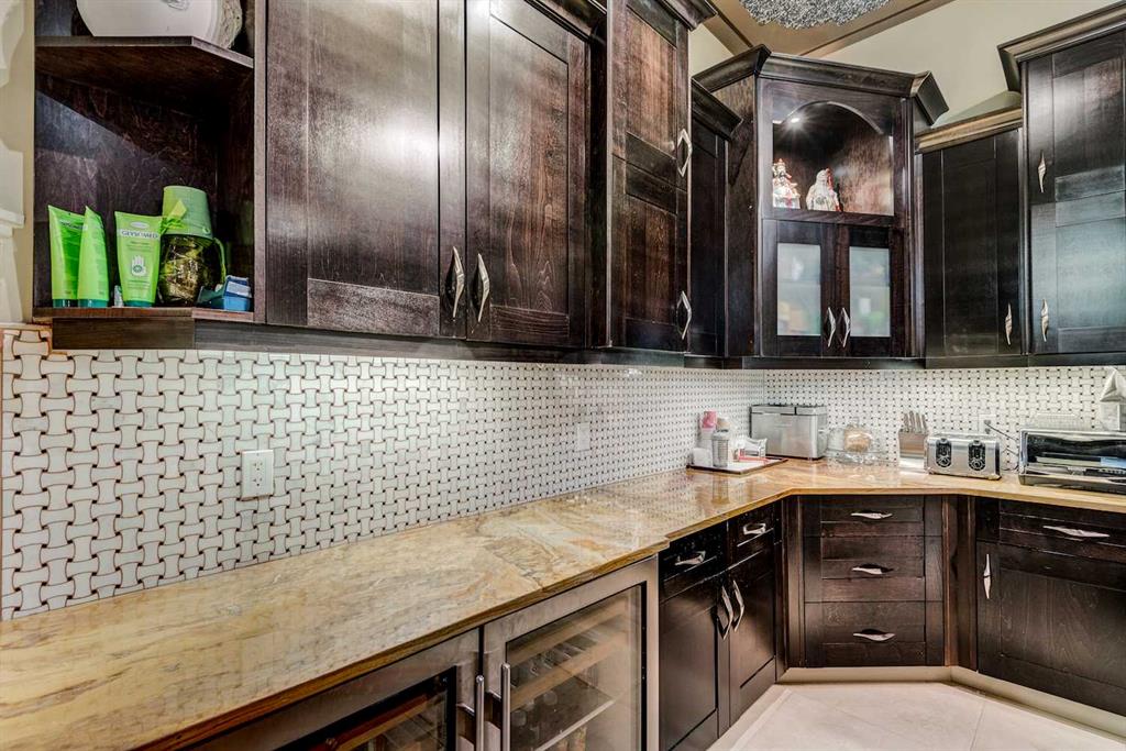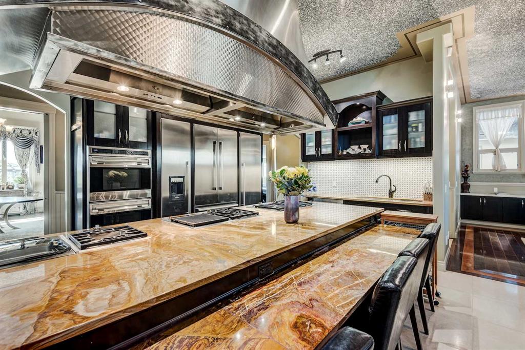 Outside, a multi-level deck and terrace provide covered and open spaces for outdoor entertainment, all while offering panoramic views of the rolling Calgary hills. The private backyard is enveloped by lush landscaping and towering trees. With a 5-car insulated oversized garage and ample paved parking for guests, convenience is never compromised.