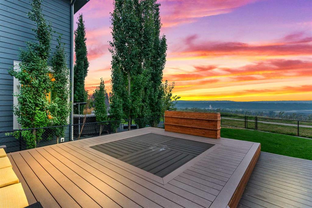 With a west-facing backyard overlooking the Bow River and the Rocky Mountains, you’ll enjoy breathtaking sunsets year-round. The expansive outdoor living space is a true entertainer’s dream, featuring a large deck and a built-in outdoor kitchen, perfect for gatherings with family and friends.