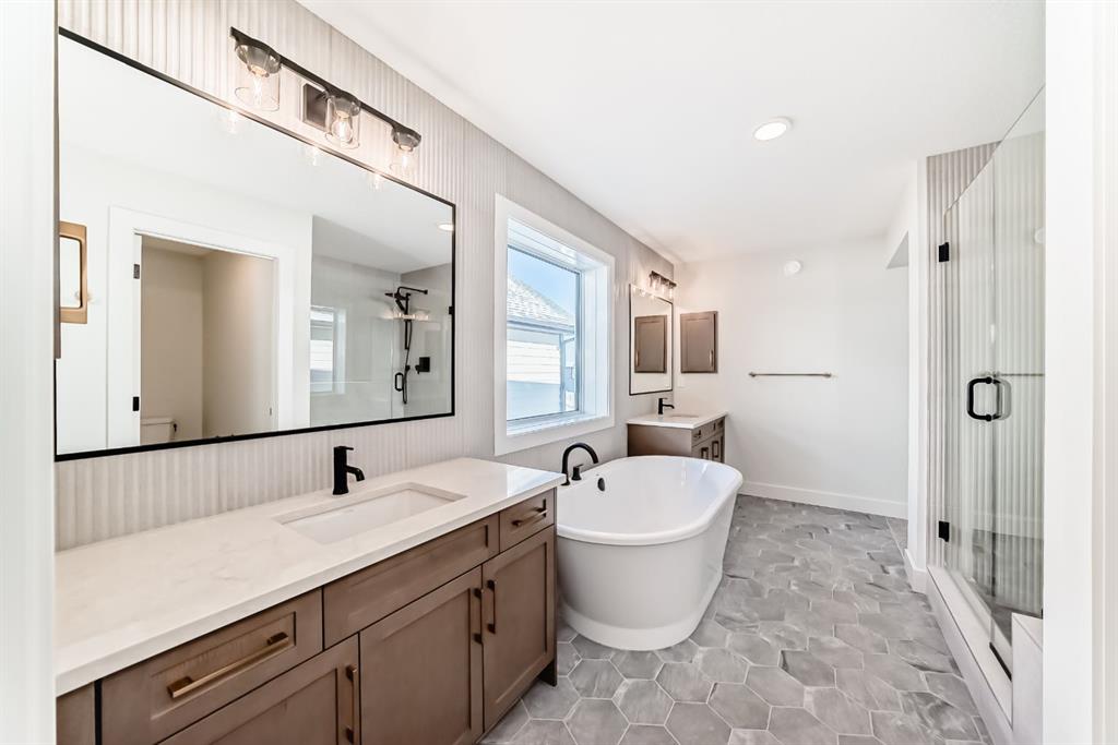 Introducing ECO-PATH by Morrison Homes, your trusted custom home builder is at the forefront of eco-friendly NET ZERO home construction. This ESTATE home is built with high performance insulation, energy efficient windows and advanced HVAC systems to minimize energy consumption. Solar panels and Energy Star appliances further reduce the carbon footprint, while low flow fixtures conserve water. Morrison Homes also prioritizes the use of sustainable, non-toxic building materials, such as recycled wood and low VOC paints, ensuring a healthier indoor environment. Incorporating Smart Home Technology, this home optimizes energy use, providing both comfort and environmental stewardship. * Efficient Electric Heat Pump for Heating & Cooling * 36 Solar Panels to Generate Electricity * R60 Attic Insulation to Reduce Energy Loss * Air Barrier to Improve Homes Energy Retention * Triple Pane Argon Filled Windows with Sunstop Coating * 80 Gallon Heat Pump Hot Water Tank * Heat Recovery Ventilator to Minimize Heat Loss * XPS Rigid Insulation Beneath Basement Foundation * Enjoy the award winning Ellsworth model featuring over 2700 square feet of perfectly planned living space. Enter the home to a sun filled, main floor den which is open to a gorgeous living space with floor to ceiling windows and a soaring 18' open to above. More natural light to be enjoyed with 3 panel sliding door to the South backyard and deck. The kitchen is a warm and inviting space with crafted cabinets, waterfall stone counter on the island and rich Champagne Bronze hardware. Flow through to the servery/beverage centre to the spacious pantry. The large mudroom with closet is a space where everyone can easily walk in from the Triple attached garage. Upstairs features beautiful open loft to soak up all the natural sunlight, a large laundry room with storage cabinets and 2 folding counters, 2 great sized bedrooms...one with a vaulted ceiling and one with a walk in closet. The primary bedroom is perfectly sized and comes fitted with a custom tiled shower, stand alone tub, 2 separate vanities and a sizeable walk in closet. The basement is a blank slate for future development. Live in and create your Legacy! Built on a premium lot, walk to the Pine Creek Ridge, minutes away from shopping, schools, parks and playgrounds - this community has it all.