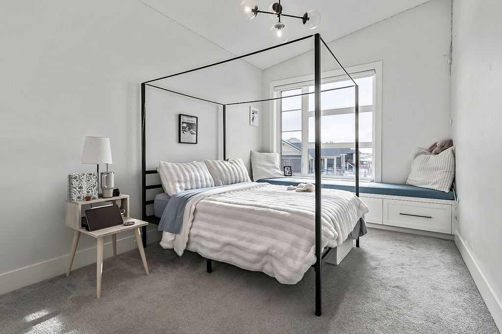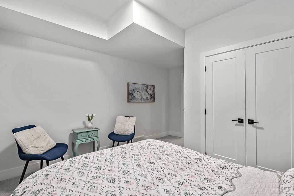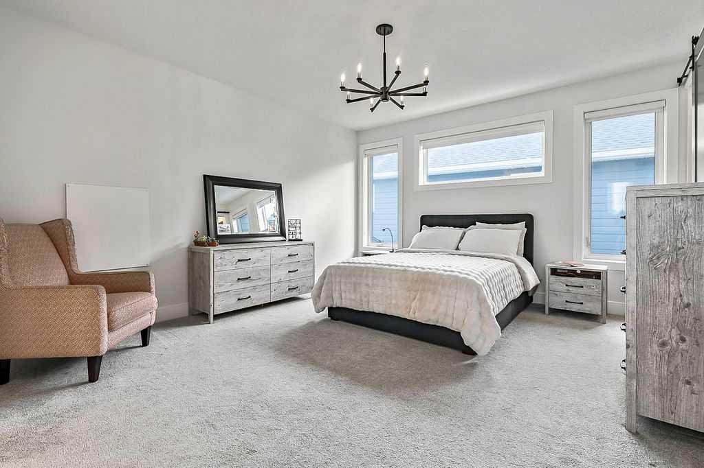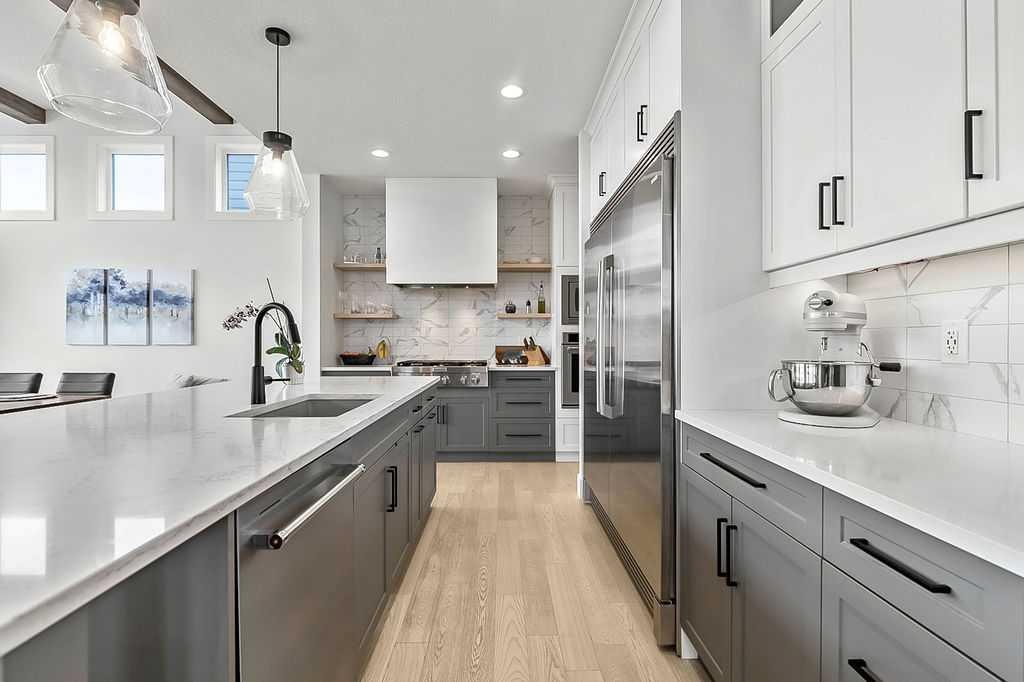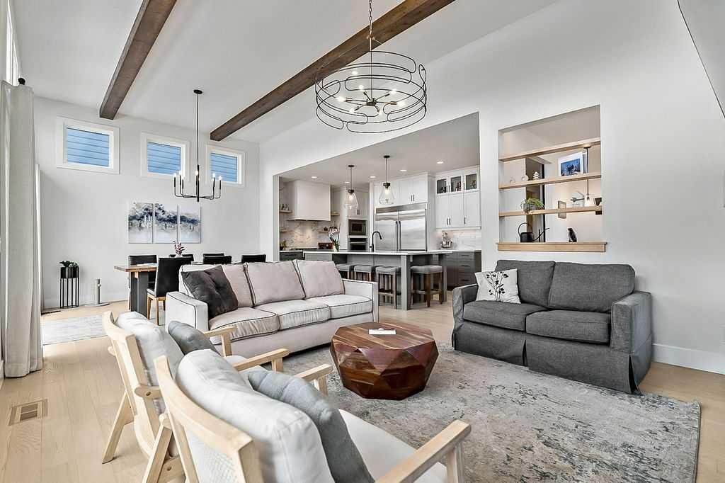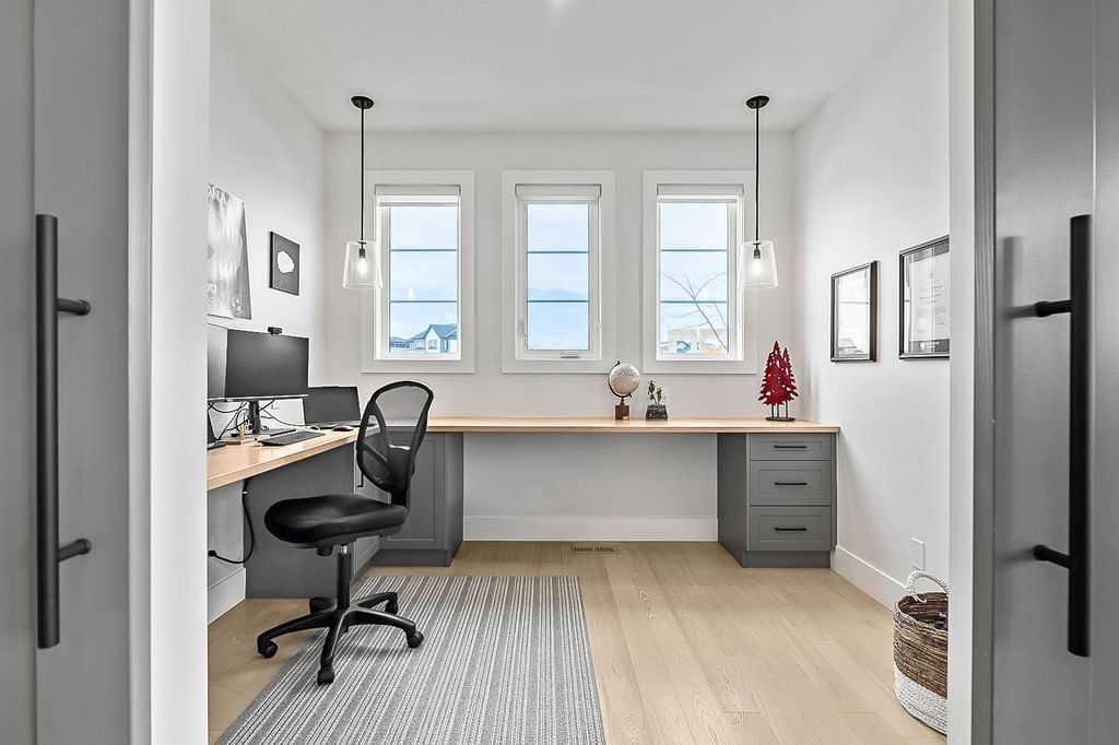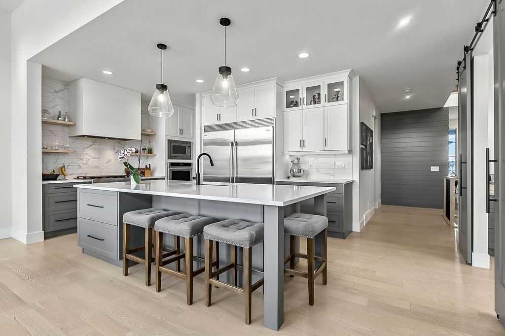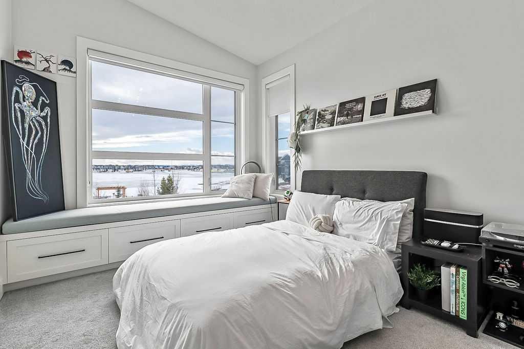 Exceptional residence on an OVERSIZED CORNER LOT WITH GORGEOUS LAKE VIEWS. Thoughtful professional design aspects and upgrades throughout the home result in 3,500 sq. ft. of beautiful developed space, including a fully finished basement. This is the ultimate family home designed for both everyday comfort and elevated entertaining. The open concept design seamlessly connects the living, dining and kitchen spaces and features walls of floor to ceiling windows that flood the home with natural light. The chef inspired kitchen is a true showpiece, featuring high end appliances including a double fridge/freezer, 6 burner gas cooktop, built-in oven, custom hood fan, walk-in pantry and an ultra convenient butler’s pantry. The spacious dining area opens through patio doors to a custom tiered stone patio, fully landscaped and fenced yard. The living room, complete with floor to ceiling 16’ stone fireplace, beamed ceiling, STUNNING WINDOWSCAPING and built-in window seating is sure to create memories with family and friends. A main floor office provides ample space for a work from home set up, while the front entrance features built-in hanging and storage compartments to keep busy family life organized. Upstairs, an open loft with a full wall of windows and patio doors leads to a private BALCONY OVERLOOKING THE LAKE - an ideal retreat for morning coffee or evening relaxation. The primary suite offers an elegant ensuite with dual vanities, a stand alone soaker tub and a generously sized walk in shower with dual shower heads, creating a serene, zen like escape. The secondary bedrooms are equally charming, each featuring cozy built-in window seats. The main bath has an extra long double vanity with abundant storage. The fully developed basement continues the home’s thoughtful design, featuring a spacious family room with a fireplace feature wall, built-in over sized wet bar with sink and beverage fridge, a fourth bedroom, full bathroom and a laundry room - perfect for guests, teens, or multi-generational living. This perfect family home also has a heated double garage as an added bonus. Harmony is an exceptional award winning community with two private lakes, a Phil Mickelson world class golf course, miles of biking and walking trails, greenspace, easy access to downtown Calgary and the Rocky Mountains.