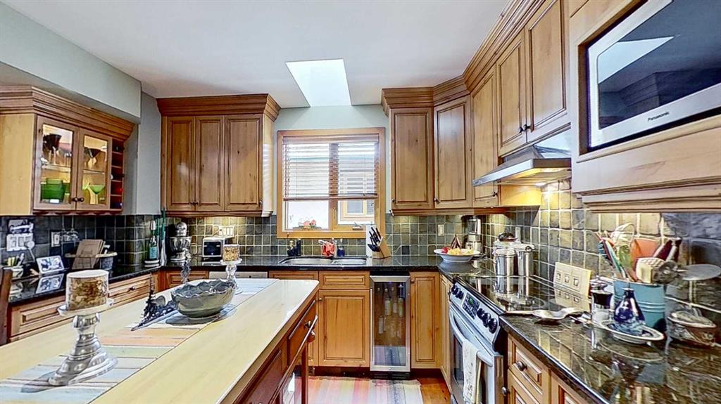 The thoughtfully designed kitchen is equipped with premium appliances including an Electrolux Pro-Series stove, Bosch dishwasher, newer LG refrigerator, Panasonic microwave, and built-in Cavavin beverage centre, making it ideal for both daily living and entertaining.