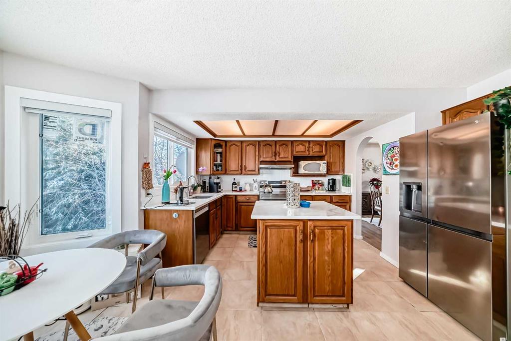 Located on a quiet, family-friendly street in the heart of Edgemont, this beautifully upgraded west-facing home offers exceptional interior space, abundant natural light, and a rare, highly functional layout. Within walking distance of Edgemont School and the community center, this property features six bedrooms, three and a half bathrooms, a legal walk-out basement suite, and a mature 6,803 sq ft lot that perfectly blends modern upgrades with classic comfort. The exterior includes a tile roof and stucco finish, complemented by a double garage and an extended driveway that provides ample parking—practical, attractive, and ideal for everyday living. Inside, the soaring ceilings and sun-filled southwest-facing living room create a bright, uplifting atmosphere. Large curved bay windows allow natural light to pour in throughout the day, giving the entire space a sense of openness. The main floor includes a spacious bedroom with a large window, and the kitchen features brand-new 2024 marble countertops, a new dishwasher, a new washer and dryer, and a fully upgraded range hood with direct outdoor venting. The elegant new navy-black front door, upgraded garage door, and new backyard patio door all contribute to a modern and cohesive exterior look. The newly completed 2024 vinyl deck offers an ideal outdoor gathering space, complete with a natural gas hook-up for effortless summer BBQs. The second-floor bathroom was upgraded in 2025 with a new tub, tile, and shower fixtures. Both the main and second floors are equipped with Google Nest smart thermostats, and the basement has its own independent temperature control for year-round comfort and efficiency. Extensive upgrades completed in 2024 and 2025 ensure long-term comfort and peace of mind. These include over 30 brand-new windows with a manufacturer warranty of 25 years and a labor warranty of 3 years, custom zebra blinds, new flooring, a fully upgraded second-floor bathroom, replacement of key plumbing components, two new boilers, central air conditioning, a newly built deck with gas hookup, new marble countertops, a new dishwasher and laundry set, and two new outdoor-vented range hoods. Every detail reflects thoughtful improvements combining efficiency, durability, and modern aesthetics. The home is conveniently located near top-ranked schools, Nose Hill Park, and scenic pathways, with quick access to Superstore, Costco, and major routes including Stoney, Shaganappi, and Crowchild Trail. This is a truly rare offering in Edgemont—exceptional in space, upgrades, and location. High-quality homes like this are hard to find; book your showing quickly before it’s gone.