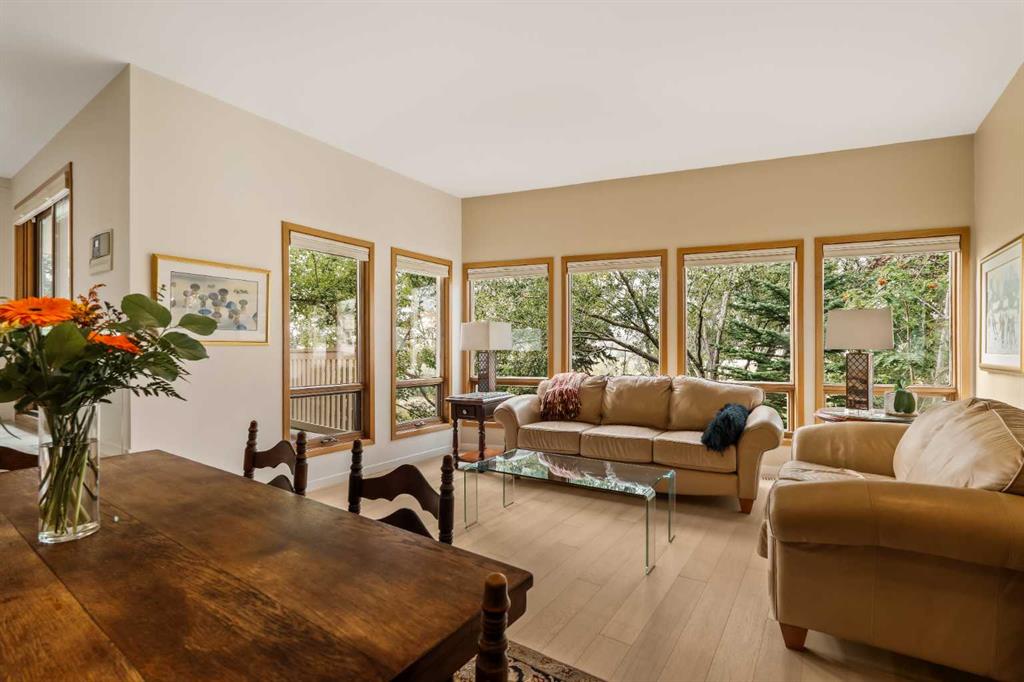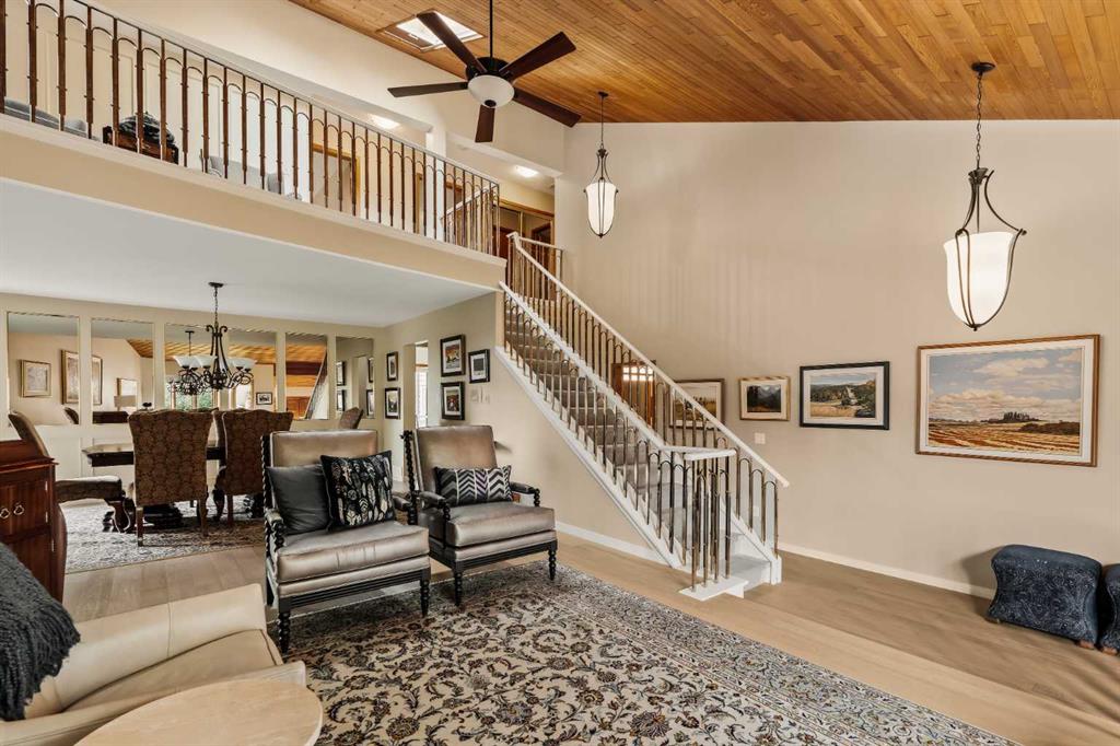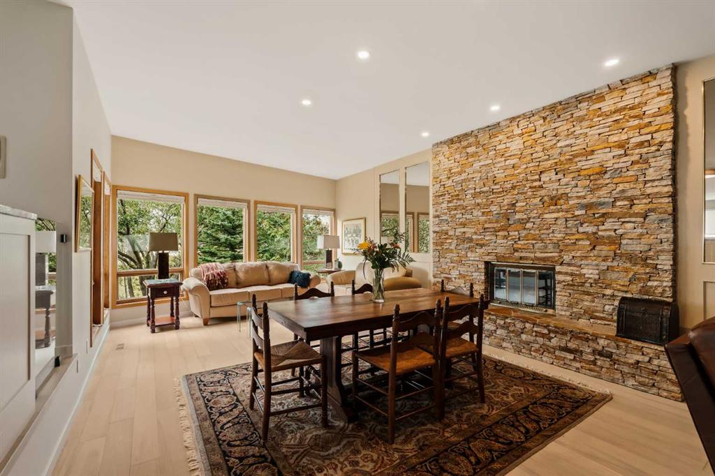 Tucked away on a quiet crescent, surrounded by mature trees and lush landscaping, this distinguished brick-facade residence offers a rare opportunity to own in one of Edgemont’s most desirable enclaves. Pride of ownership shines throughout this private property, set on a 0.20-acre lot with over 5,000 sq. ft. of total living space. Inside, hardwood floors carry through the main level, where a soaring lofted wood-plank ceiling and striking stone-surround fireplace create a warm and inviting focal point. Skylights and expansive windows flood the home with natural light, while the updated kitchen features custom cabinetry, premium finishes, and seamless flow to the dining and living areas. Upstairs, you’ll find three spacious bedrooms, including a serene primary suite with a spa-like ensuite and generous closet space. The fully finished lower level adds two more bedrooms, a full bath, and versatile living areas ideal for a recreation room, home office, or gym. An attached double garage, multiple gathering spaces, and an expansive landscaped yard complete the offering—perfect for quiet enjoyment or entertaining. Beyond the home, Edgemont offers unmatched convenience and lifestyle. Families will appreciate access to top-rated schools, numerous parks, and scenic walking and biking pathways. Daily errands are effortless with nearby shopping at Edgemont Village, Market Mall, and Crowfoot Centre. Quick access to major routes makes commuting downtown or escaping to the mountains a breeze, while the community’s reputation for safety, strong schools, and natural beauty makes it one of Calgary’s most sought-after neighbourhoods. Rarely do homes come to market in this pocket of Edgemont. This is your opportunity to enjoy timeless character, modern updates, and an unbeatable location.
