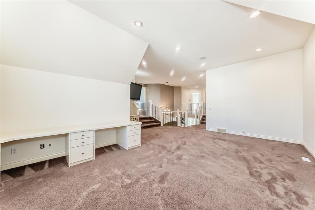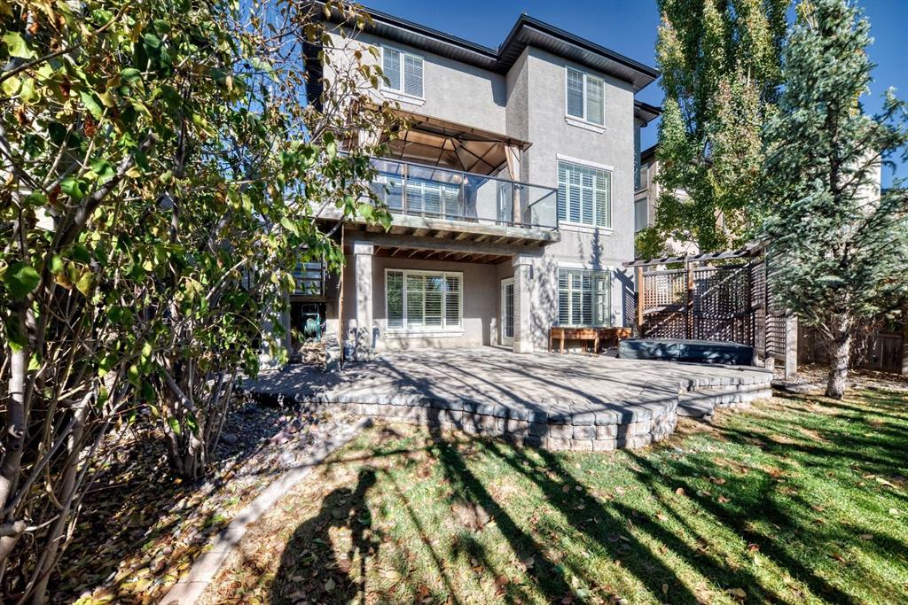 Elegance! This Evergreen Estates home features numerous upgrades and backing onto green space, pathway, mature trees and privacy. Stately curb appeal welcomes you inside. Executive air conditioned 2 storey, bonus room and a functionally developed walkout on a quiet cul-de-sac. Extensive upgrades, many built-ins, speakers and plantation shutters throughout. MAIN FLOOR: Hardwood and tile with 9' ceilings. Office or den. Large dining room. Fully renovated gourmet kitchen with cherry wood cabinets, breakfast bar, granite countertops, stainless steel appliances, sink in large island with eating area open to an inviting family room, fireplace and custom built in shelving on the feature wall. French door leading out to deck with metal railings & glass panels in south facing back. The deck has stairs leading to the backyard. Laundry and mudroom with custom closet lockers and a two piece powder room. UPSTAIRS: The staircase with painted railings and iron rod spindles lead up to a very large bonus room with some built ins and charming window seat. Enjoy the large primary bedroom with a five piece ensuite bath, and a spacious walk-in closet. There are also two generous sized bedrooms and a 4pc main bath. Another den or office with a cozy balcony overlooking the front of the home. Den could easily be used as a guest bedroom. DEVELOPED DOWN: Walk out with bright large windows leading to a covered patio and a professionally landscaped, private yard. In-floor heating. Large recreation room, bedroom, 3 piece bathroom and very large storage room. Excellent space for a mature child or mother-in-law. Underground sprinklers, mature trees, gazebo and privacy hot tub. Oversized double garage with good storage space and raised ceiling. From the back gate walk or bike to our amazing Fish Creek Provincial Park (approximately 500 steps away)! This is one of the most coveted areas in the city, with local amenities and excellent schools nearby. Transit accessible and a short drive to the Shawnessy shopping area. Great proximity to Macleod Trail and Stoney Trail put the rest of the city in easy driving distance, and the location provides easy access to the Rocky Mountains! All major amenities are only minutes away.
