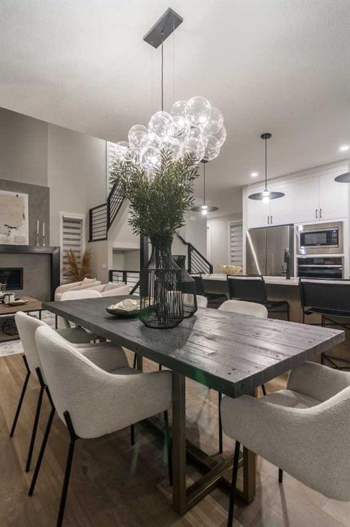 An incredible opportunity to own a brand-new estate home in the sought-after community of Cimarron Estates! Perfectly nestled in the heart of the neighbourhood, this home sits on an expansive 1/3 acre lot within walking distance to nearby amenities. Thoughtfully designed and extensively upgraded, it offers over 3,200 sq. ft. of developed living space across 3 levels, featuring 4 bedrooms, 3.5 bathrooms, 3 versatile living areas, a dedicated home office, a triple attached garage, and generous outdoor living space. The main level showcases a gourmet kitchen that overlooks the dining area and great room, highlighted by a dramatic open-to-below ceiling and a gas fireplace with a tile surround. The kitchen is equipped with an impressive appliance package, including a gas cooktop, chimney hood fan, built-in wall oven and microwave, pot filler, Silgranit apron-front sink, quartz countertops, and a full butler’s pantry/mudroom. This functional space is complete with a second fridge, sink, full upper-and-lower cabinetry, and a built-in bench with lockers—providing both style and everyday convenience. A front den (perfect for a home office) and a 2-piece powder room complete this level. Upstairs, you’ll find a spacious bonus room and a luxurious primary suite overlooking the backyard. The ensuite offers dual sinks, a freestanding soaker tub, and a walk-in shower, along with a generous walk-in closet. Two additional bedrooms, a full bathroom, and a convenient laundry room complete the upper floor. The fully developed walk-out basement is designed for entertaining, with a wet bar, two living/rec areas, a fourth bedroom, full bathroom, and a large mechanical room with additional storage. The exterior of the home is just as impressive, with Hardie board siding and an expansive main-level deck overlooking the greenspace behind the property. Designed with both elegance and functionality in mind, this home provides a true estate lifestyle inside and out. Currently under construction, this stunning estate home will be move-in ready in winter 2025/2026. Please note: photos are from a past project and may not be an exact representation of the home for sale.