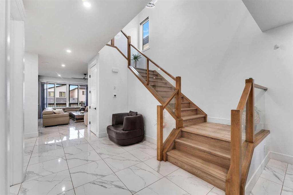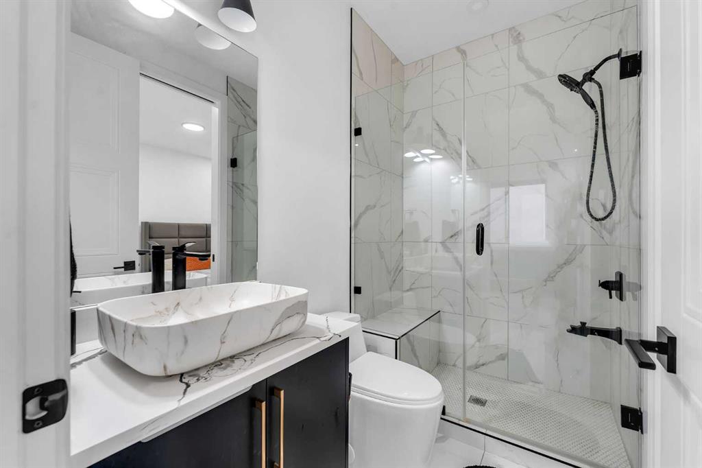Luxury Living with Income Potential | 8 Bedrooms + Den, 6 Full Bathroom | 2 Basement Suites | Saddleridge (Saddlepeace). Welcome to this exceptional, nearly new luxury home located in the highly sought-after community of Saddlepeace in Saddleridge. Thoughtfully designed with impeccable craftsmanship and loaded with premium upgrades, this residence offers a perfect blend of elegance, functionality, and investment opportunity. As you approach the home, the grand double-door entrance sets the tone for the upscale experience that awaits inside. Step into a bright, open-concept main floor featuring soaring ceilings, a spacious living room, a formal dining area, and a cozy family room—all seamlessly connected to create an inviting atmosphere ideal for entertaining and everyday living. Kitchen is a chef’s dream, showcasing top-of-the-line stainless steel appliances, a massive island, and a 48-inch-wide refrigerator. A separate spice kitchen with a sink and window keeps the main area pristine while enhancing functionality. The main level also features a bedroom with a walk-in closet, a full 3-piece bath, and a custom-built mudroom connecting to the double attached garage, which also includes a convenient side man door. A rear deck provides the perfect spot for outdoor gatherings. Upstairs, elegant glass railings lead to four generously sized bedrooms, including a luxurious primary suite with a double-door entrance, private balcony, custom walk-in closet, and a spa-like 5-piece ensuite complete with a 10-mm glass steam shower and soaker tub. Two additional bedrooms feature their own walk-in closets and private 3-piece ensuites. A second master bedroom offers even more space with a walk-in closet, 3-piece bath, and custom-built cabinetry. The upper-level laundry room includes a built-in sink for added convenience. On the third level, you’ll find a spacious den or man cave complete with wall-mounted speakers and a private balcony, ideal for relaxing or entertaining. This home is equipped for comfort year-round with dual furnaces and a soft water system. The fully developed basement includes two separate suites: a legal 2-bedroom suite and an illegal 1-bedroom suite, each with 9-foot ceilings, full-sized appliances (glass-top stoves, hood fans, refrigerators), and separate laundry areas—ideal for multi-generational living or generating rental income. The property offers ample parking with a wide driveway, perfect for multiple vehicles. The location is unbeatable—just steps from bus stops, Gurughar, and Gobind Sarvar School (K-12). Only 5 minutes to Saddletown LRT and 2 minutes to the upcoming Costco, with quick access to major routes, shopping centers, and essential amenities. Whether you're looking for a luxurious forever home or a smart income-generating investment, this property delivers on all fronts. Don’t miss this rare opportunity to own a truly one-of-a-kind home in one of Calgary’s most vibrant and grow