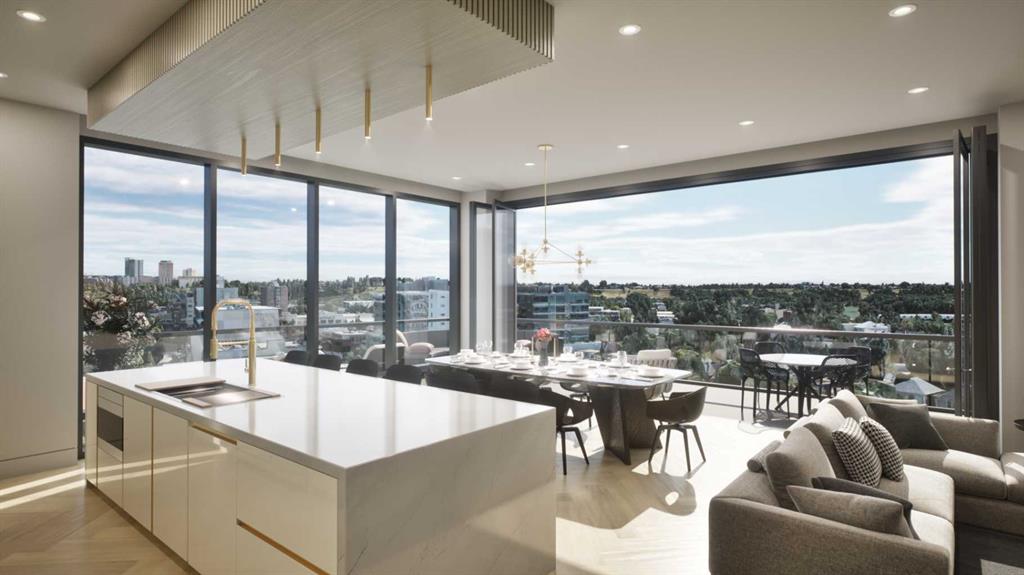 Welcome to your dream single-level Penthouse with your own private riverfront rooftop patio at The Kenten. Masterfully designed by architects Davignon and Martin, The Sable spans 96 feet of glass with 11 foot ceilings and both sunrise and sunset elevations. As you step in, you are greeted by a large living space with triple pane windows overlooking the river; featuring an beautiful kitchen, living, dining, and 450 square foot wrap around balcony, all designed to entertain your family and friends. Enjoy a gourmet kitchen with Sub-Zero & Wolf appliances, gas range, custom millwork, walk-in pantry, and fireplace that all flow towards your opening wall system. The large primary bedroom has an office/den, a large walk-in closet, and a 6-piece ensuite bathroom with a floating tub and heated floors., and a steam shower. The second bedroom come has it's own ensuite bathroom, and a 3rd bedroom and bathroom complete the residence. The penthouse is accompanied by 2 bike racks, 2 titled storage lockers, and 3 titled parking stalls or garage conversion. There are 3 modern palettes to choose from that can be further customized to your liking. The Kenten features over 8,000 square feet of amenities including a sky lounge, gym overlooking Kensington, golf simulator, sauna, hot tub, concierge, guest suites, car wash, and more. Explore a simplified lock and leave lifestyle you didn't know was possible, with 250+ shops and restaurants in Kensington and river pathways stemming from one end of the city to the other. Now in construction, our sales center is open for viewings by private appointment. With only 44 residences, don't miss this once in a lifetime opportunity to live at the most interesting corner in Calgary.