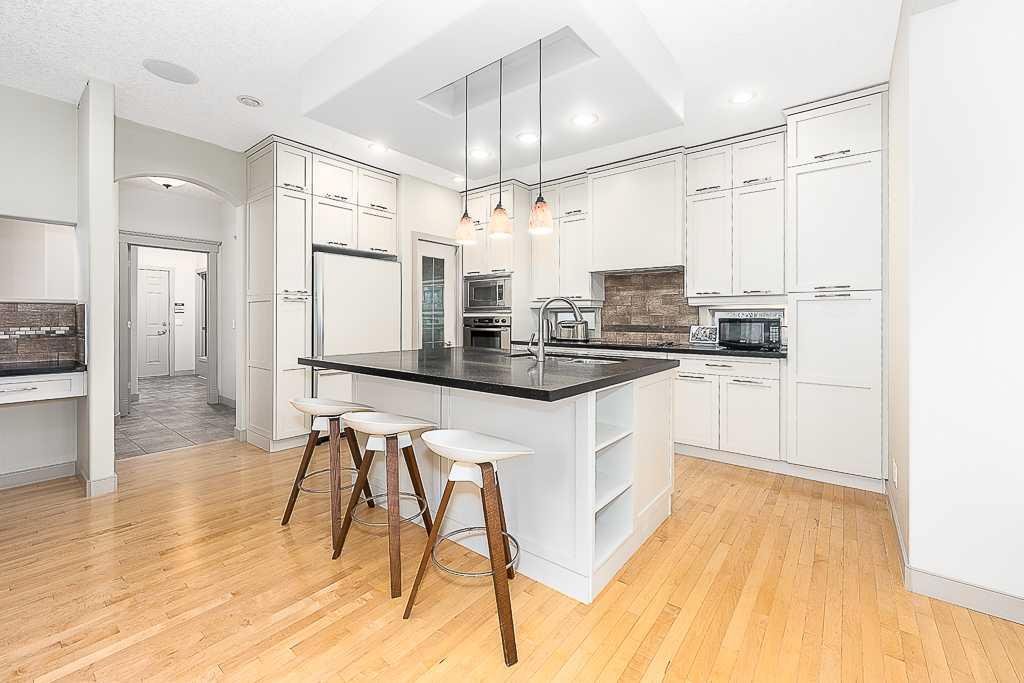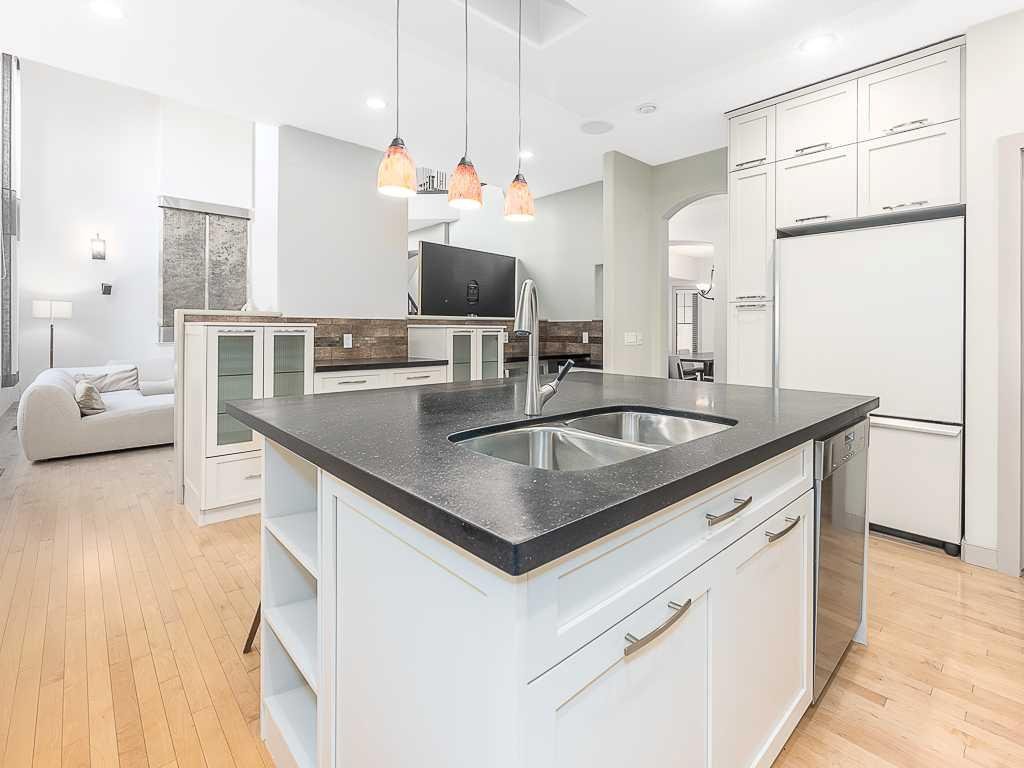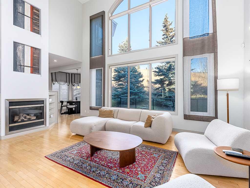 Discover an exquisite 5 bedroom family residence in the heart of Discovery Ridge, perfectly positioned with direct, gated access to a serene park / green space and just moments from the natural beauty of Griffith Woods park. This distinguished former show home, spanning over 4,200 square feet of meticulously crafted living space, is brimming with luxurious upgrades and thoughtful details, ideal for those seeking elegance and functionality. Step inside to a breathtaking open-concept main floor, where a soaring 20-foot ceiling in the central living area creates a grand ambiance. A striking two-story fireplace, flanked by custom built-in cabinetry and a stone waterfall feature, serves as the heart of the home. The gourmet kitchen is a chef’s dream, boasting a large central island with a breakfast bar, sleek granite countertops, premium stainless steel appliances, a spacious walk-in pantry, a dedicated coffee station, and stylish glass-accented cabinetry. Adjacent, a formal dining room accommodates gatherings of any size, while a versatile den near the front entrance offers a quiet workspace. The expansive, fully finished double attached garage connects to a generous laundry room with a sink and upper cabinetry for added convenience. Ascend the elegant staircase to the upper level, where a bright, open loft with built-in cabinetry overlooks the park and main living area. The luxurious primary bedroom is a true retreat, featuring a cozy sitting area, a second fireplace with sophisticated built-ins, and a spa-inspired 5-piece ensuite with dual sinks, a jetted tub, an oversized steam-ready shower, and a large walk-in closet. Two additional well-appointed bedrooms and a full bathroom complete this level. The fully finished lower level is designed for entertainment and relaxation, offering a spacious recreation room with ample space for a home theatre or billiards area, two large bedrooms, a full bathroom, and a versatile flex room with abundant storage. This home is adorned with premium upgrades, including air conditioning (Upper and lower separately controlled), 2 brand new furnaces, gleaming hardwood floors, 9-foot ceilings with knock-down stipple, integrated sound system with individual room controls, iron railings, bull-nosed stairs, and designer lighting. Additional highlights include a fiber-optic upgrade, central air conditioning, a barrelled ceiling design, custom window treatments, and a striking stone and stucco exterior. Outside, an exposed aggregate driveway and walkway lead to a private rear deck with sleek glass and aluminum railings, perfect for enjoying the peaceful surroundings. Impeccably maintained and ideally located near parks, pathways, and Discovery Ridge amenities, this exceptional residence offers unmatched quality and value. A rare opportunity, schedule your private tour today!
